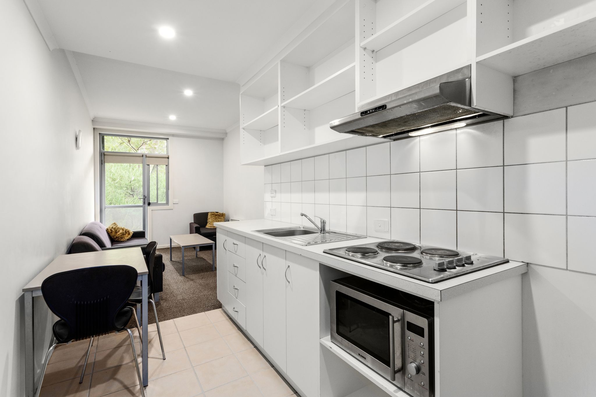 The apartment contains a spacious living area, well equipped kitchen with stainless steel appliances. Building amenities include security entrances, lift access, visitors lounge, coin-operated communal laundry, study areas and courtyard gardens.