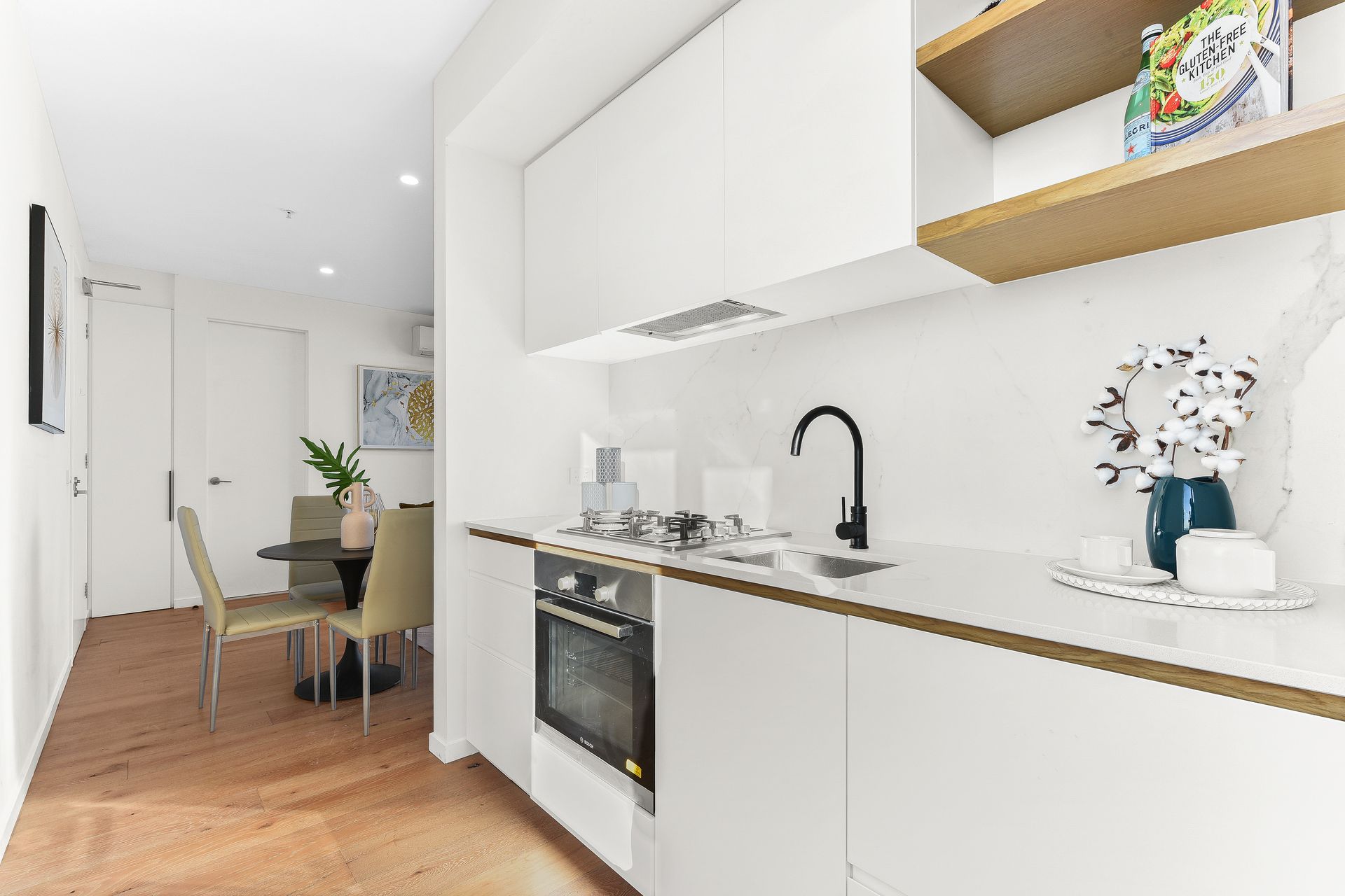Offering a convenient and fuss-free lifestyle, enter via a secure underground car park with your own allocated parking spot and a video com entry. Step inside to discover an open floor plan, high ceilings, and an air-conditioned living space that flows into a modern kitchen.