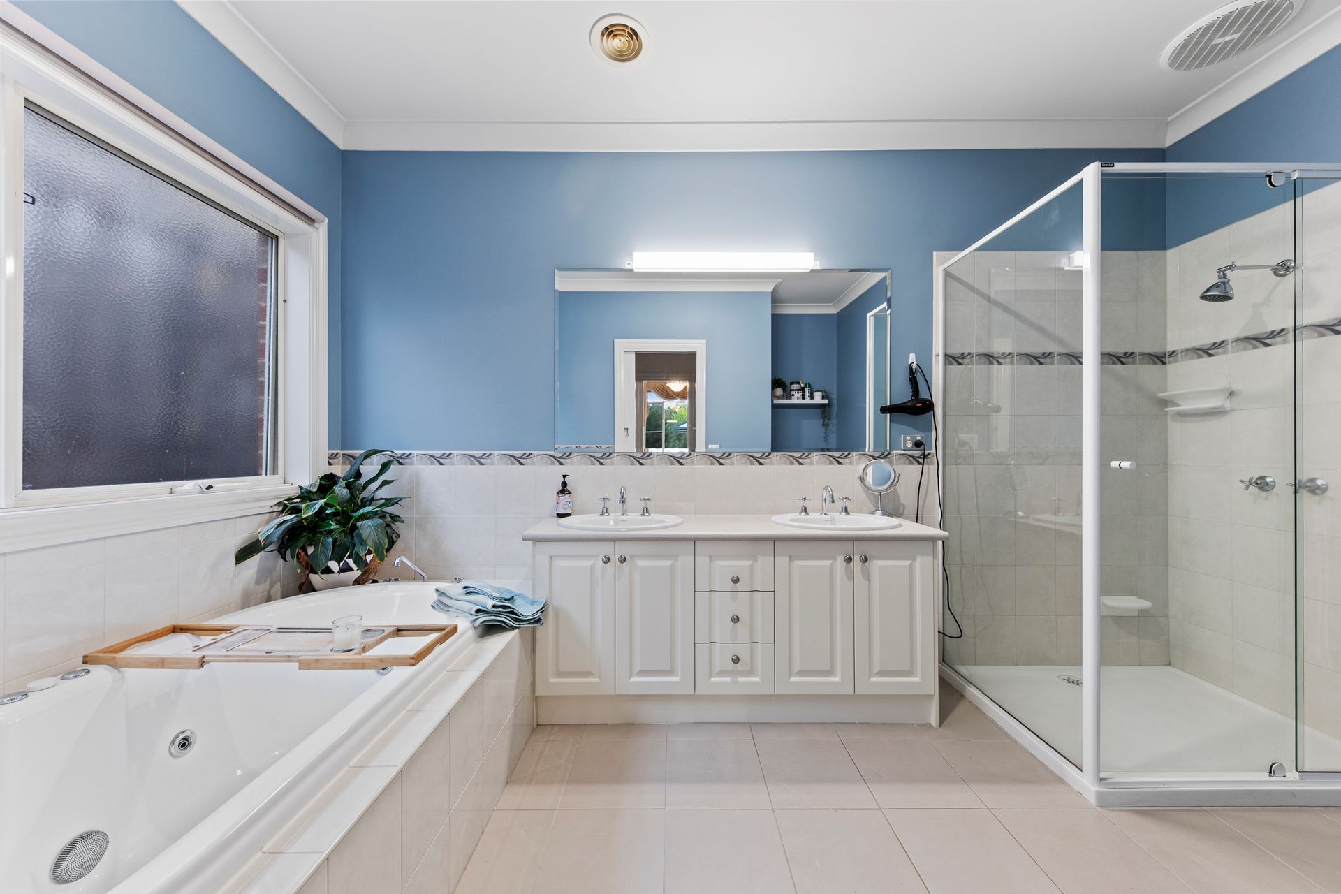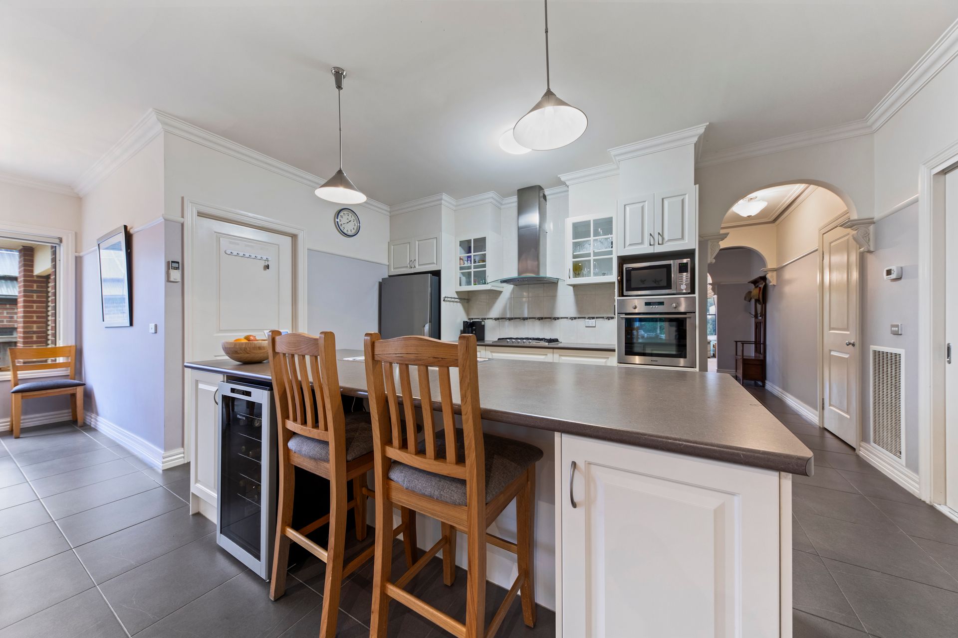 Outdoors, the undercover alfresco area invites year-round entertaining, overlooking beautifully landscaped gardens that offer privacy and a picture-perfect setting. The wide