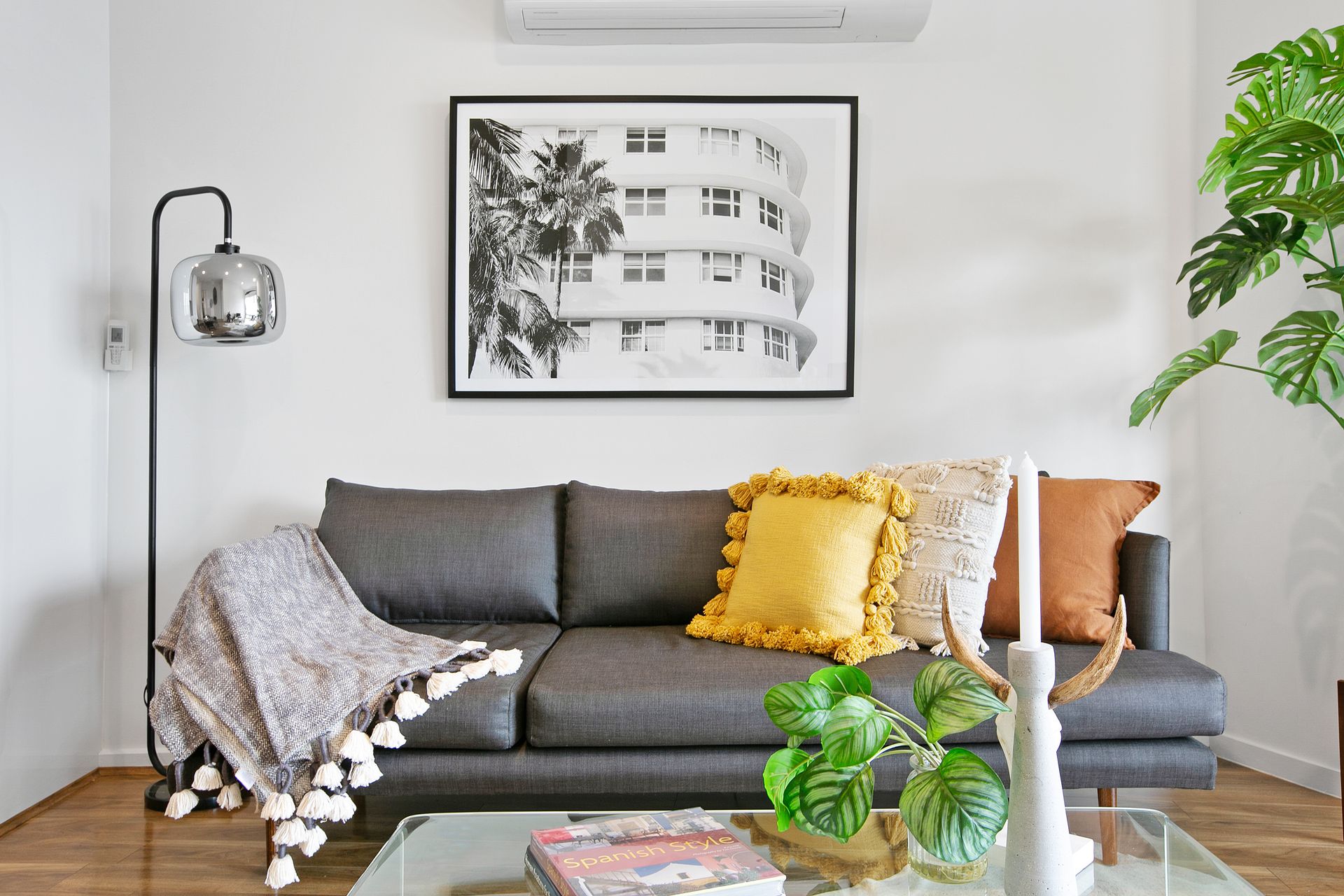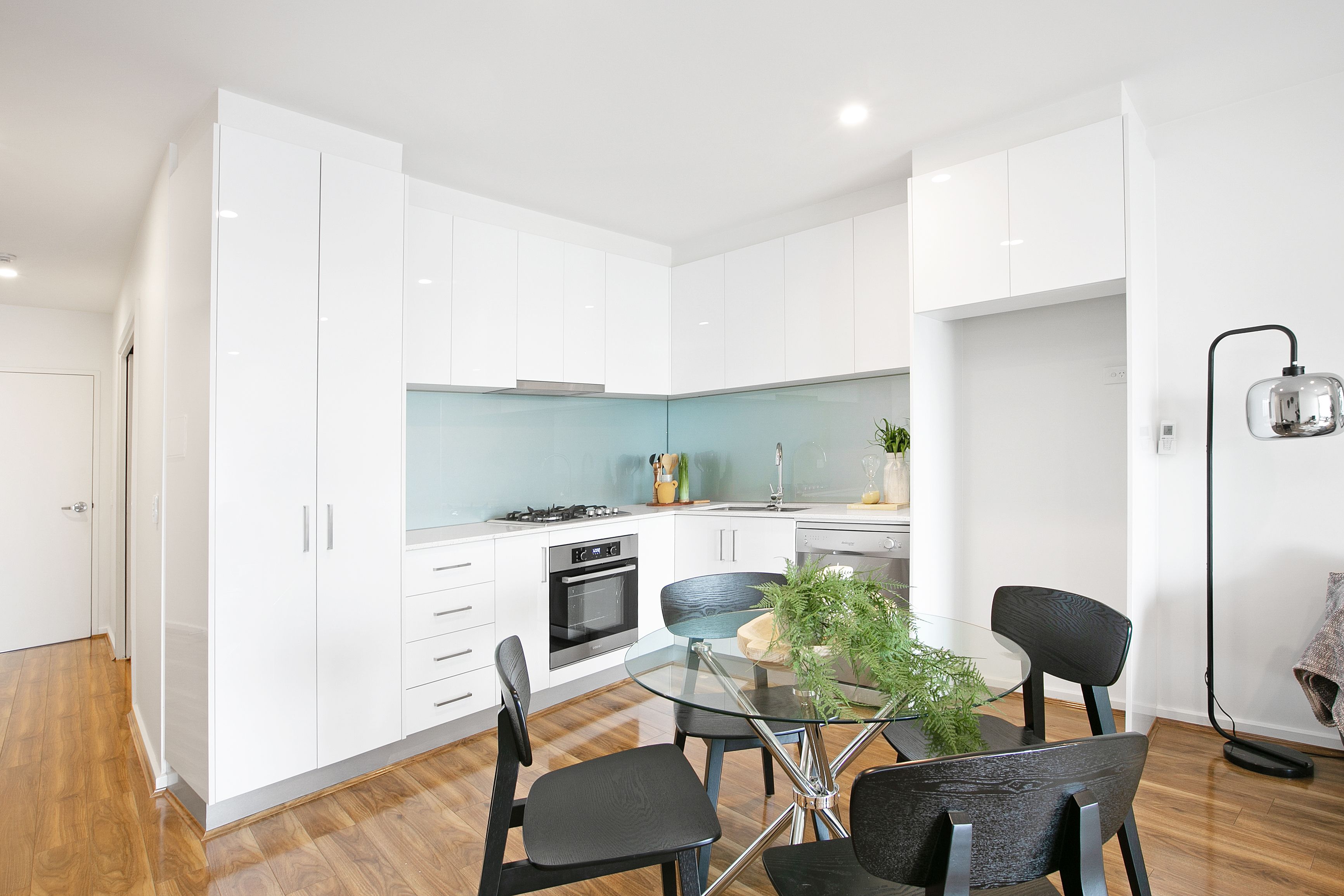 The generous proportions and sleek style of the radiant open-plan living is sure to satisfy the fussiest of buyers, while the stone benchtops, glass splashback and stainless steel appliances of the modern kitchen is an extension of the apartment's commitment to style and quality.