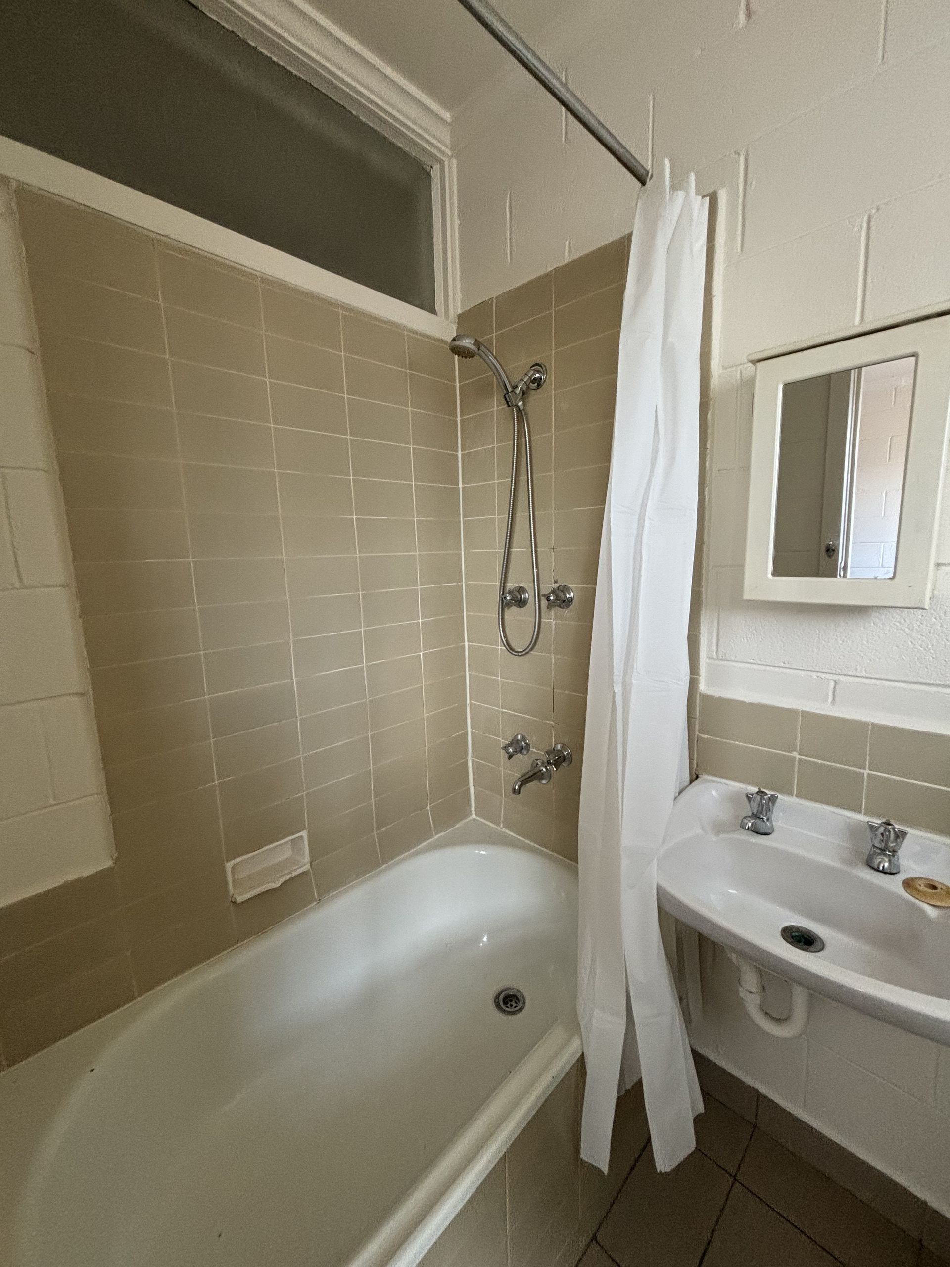 Residents have access to a ground-floor communal laundry with coin-operated washing machines, a dryer, shared external washing lines, and off-street parking available on a first-come, first-served basis.