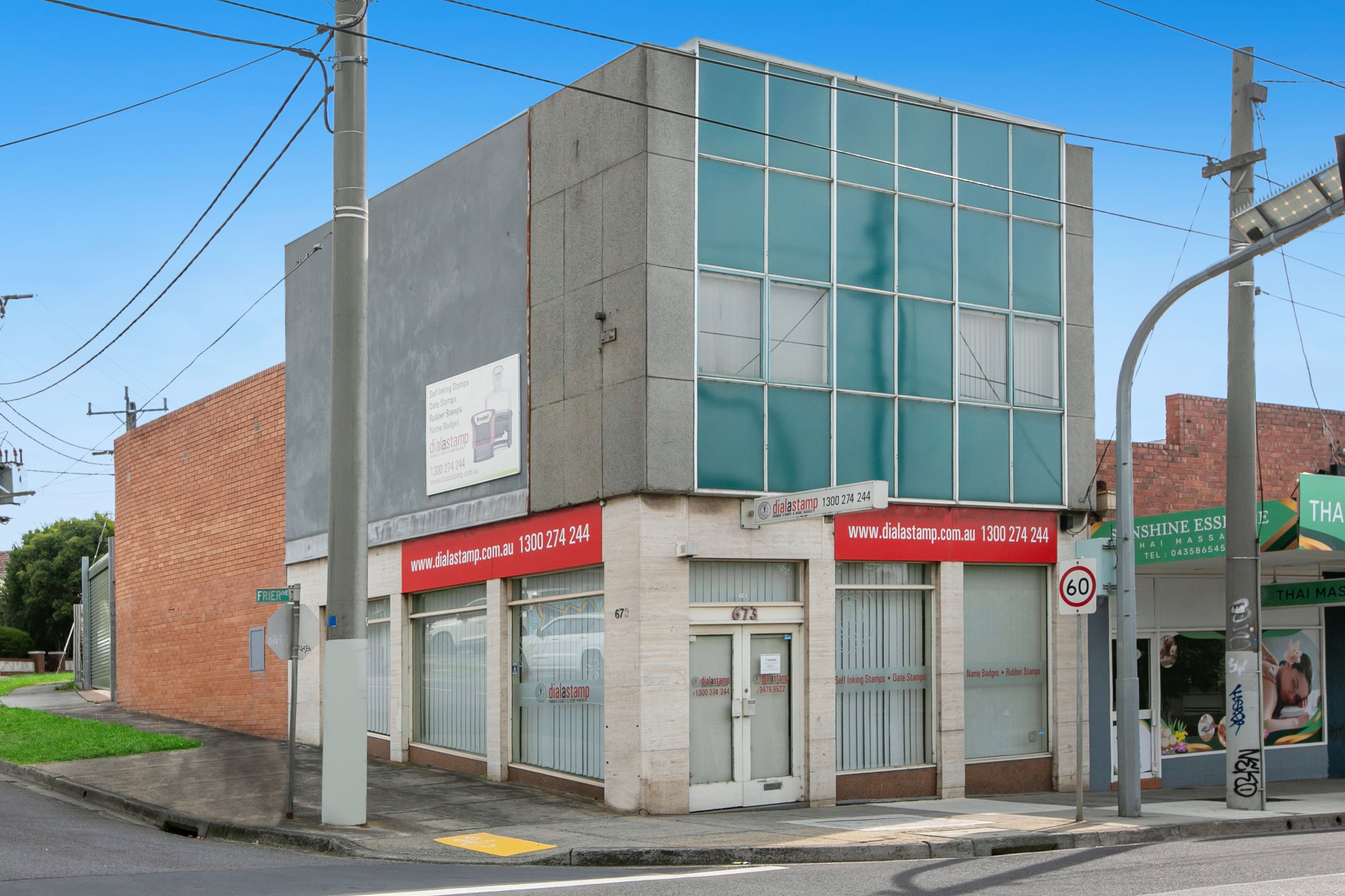 - Prominent two-story corner of Frier Avenue positioned building with plenty of exposure