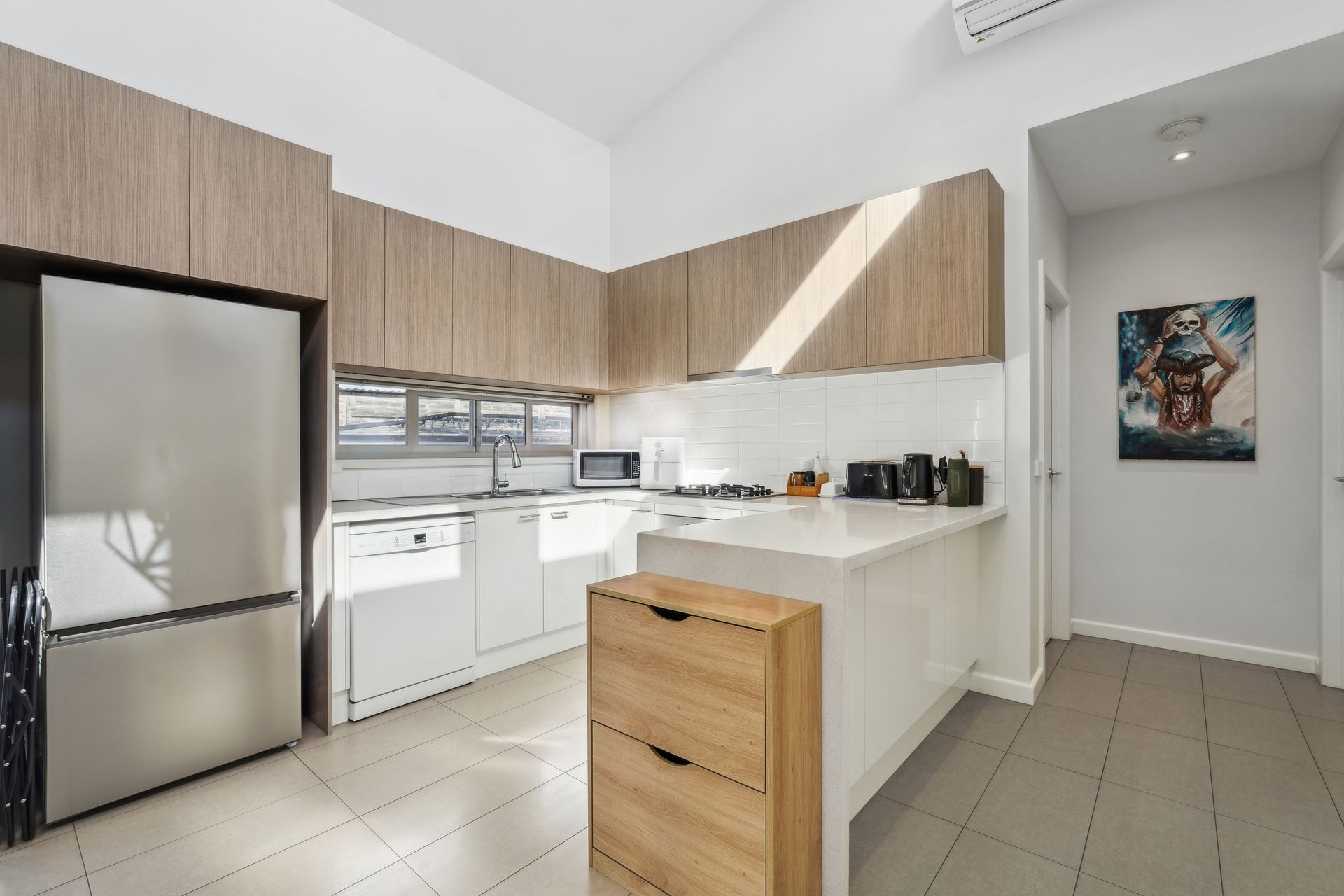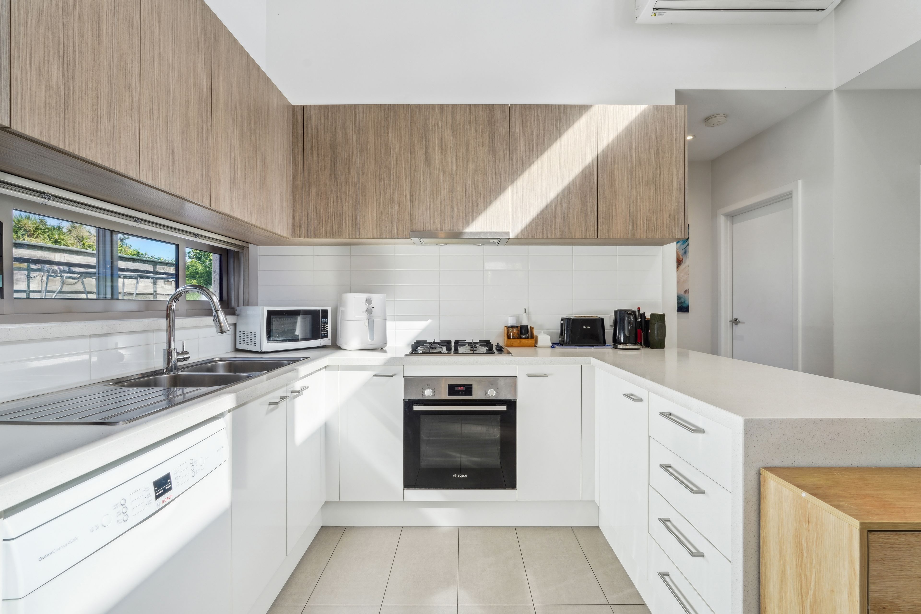 The well-appointed kitchen is a true highlight, thoughtfully designed for those who love to cook. With plenty of storage space and modern finishes, it's as functional as it is stylish, making meal prep a breeze.