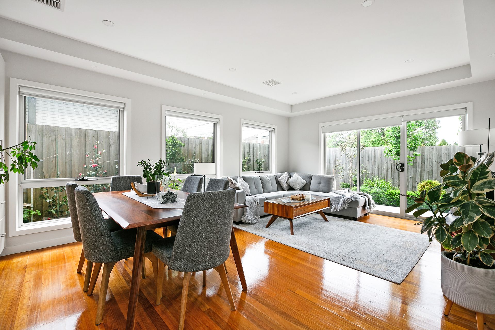 Filled with abundant natural light, the north-facing kitchen and living areas are beautifully illuminated throughout the day. The elegant kitchen features modern European stainless-steel appliances - perfect for passionate home chefs - while the open-plan living area provides ample space for both relaxation and entertaining. Enjoy year-round comfort with refrigerated cooling and heating, and step outside to the beautifully maintained sunny north- and east-facing garden, designed for effortless outdoor living.