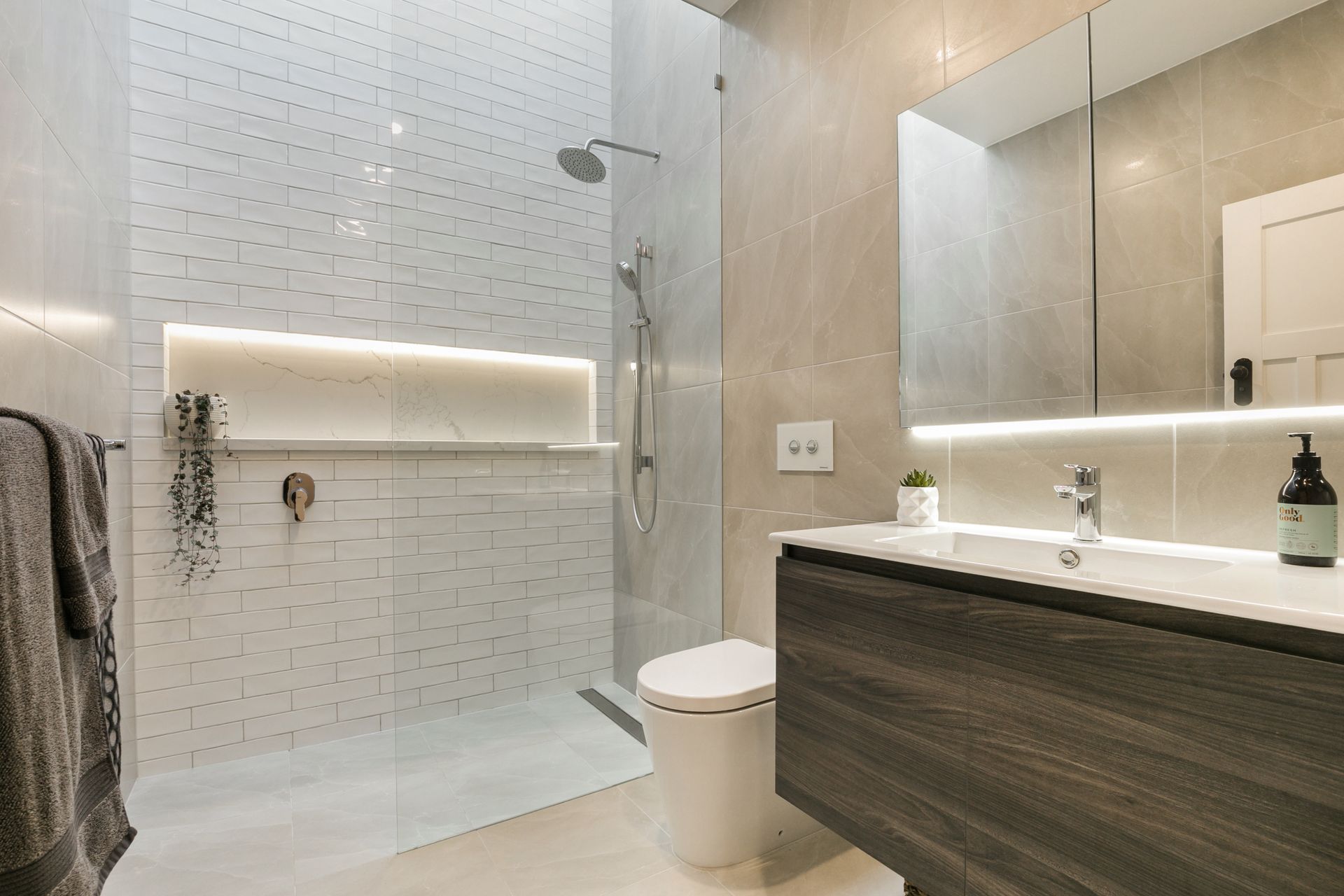 A generously proportioned Master bedroom forward of the plan features BIR's as does Bedroom 2. This home's designer bathroom is an absolute statement in style where an over-size walk in shower with LED backlit recess is illuminated from above by a full-length skylight to deliver a wow' feature within this well-balanced room.