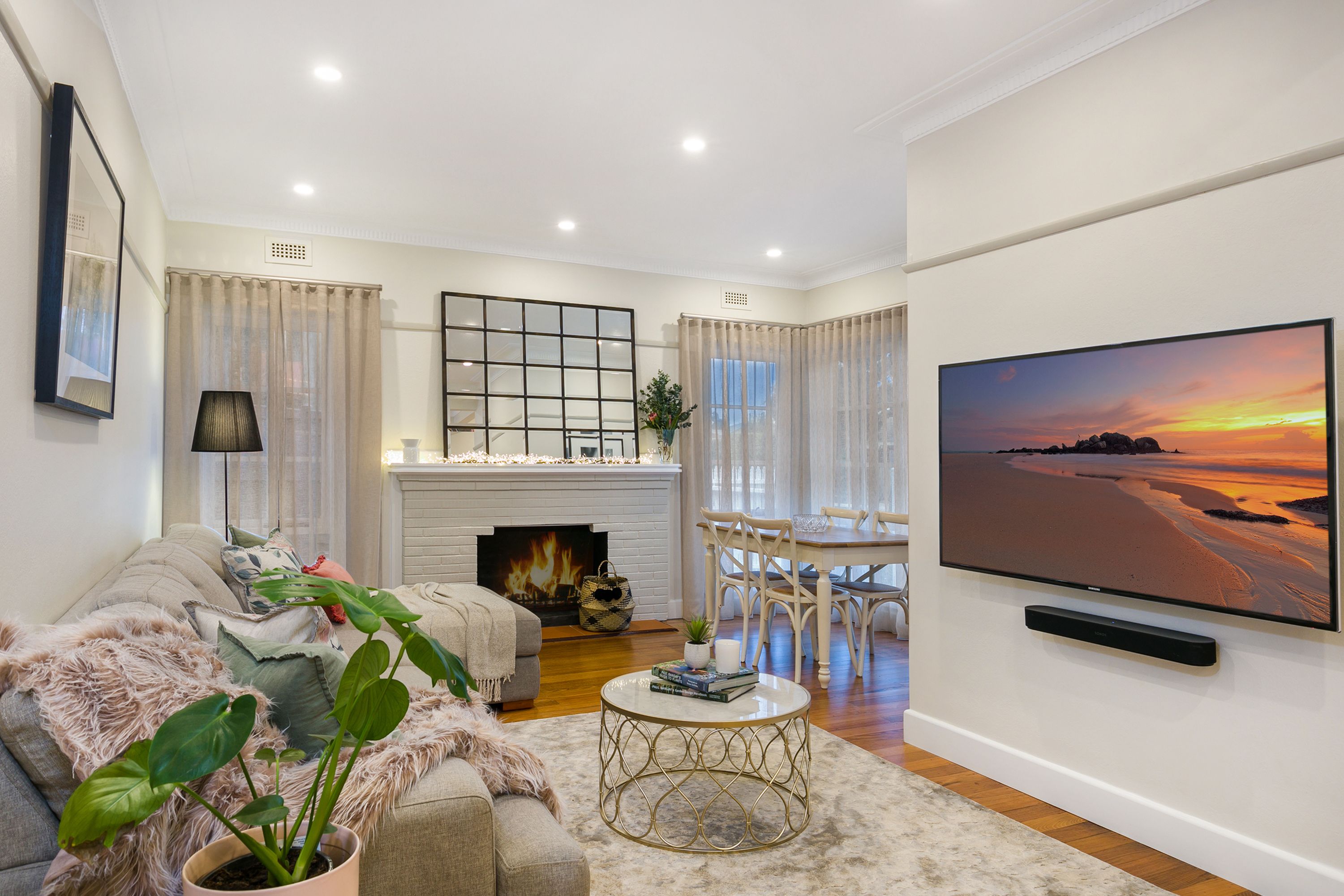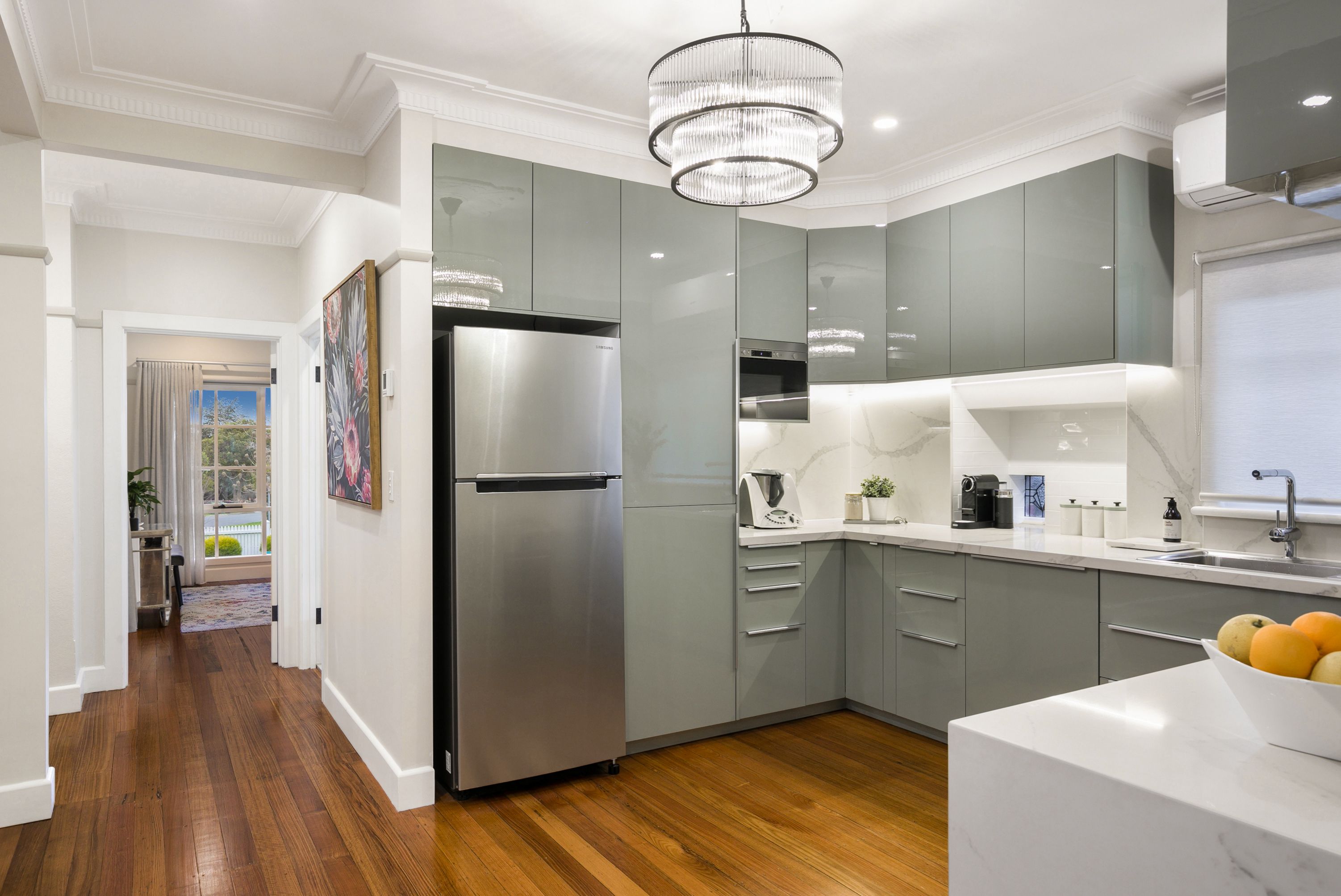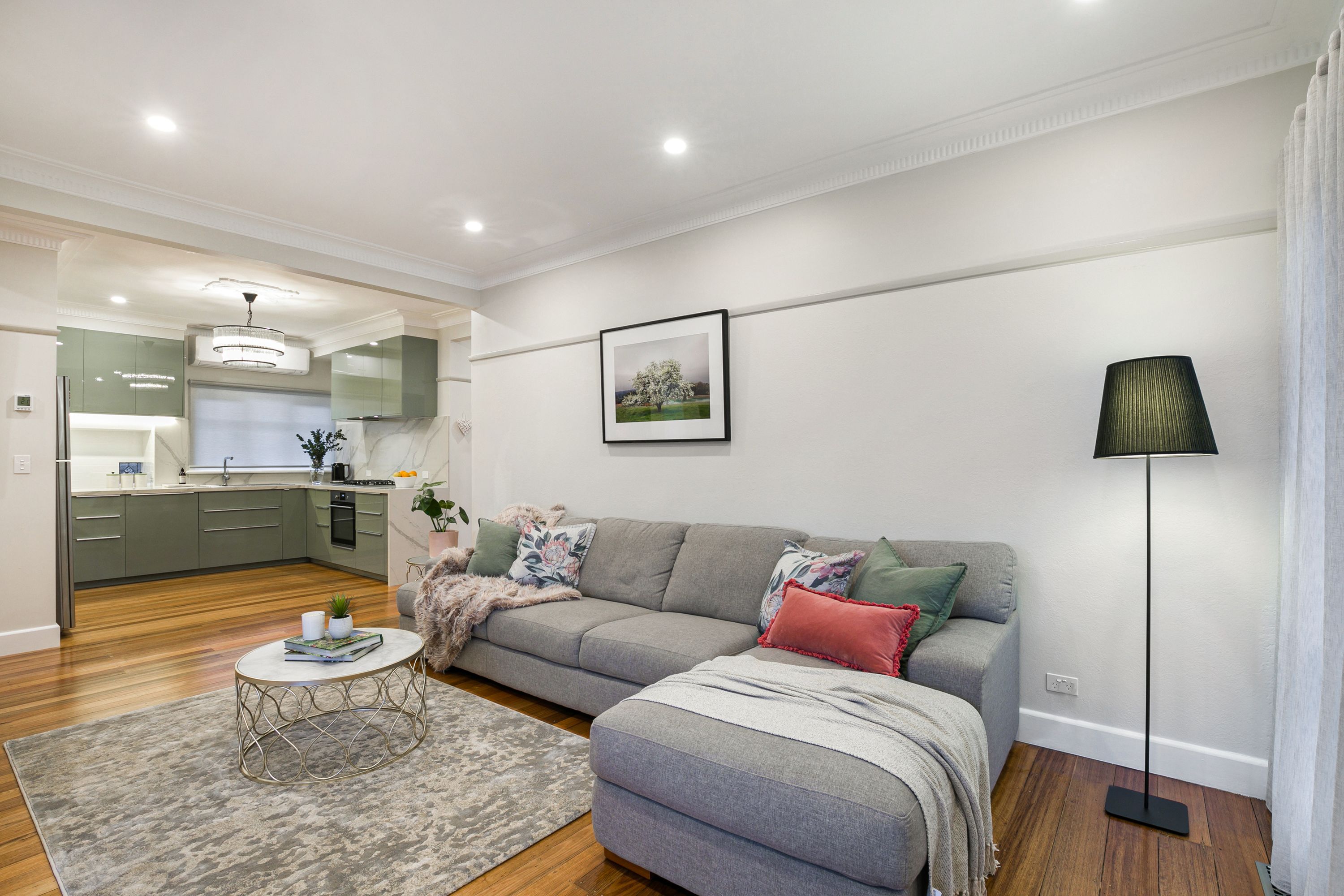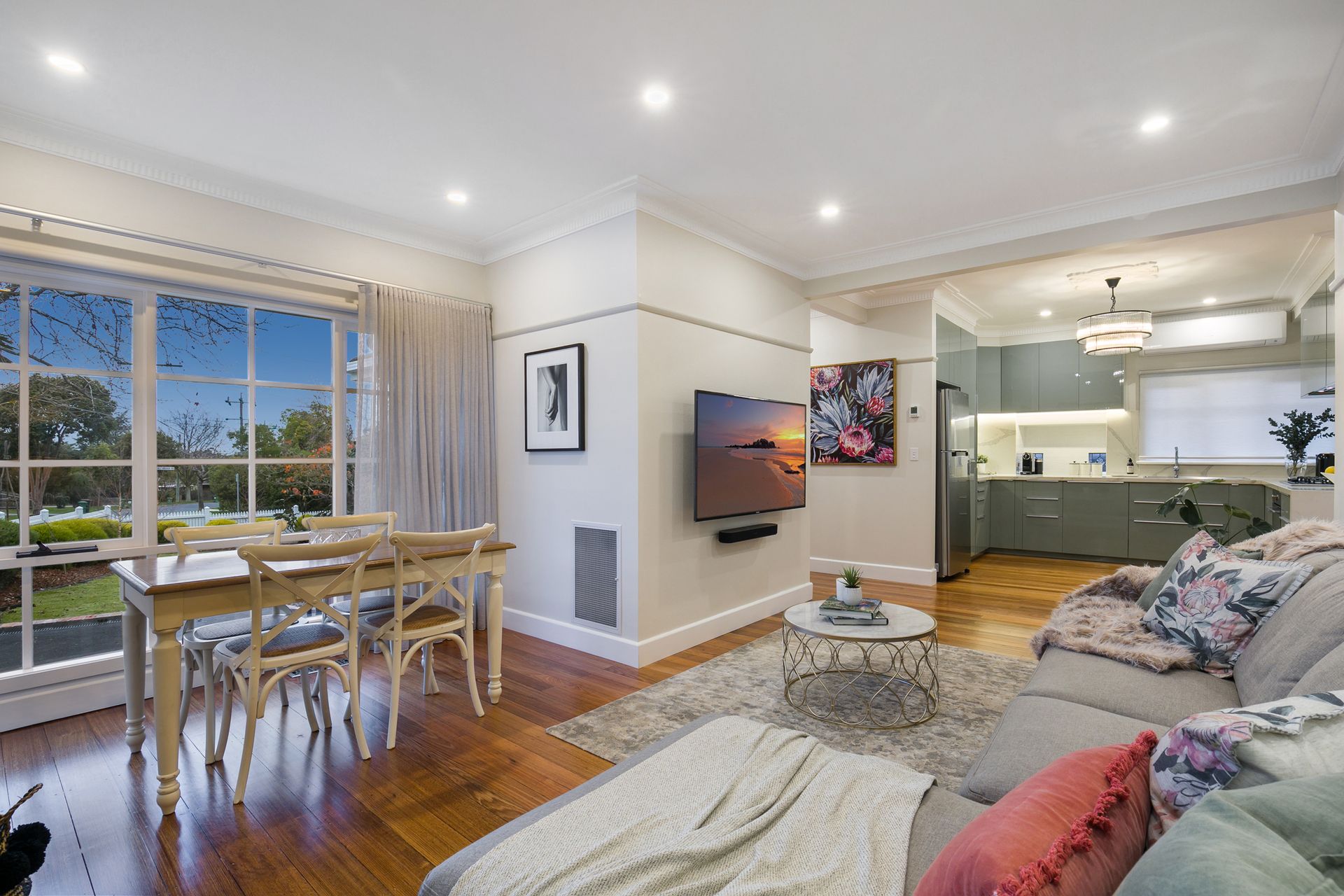 Along with other tastefully retained period elements including feature cornice; glowing hardwood floors extend throughout an easy-to-live-in floorplan that is winter-warmed with central heating complemented by two split systems for zoned convenience and summer comfort.
