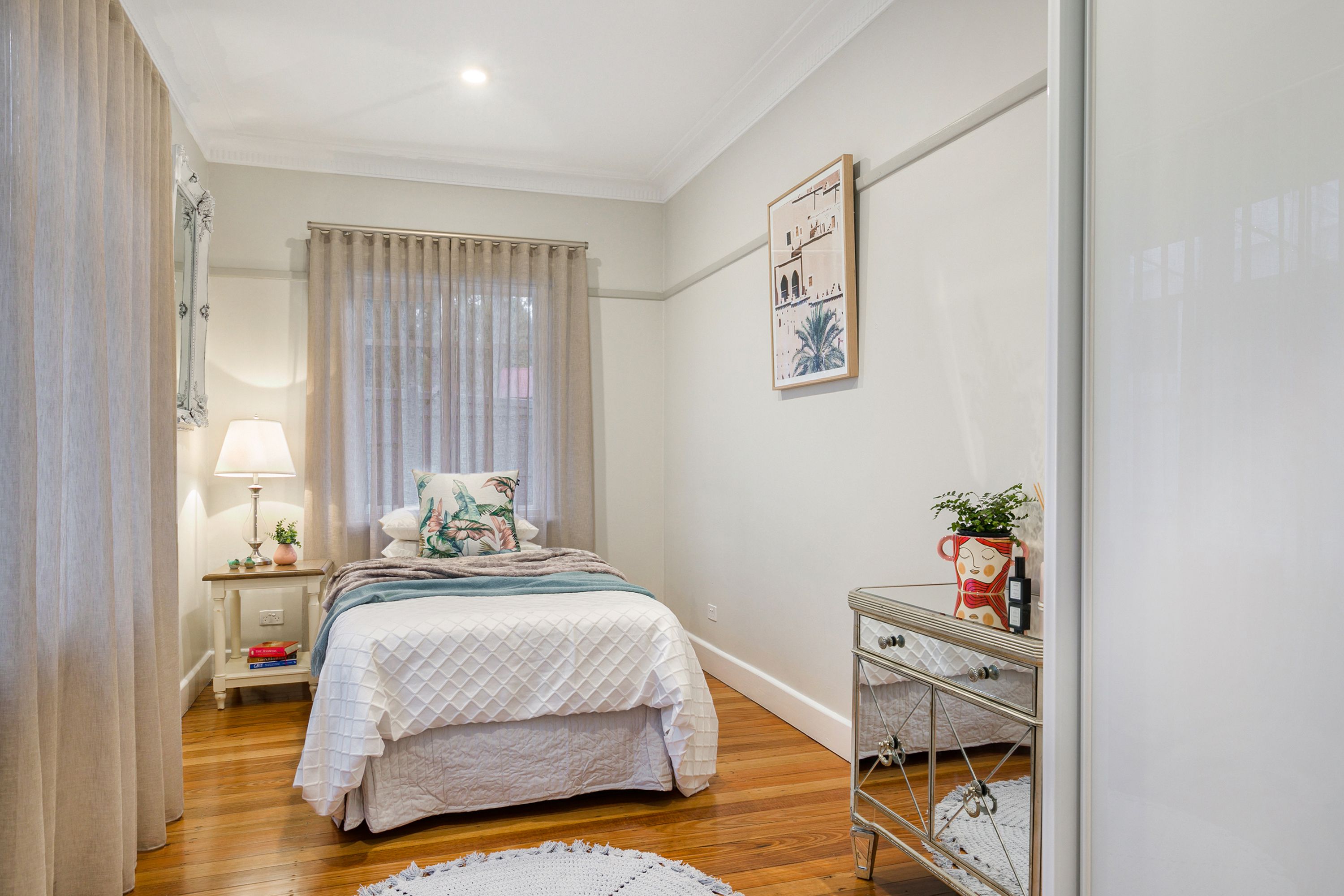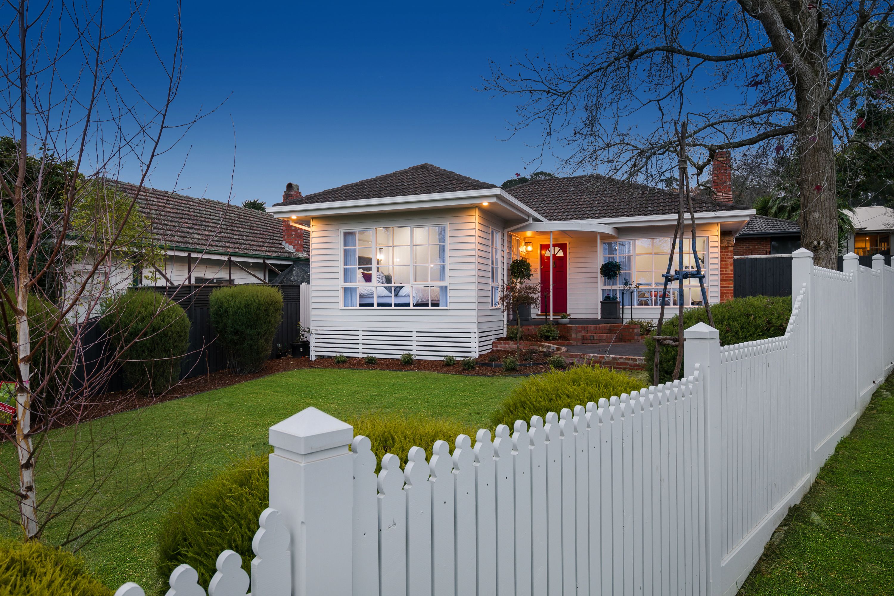 Securely picket fenced and remote control gate with doorbell, there's room to easily park two vehicles off-street before entering via the raised and rounded undercover verandah. So embracing is the character of this home that you can't help but note the manicured but low maintenance front garden promising a riot of autumn colour beneath the feature Oak and attendant silver-birch plantings.