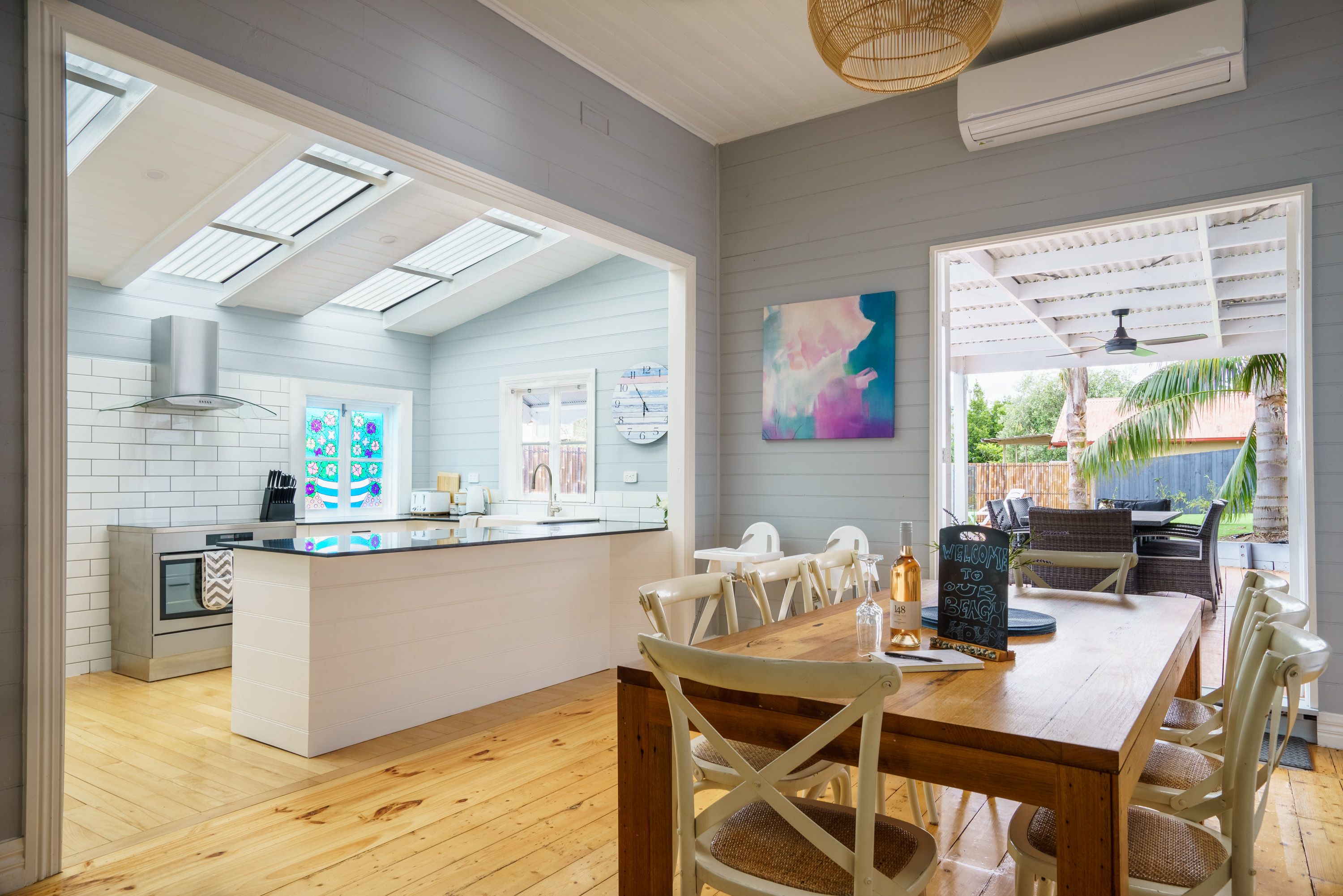 Renovated to perfection with a cool, breezy charm and bay views, this gorgeous beachside entertainer is metres from the shoreline.