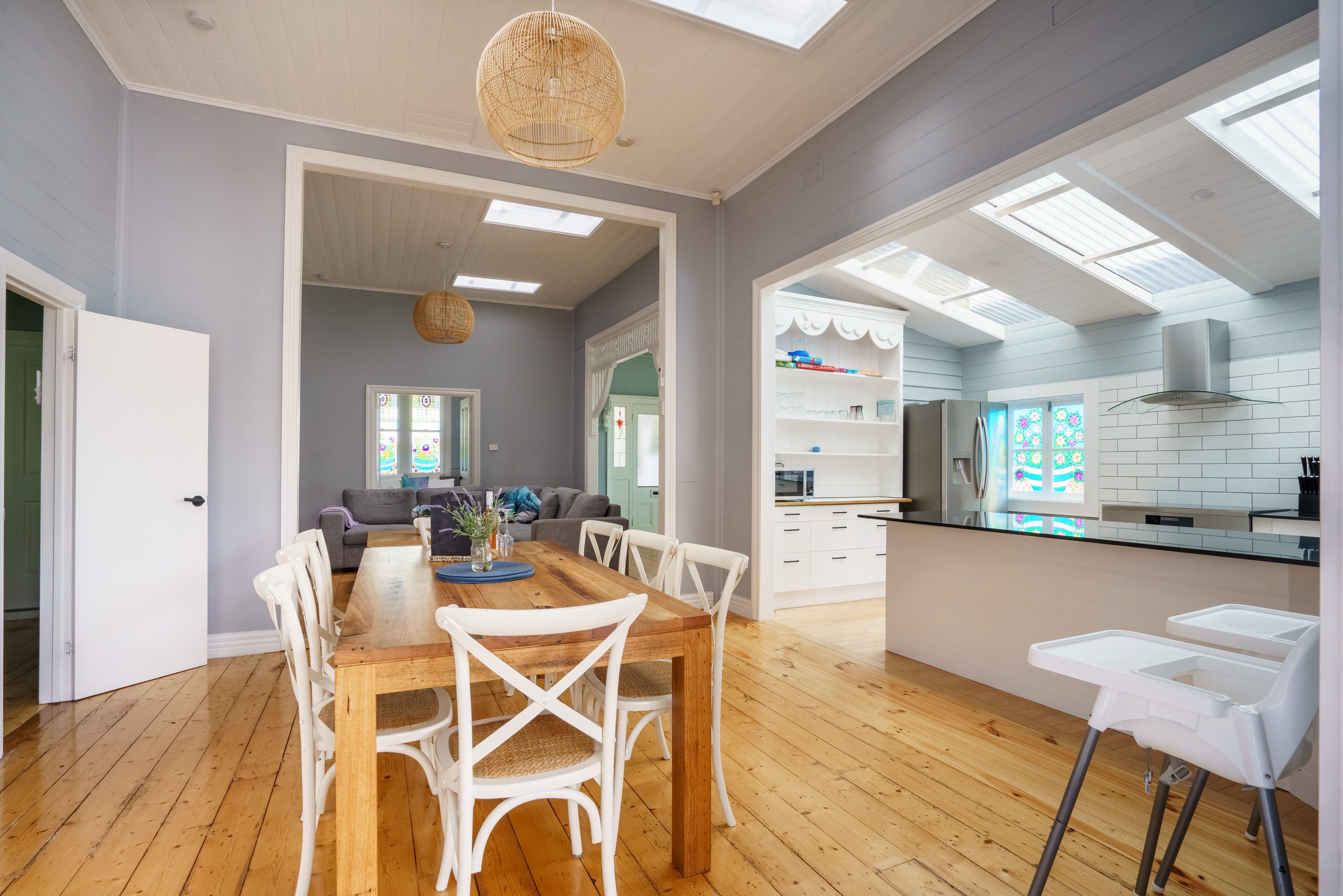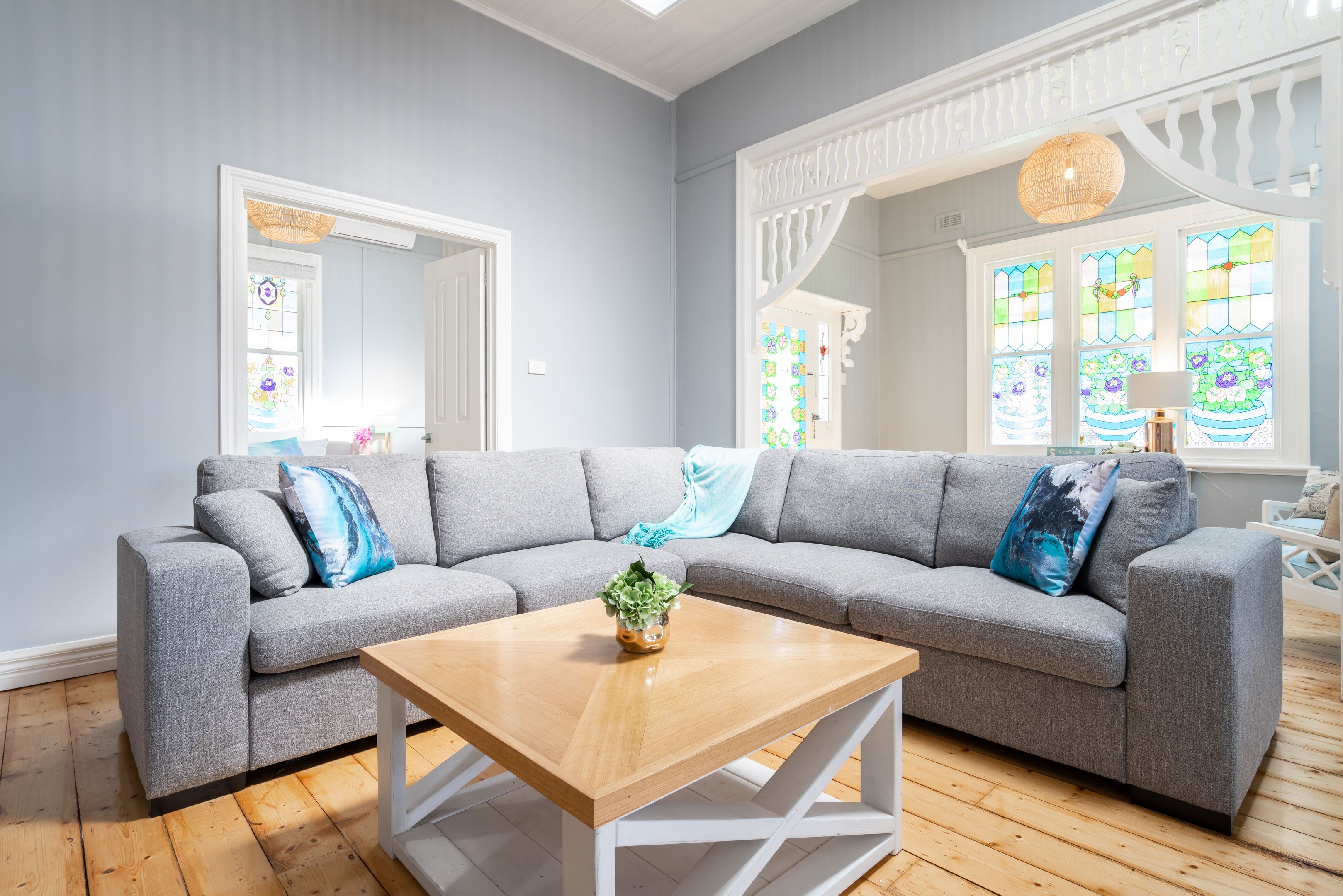 Exceeding expectations, the beautifully restored weatherboard showcases abundant natural white light, coastal colour schemes, towering ceiling heights, brightly coloured stained glass, ornate period features, sumptuous timber flooring, deluxe bathrooms, gourmet kitchen and stunning outdoor living.