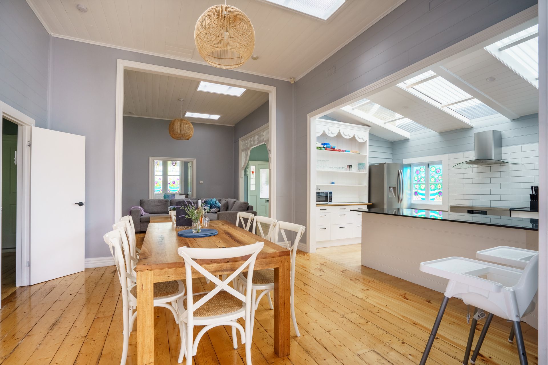 Instantly appealing from street level thanks to its mature palm trees and expansive timber decked veranda, the lived-in atmosphere of the continuous-flow layout makes anyone who enters feel right at home.