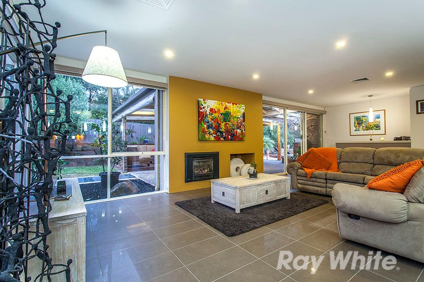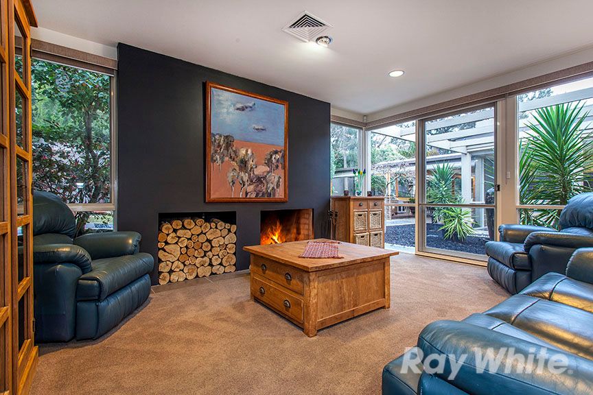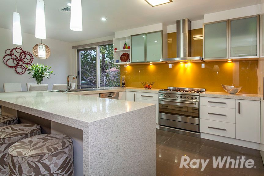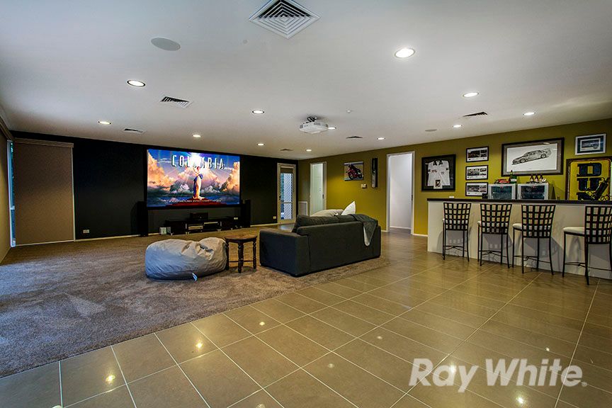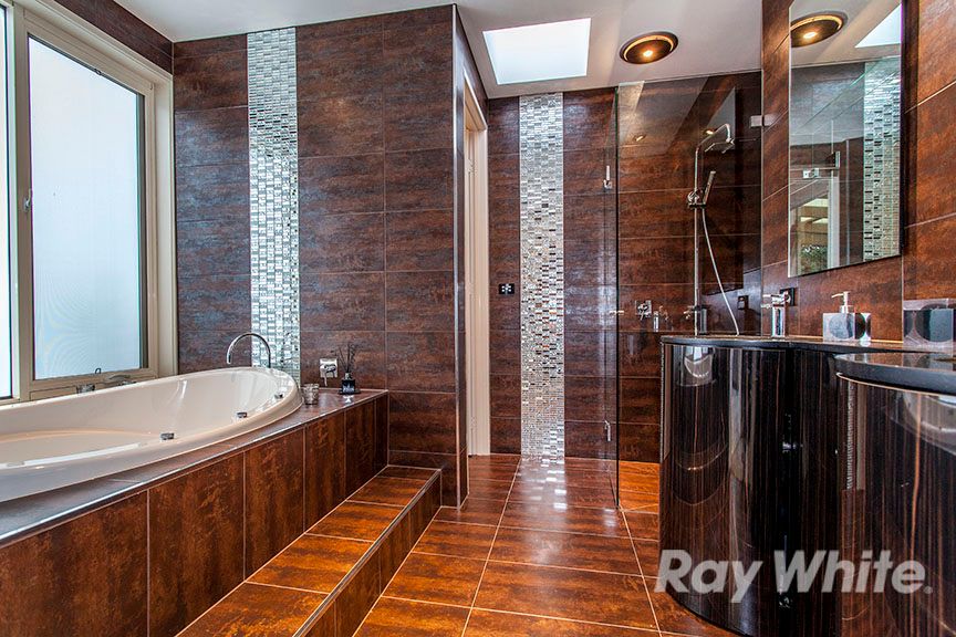 Undeniable Fasham Johnson design and construction expertise is effortlessly showcased in this glamorous family residence, characterized by multiple courtyards and large windows allowing natural light to permeate throughout. Accessed via a secure gated entry and resting on almost 1/3rd acre in the prized Timbertop Estate, the home comprises a formal lounge with open fireplace and courtyard aspect complemented by a separate dining room with display cabinet. The state-of-the-art kitchen incorporates Caesarstone benches, European appliances, walk-in-pantry, soft close drawers and breakfast bench, opening onto a meals zone and family room with gas fireplace and wet bar. Stackable sliding doors form a seamless connection onto the impressive, covered alfresco entertaining zone, tranquil landscaped garden and sumptuous, solar heated in-ground pool with waterfall feature. A massive theatre room further promotes endless entertaining equipped with wet bar. While the four robed bedrooms plus study offer abundant accommodation, master with private courtyard, lavish spa ensuite and fitted walk-in-robe, guest suite with bathroom access, accompanied by a 3rd bathroom, two separate toilets and laundry with drying cupboard. Featuring zoned ducted heating and refrigerated air-conditioning, ducted vacuum, alarm, water tank and four-car garage with workshop. Situated in a peaceful cul-de-sac close to shops, schools, transport and freeways.