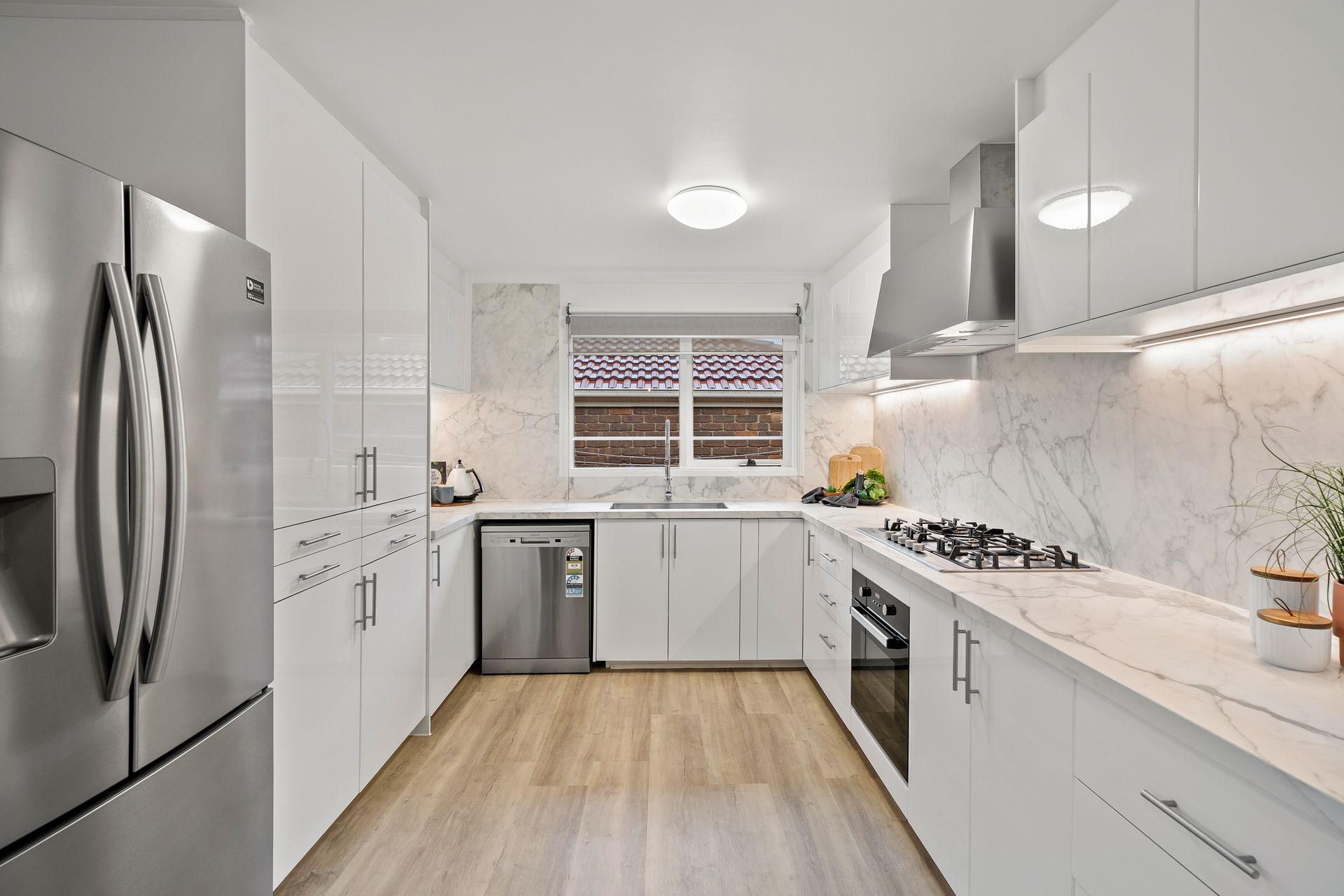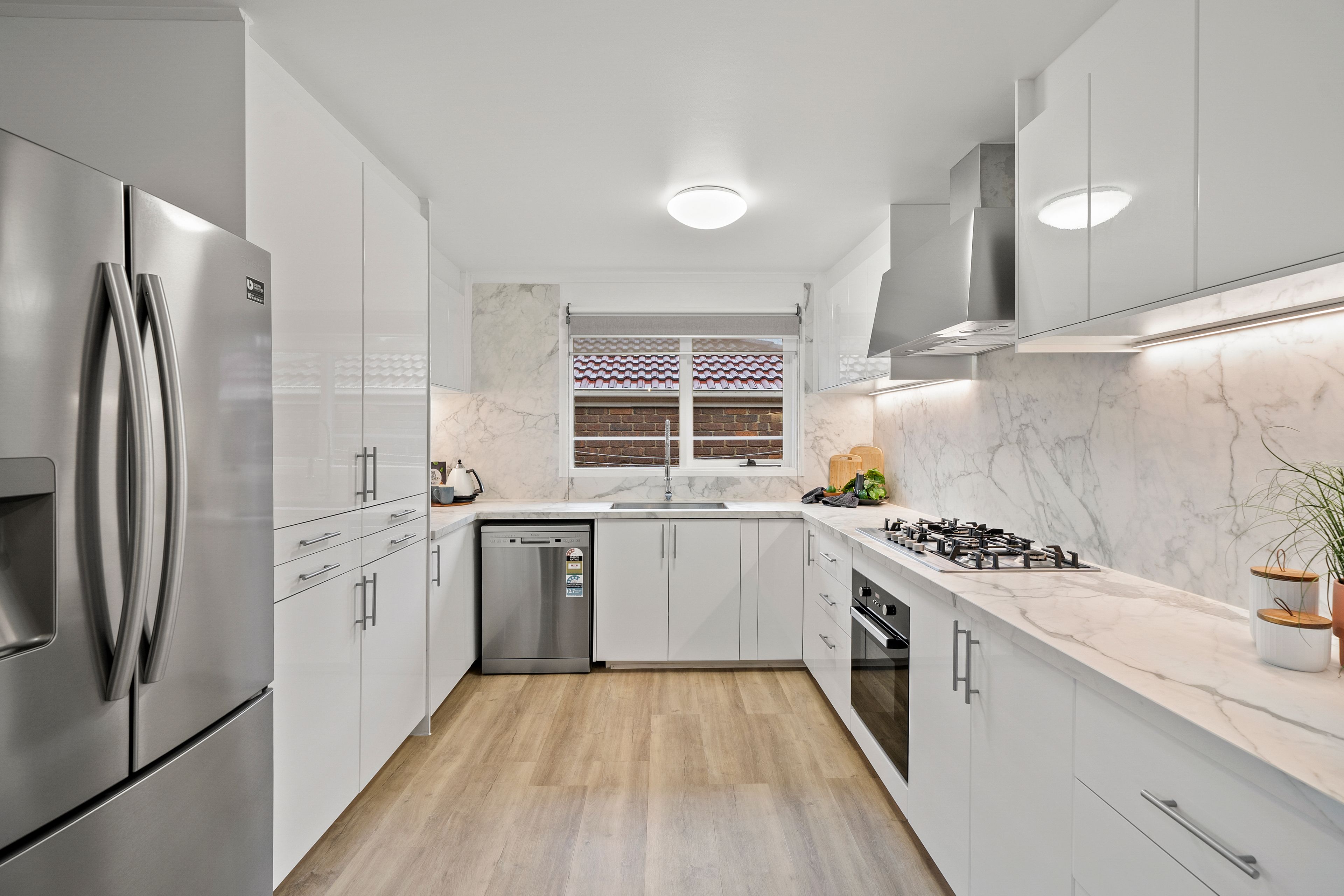 • Premium porcelain bench top in the kitchen with SS appliances, stunning splashbacks & ample storage