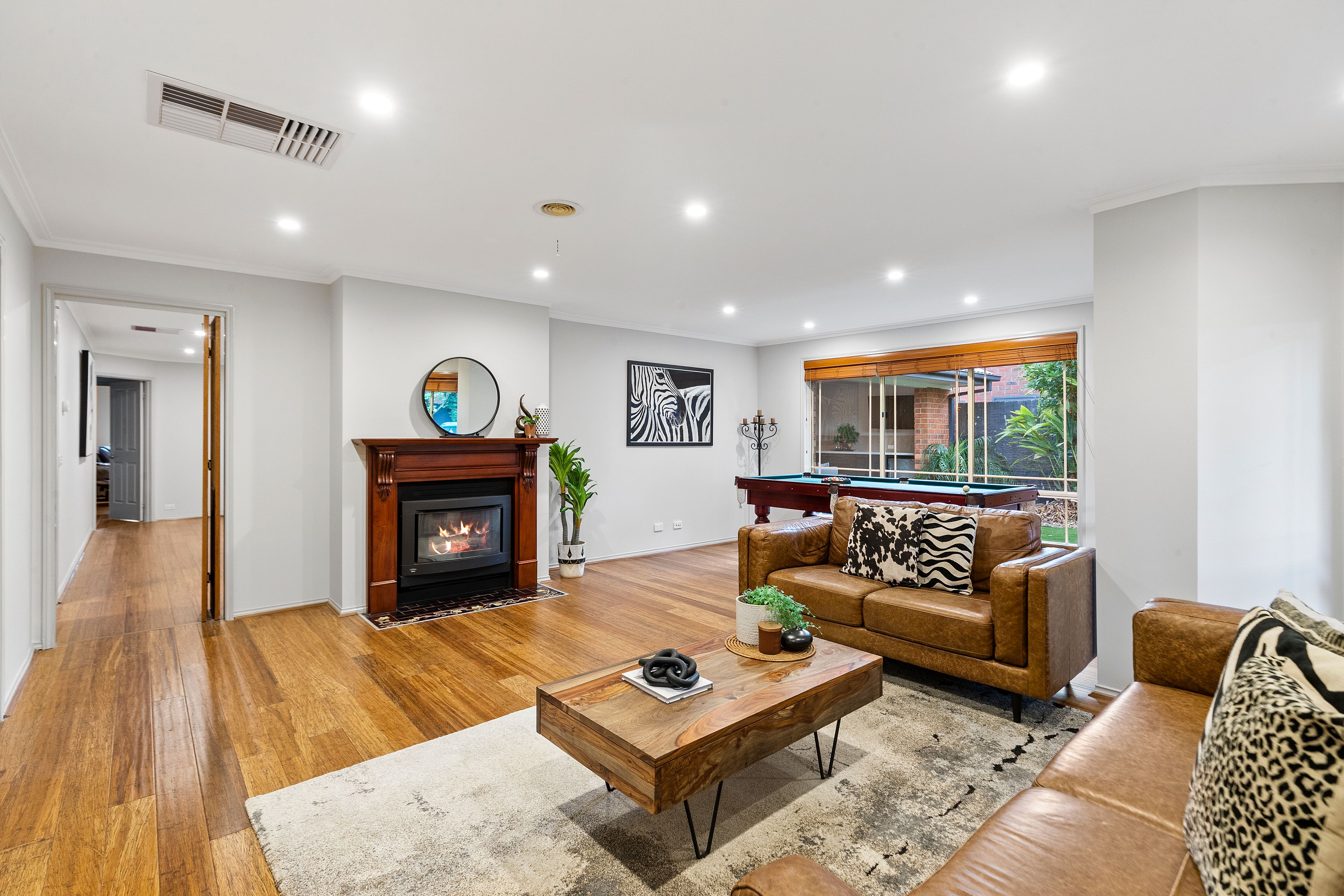 Nestled in the bowl of a peaceful cul-de-sac, this spectacular four-bedroom family home is an entertainer's haven on a generous 784 sqm approx. allotment. Inside, the stunning living and dining domain upon entry is instantly inviting, enhanced by stylish floorboards, gas fireplace and abundant natural light. Centrally positioned, the separate open plan family zone is highlighted by the majestic stone kitchen complete with induction cooktop, servery window and generous island bench with pendant lighting. Bi-fold doors reveal the high-end alfresco boasting plumbed-in barbecue, fridge and basin, ideal for all-seasons entertaining, while the connected deck flows down to the beautiful resort-style pool, with the surrounding lawns ideal for kids and pets to play. Lavishly appointed, the main bedroom features a chic ensuite and huge walk-in robe, with three further robed bedrooms serviced by the luxe main bathroom flaunting a deep-set bathtub.