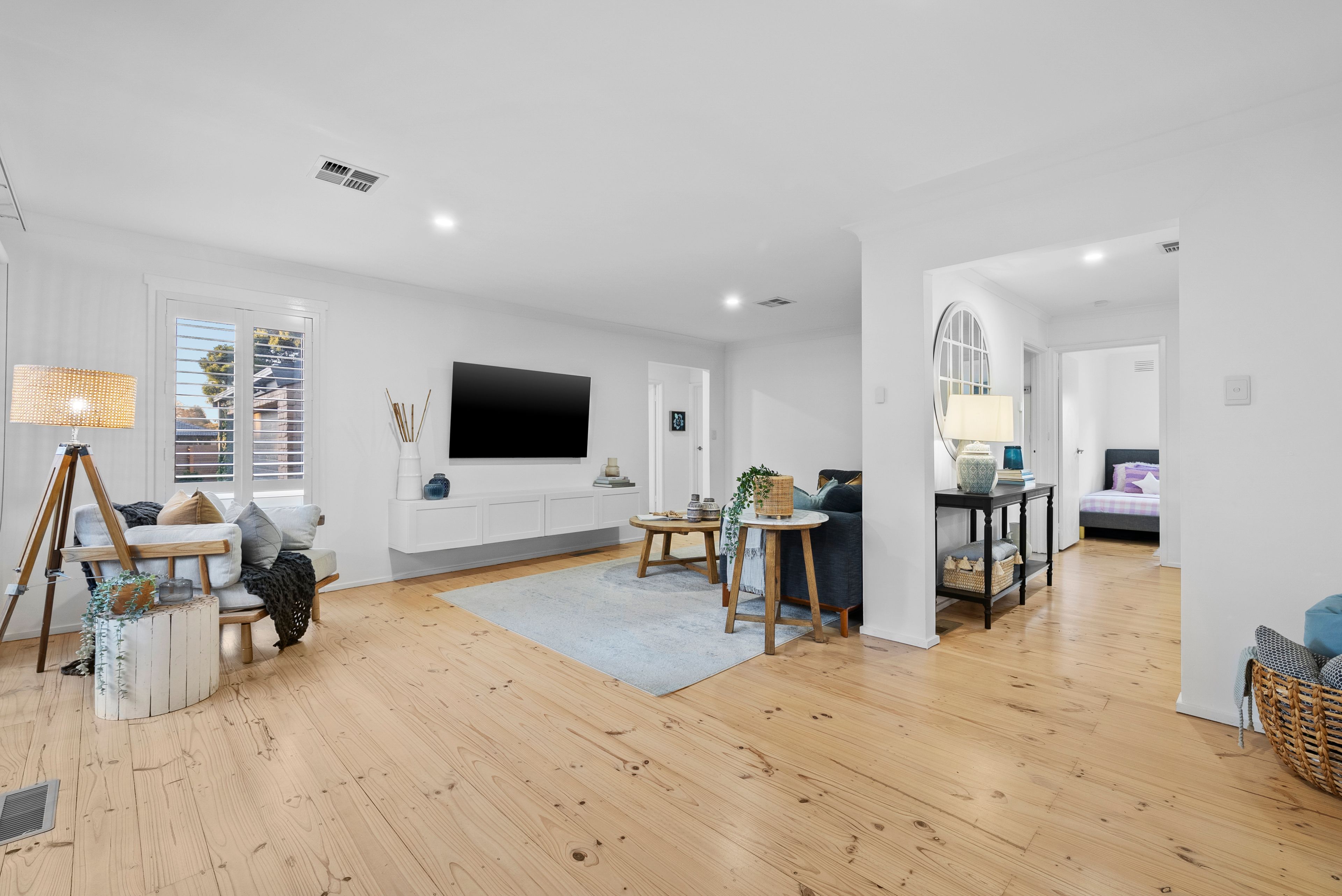 Rising to a new level of sophistication, this superb four-bedroom residence has undergone a stunning transformation inside and out, offering an effortless and elegant lifestyle for discerning modern families. Impressive from every angle, the home is peacefully set back from the road and framed by lush, landscaped gardens, instantly creating a sense of tranquillity and privacy. Immersive living spaces extend throughout, highlighted by beautiful timber flooring and plantation shutters. Bi-fold doors extend the L-shaped living zone out to a stunning entertainer's alfresco, flaunting built-in barbecue and fridge, heater, ceiling fan and louvre roof for optimum enjoyment in every season. Flowing through the central dining domain with cosy Coonara wood fire, discover a lavish skylit kitchen designed by Smith & Smith with stainless-steel cooker and integrated dishwasher, while a spacious rear family room with wraparound wall-to-wall windows offers further versatile space. Bedrooms include built-in robes, the main with luxurious ensuite, while the fully tiled main bathroom stylishly services the family with deep set tub and modern appointments. Additional highlights include dedicated laundry, super smart air conditioning system that integrates with a wide range of smart home products to enhance daily living and can even be controlled remotely from your smartphone, instantaneous hot water, a second covered alfresco and double lock-up garage with room for storage.