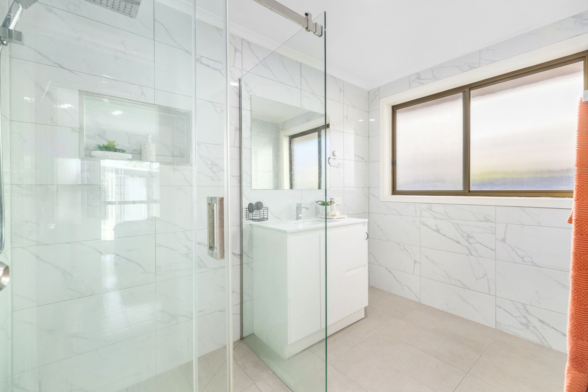 The functional layout features an L shaped lounge upon entry, flowing through to an open plan kitchen meals and family area. The kitchen boasts stone benchtops tiled splashback, a walk in pantry and ample cabinetry. The spacious master bedroom includes a walk-in robe and private ensuite, while three additional bedrooms with built-in robes are serviced by a beautifully renovated central bathroom and a separate toilet.
