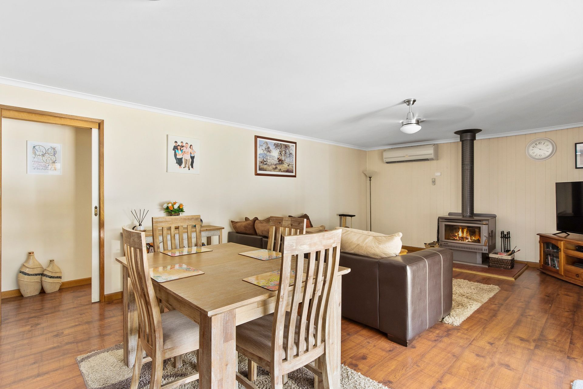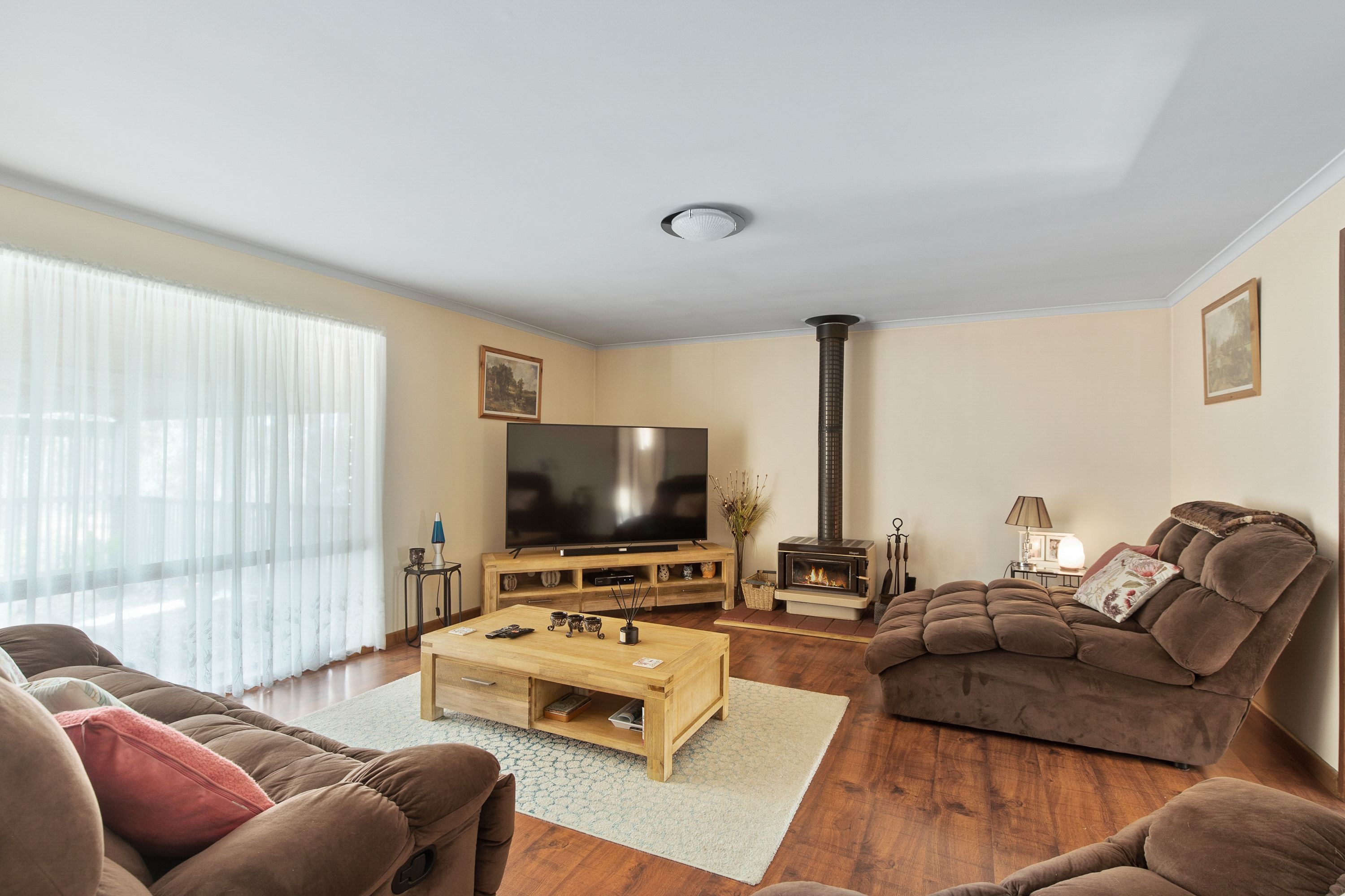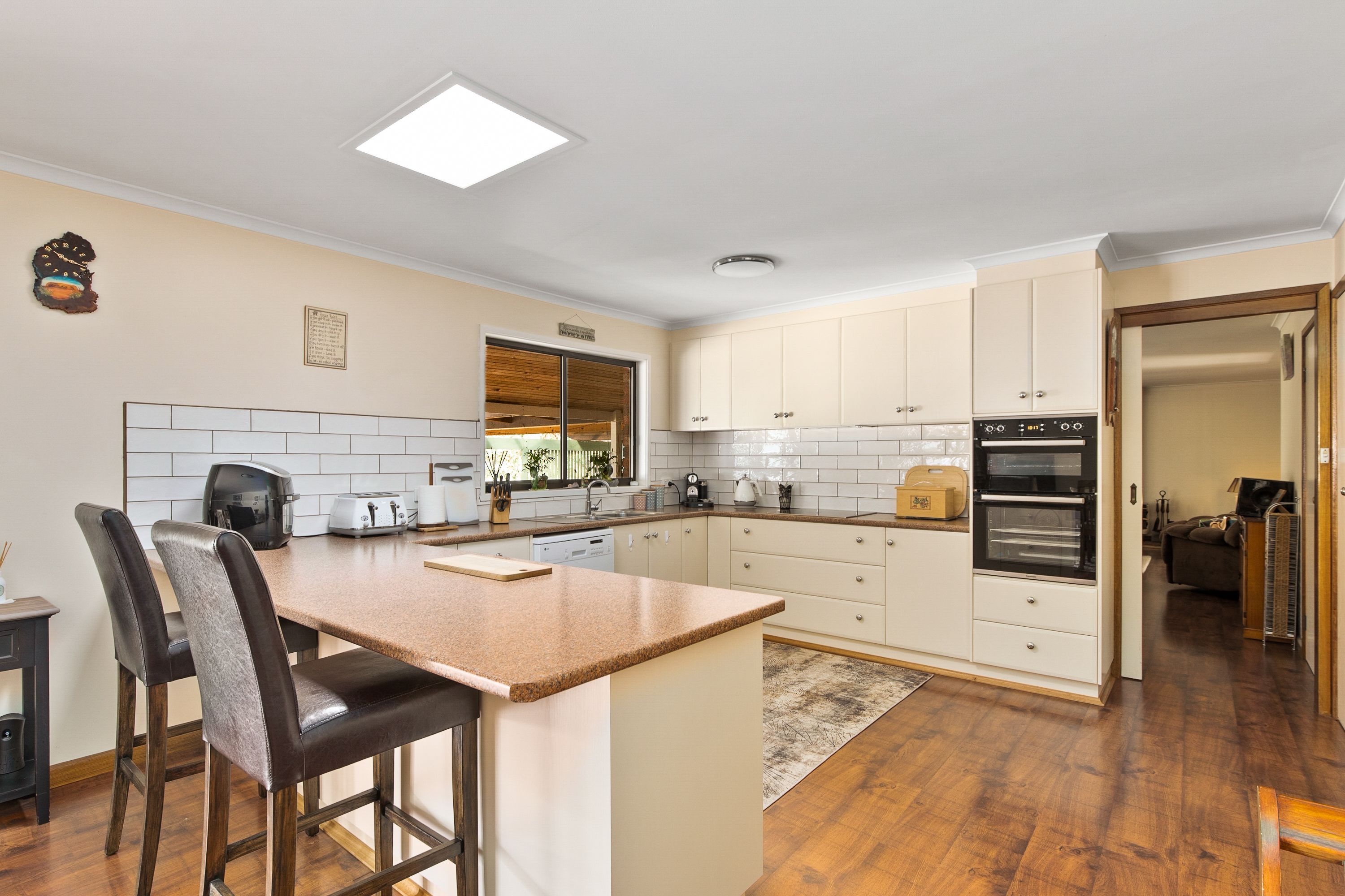 House comprises, open plan kitchen,dining, lounge area, separate formal dining/ lounge room, master bedroom with ensuite and WIR, BIRS in 2,3,4 bedrooms, attractive floating floor throughout high traffic areas, 2 wood heaters, split system air conditioning, outdoor, undercover entertaining area, wide verandah on 4 sides, monster double car garage and bill busting solar panels.