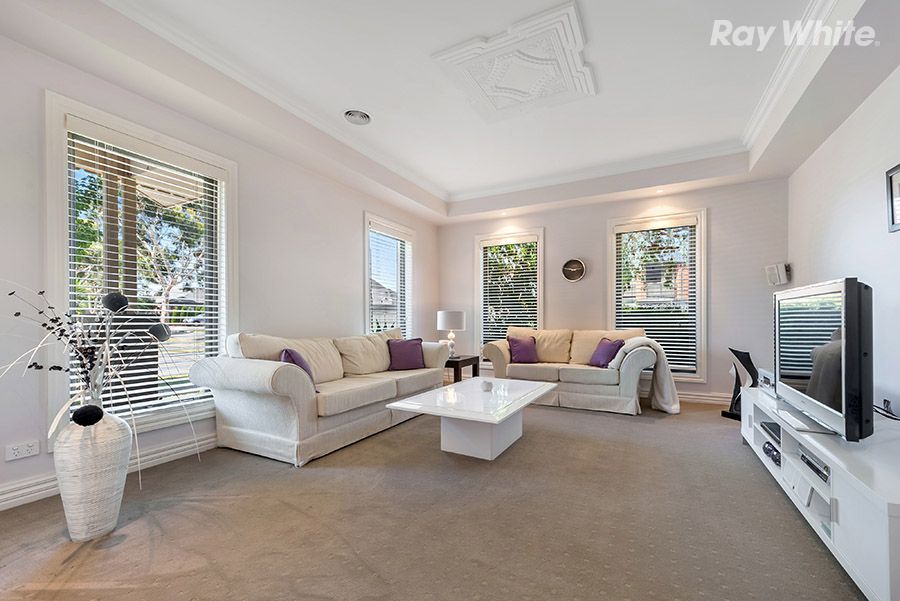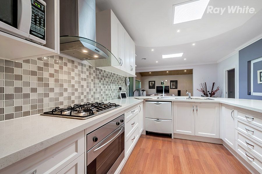 A formal entry accentuates the space and brightness of the formal lounge, which steps into a separate lounge living/ dining and separate family room to create an elegant arrangement. Open-plan living in the heart of the home delights with its excellent sense of space, well-appointed hostess kitchen with neutral stone bench tops walk in pantry and generous meals area, while a large second family room connects with the large rear yard access. Head outside to discover a fabulous enclosed alfresco dining area, vaulted ceilings in the rumpus room, separate hobby/ gym room framed by landscaped gardens for your outdoor pleasure and a large secure backyard that is ideal for the kids to play that has direct rear access to the double car accommodation.