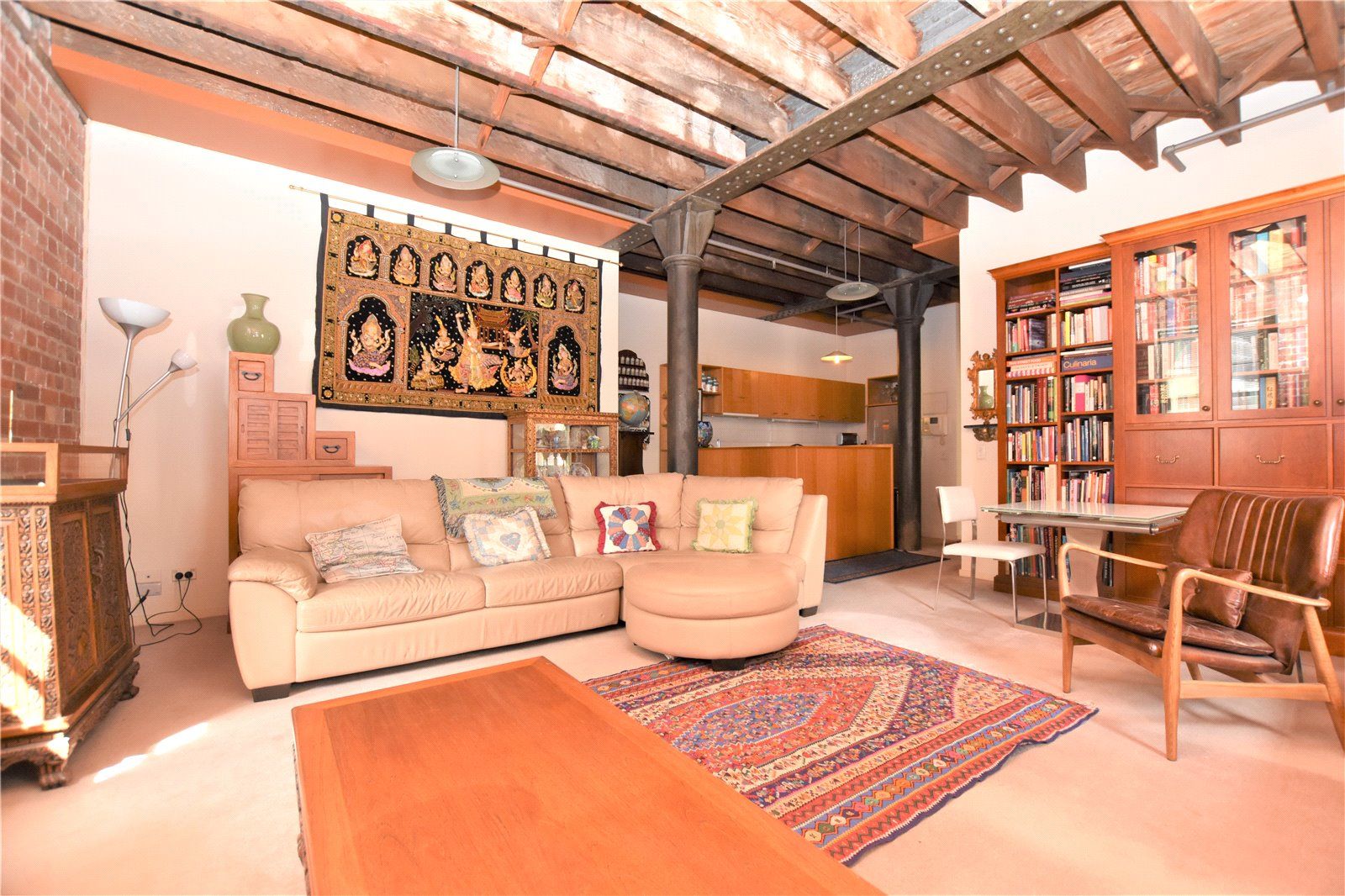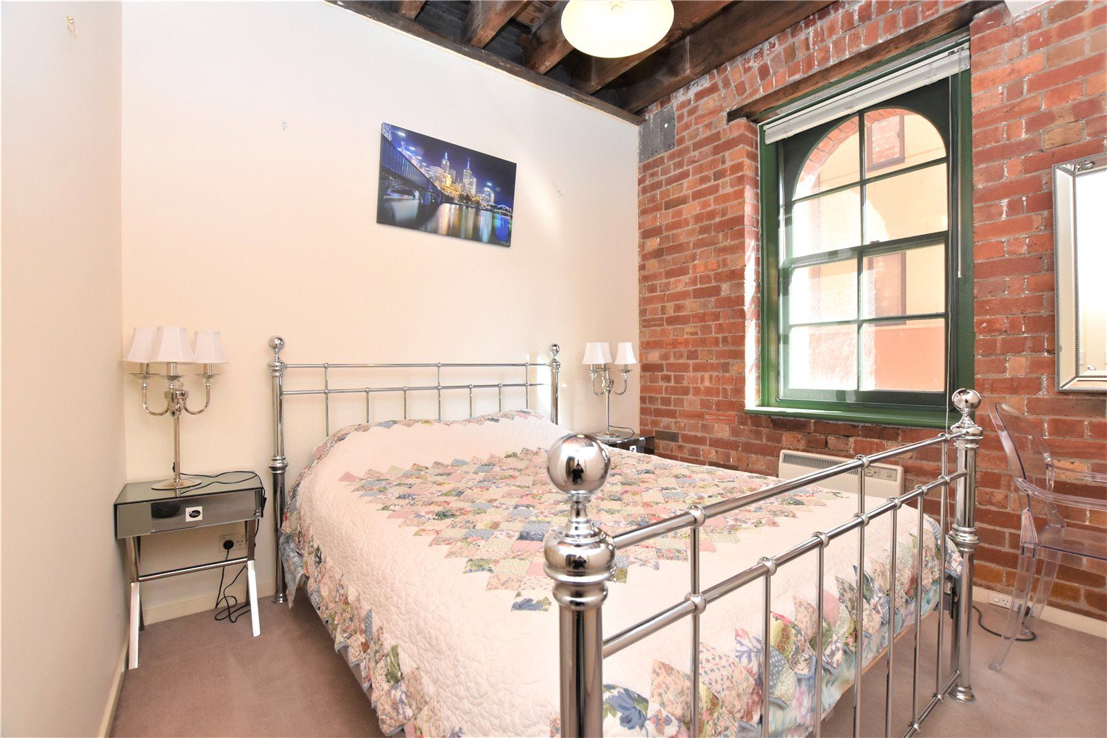 Located on the 2nd floor and measuring a spacious 98 sqm (approx.), this eye-catching residence has red brick interiors, lofty wooden beam ceilings, and original cast iron poles throughout. The large central living zone is perfect for all occasions, while the timber kitchen is graced with stainless steel appliances including a dishwasher. Both bedrooms are good-sized with built-in robes, the recently remodelled bathroom has a convenient European laundry with dryer, as well as a separate powder room.
