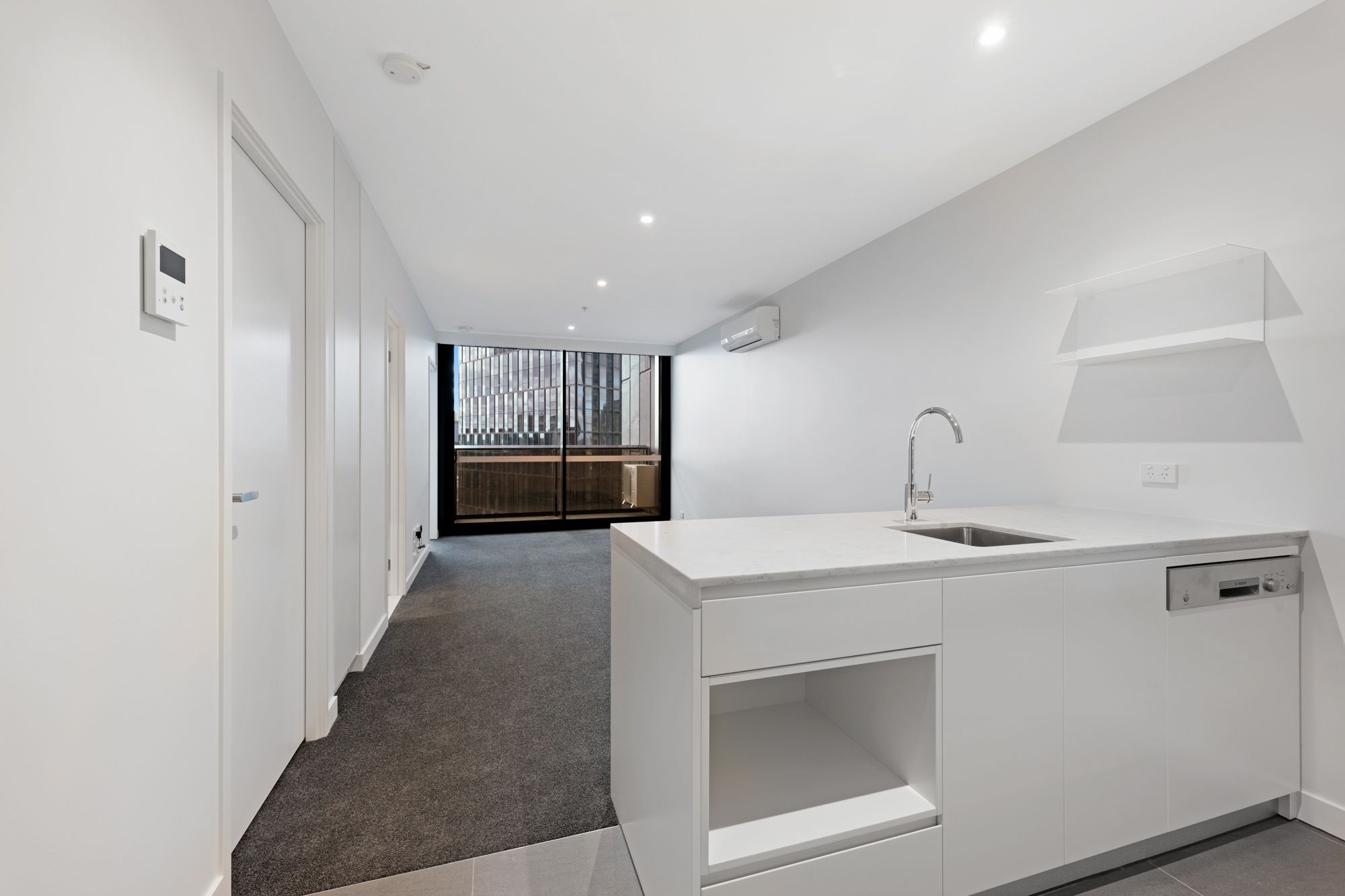 As you step into this BRAND NEW great sized 2 bedroom home, you will be immediately captivated by the amazing floor to ceiling windows framing the views of our city. Plenty of natural light and a spacious open plan living comprising a contemporary kitchen fitted with stainless steel appliances (dishwasher, oven and gas cooking) and beautiful stone bench-top with mirrored splash backs. The carpeted bedrooms come with mirrored built-in robes, both with windows.