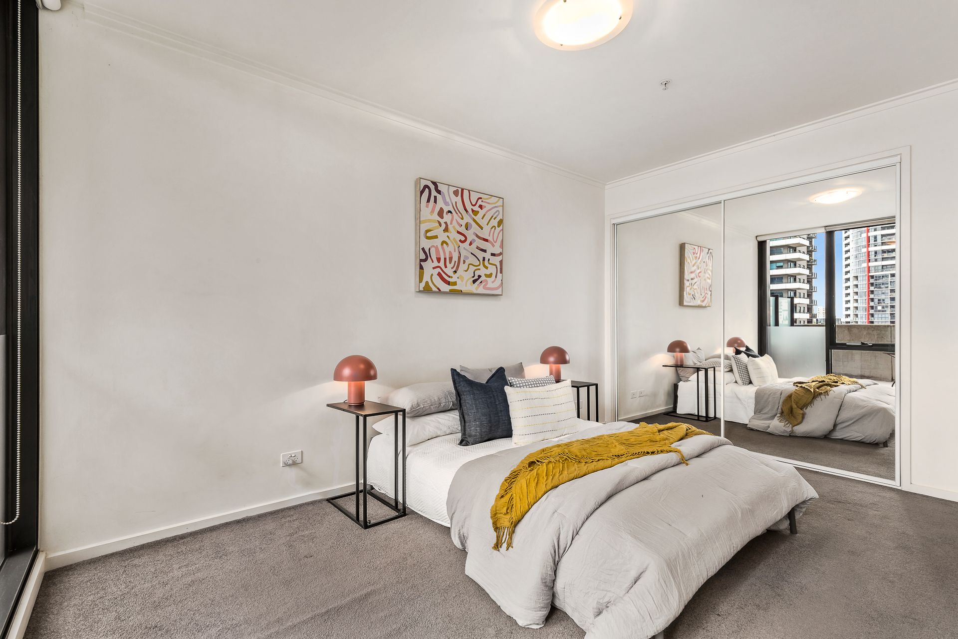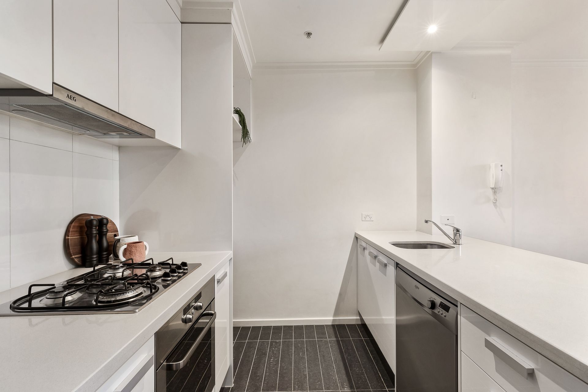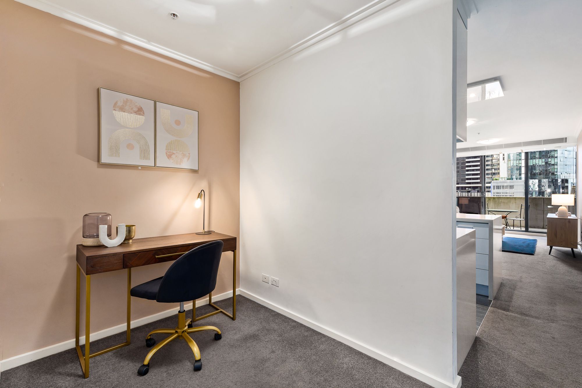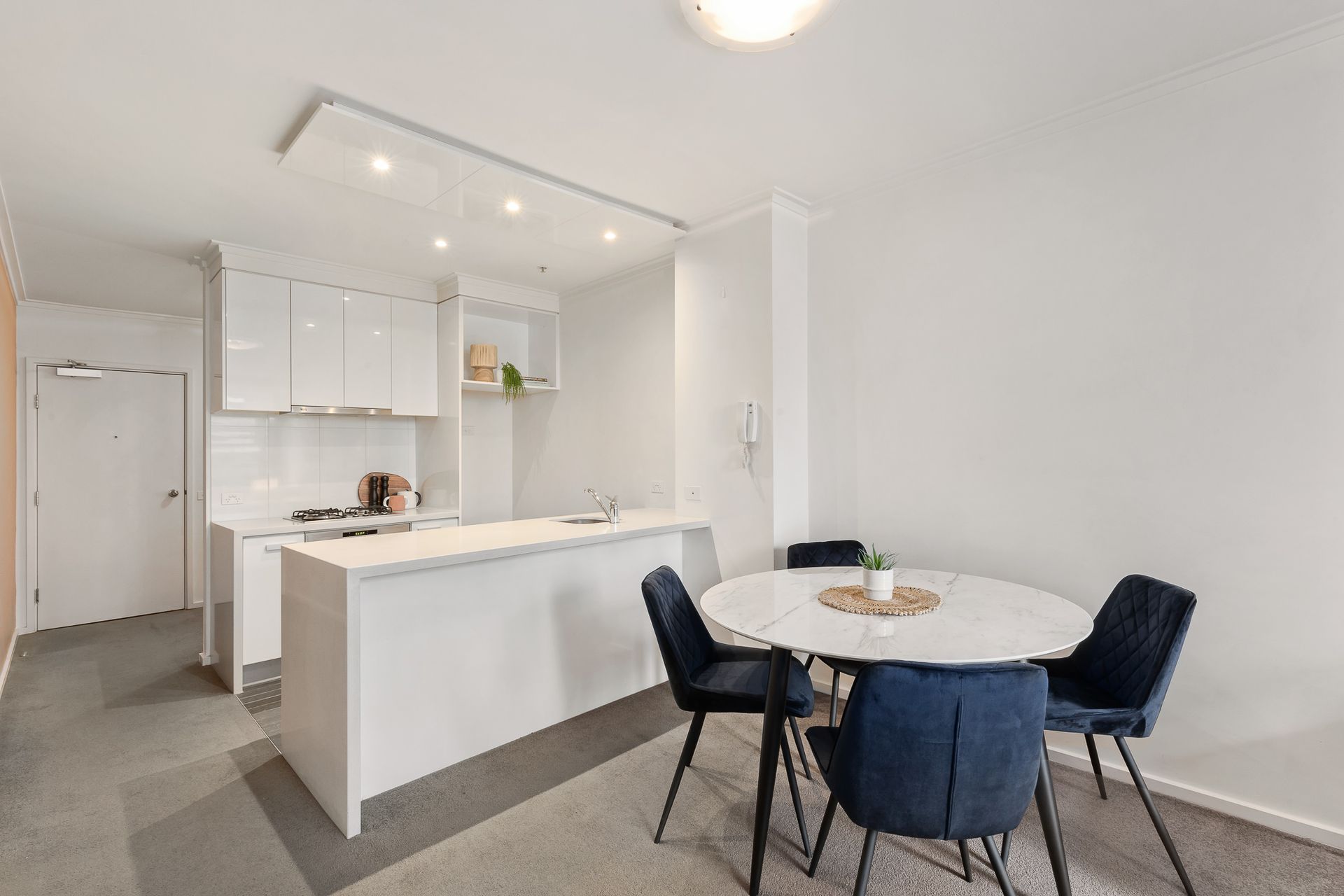 Versatility and contemporary class define this 8th floor retreat, which promises bright and relaxed living and meals flowing out to the huge balcony. A beautiful stone kitchen with breakfast bar and stainless steel appliances overlooks the living space. The generous bedroom includes mirrored built-in robe storage. A bonus with this property is the large study off the entry which is a sizable work-from-home space privately positioned away from the entertainment zones.