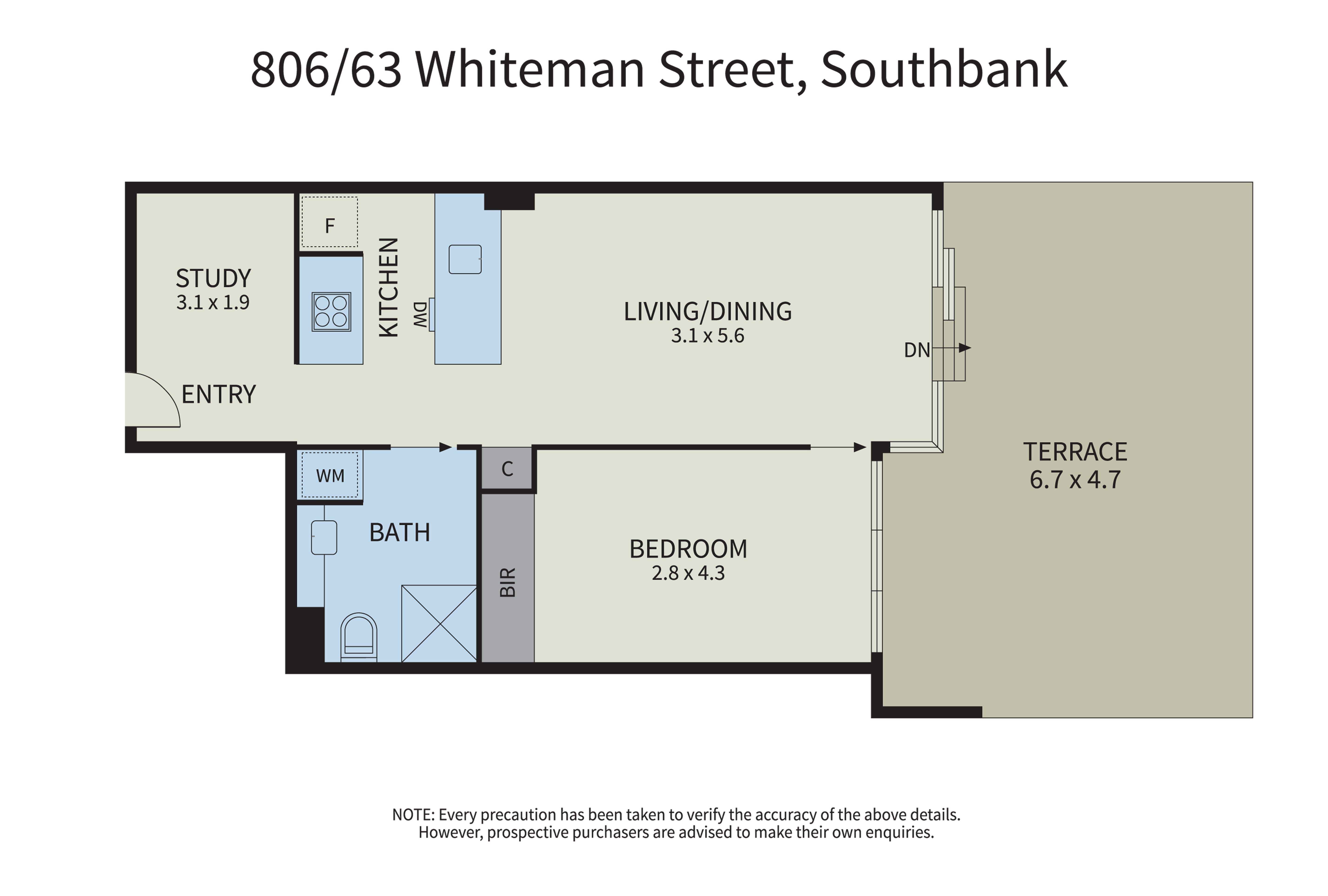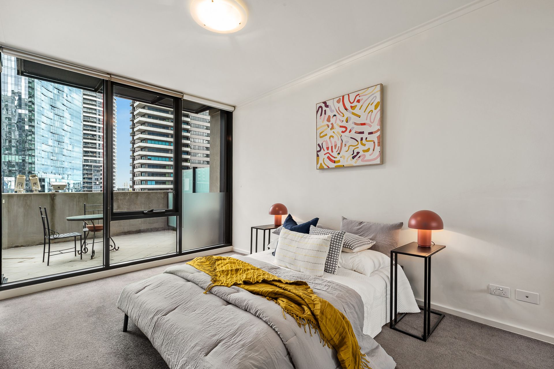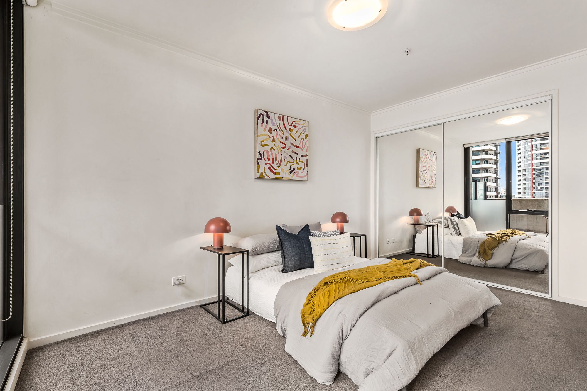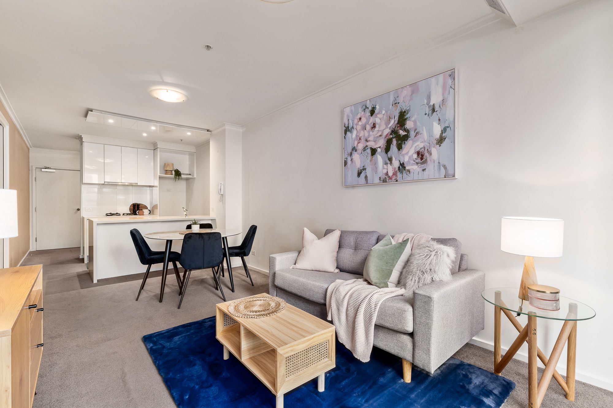 Versatility and contemporary class define this 8th floor retreat, which promises bright and relaxed living and meals flowing out to the huge balcony. A beautiful stone kitchen with breakfast bar and stainless steel appliances overlooks the living space. The generous bedroom includes mirrored built-in robe storage. A bonus with this property is the large study off the entry which is a sizable work-from-home space privately positioned away from the entertainment zones.