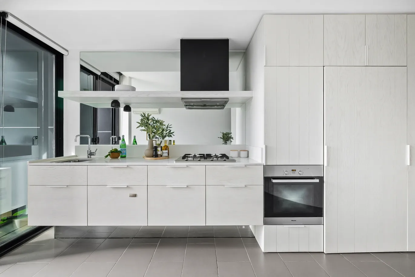 Perched high on the 20th floor, the apartment is bathed in natural light courtesy of floor to ceiling windows, boasting plenty of sun, and glimpses of The Botanical Gardens. The open-plan living and dining area extends onto a sheltered balcony, perfect for unwinding or entertaining. A sleek, high quality kitchen with stone benchtops, mirrored splashbacks, and ample storage provides both style and functionality.