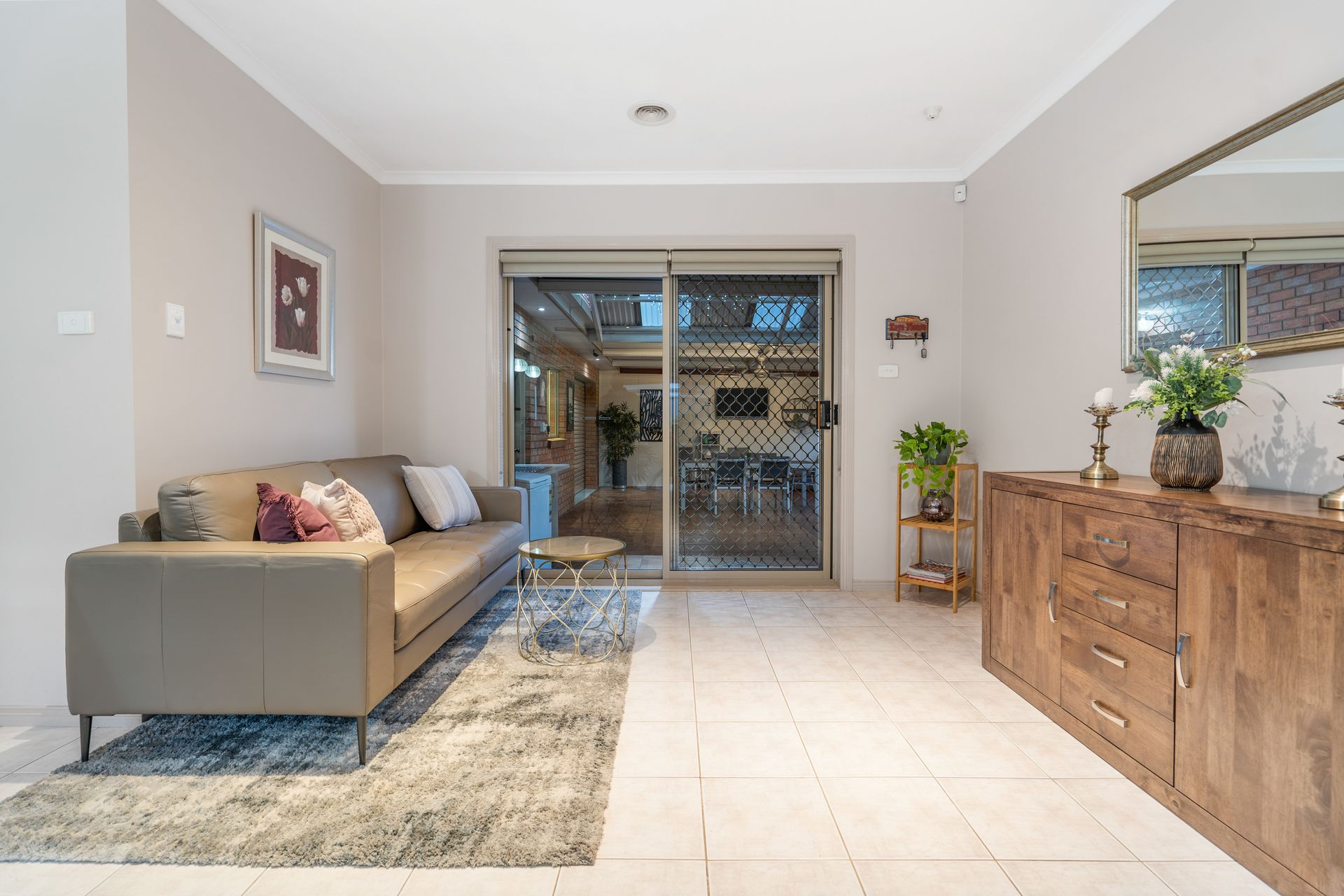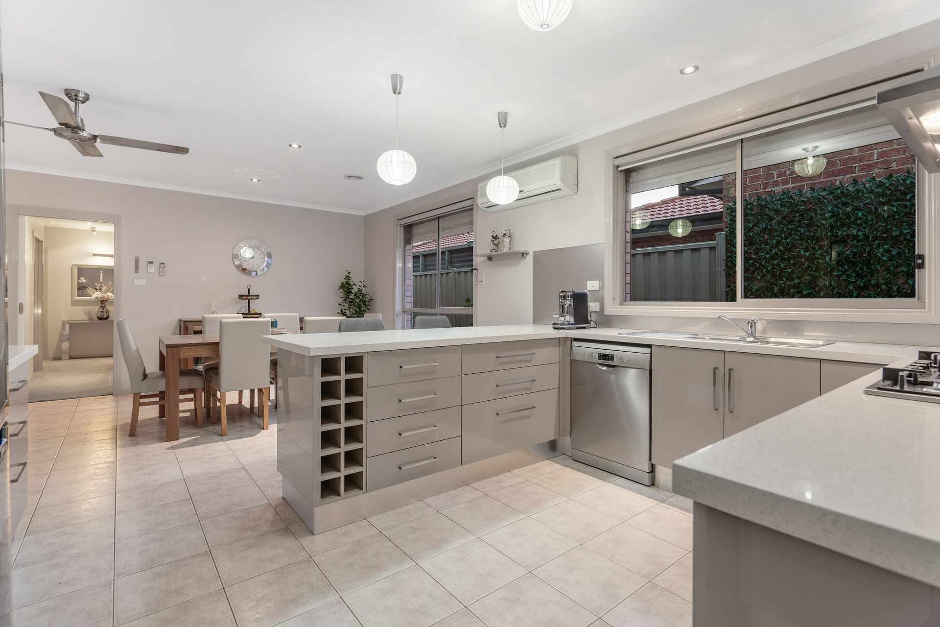 * Open plan dining room and family zone leading to an enclosed pergola area