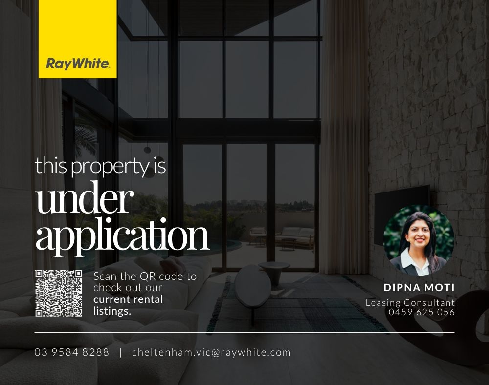 Please note: Ray White Cheltenham has exclusive leasing rights to this property. We do not advertise on Gumtree, Facebook Marketplace or any other social media platforms. Please be aware of scammers - 2Apply application codes and links will be provided upon physical inspection of the property only.