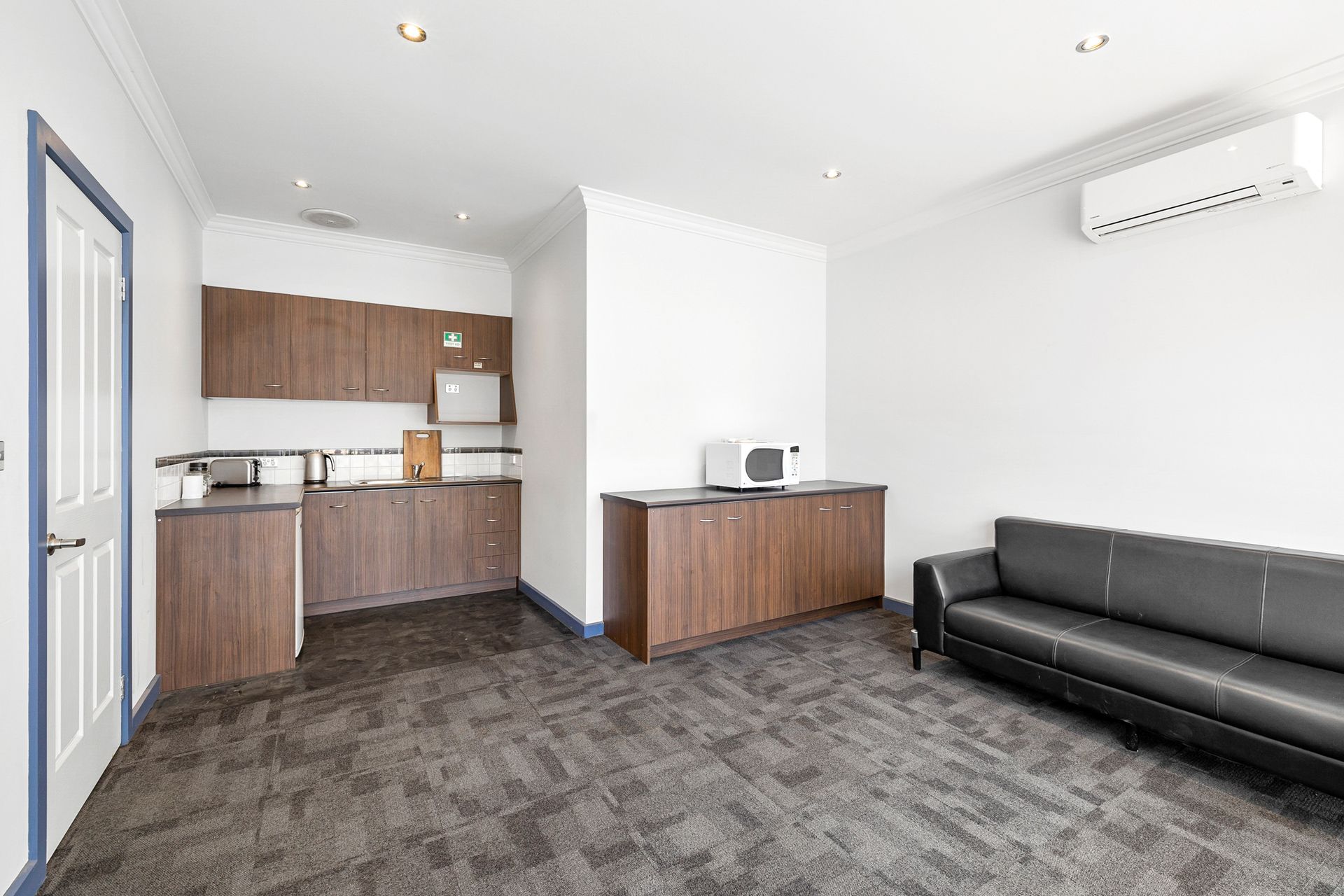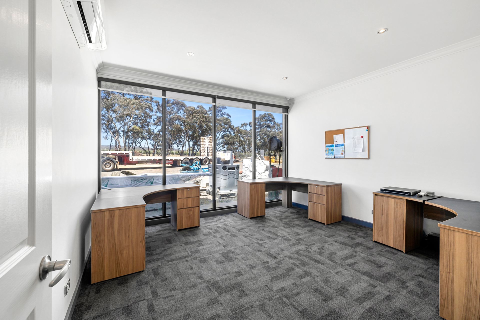 Office building comprising a large reception room plus 3 additional offices, staff meeting/lunch/training/board room with kitchen, air conditioned rooms with dedicated split systems, ambulant toilet, quality plasterboard lining & decorative cornice, blinds, commercial grade carpet floor tiles.