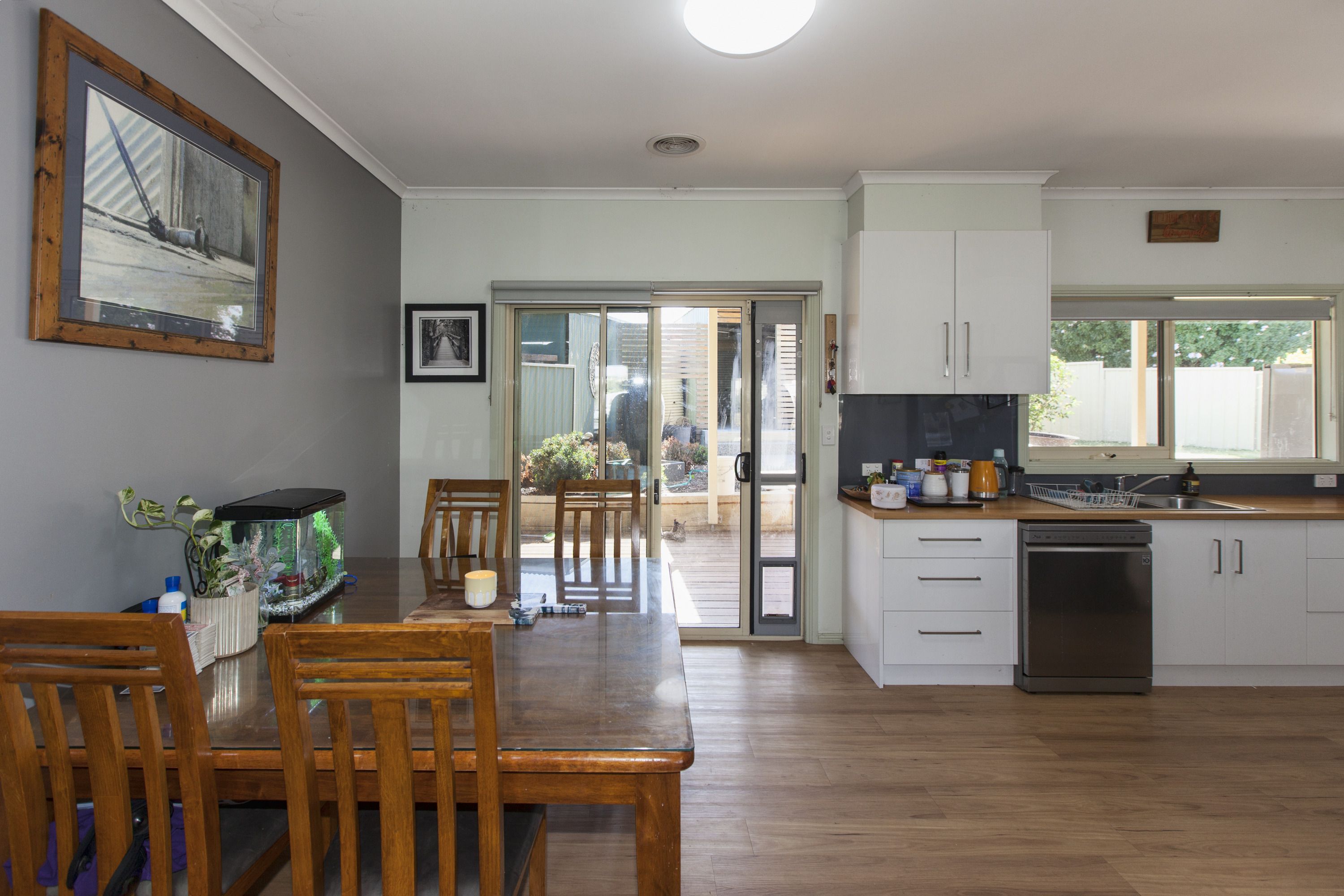 The three bedrooms all feature built-in robes and soft carpets, while the master bedroom includes a convenient walk-in robe and an ensuite. The home also includes a separate study, a lounge which boasts a ducted heating and cooling system, making it the perfect space to relax. The dining area is adjacent to the kitchen, which is equipped with gas and electric cooking, a dishwasher, pantry, and laminated benches with Lino flooring.
