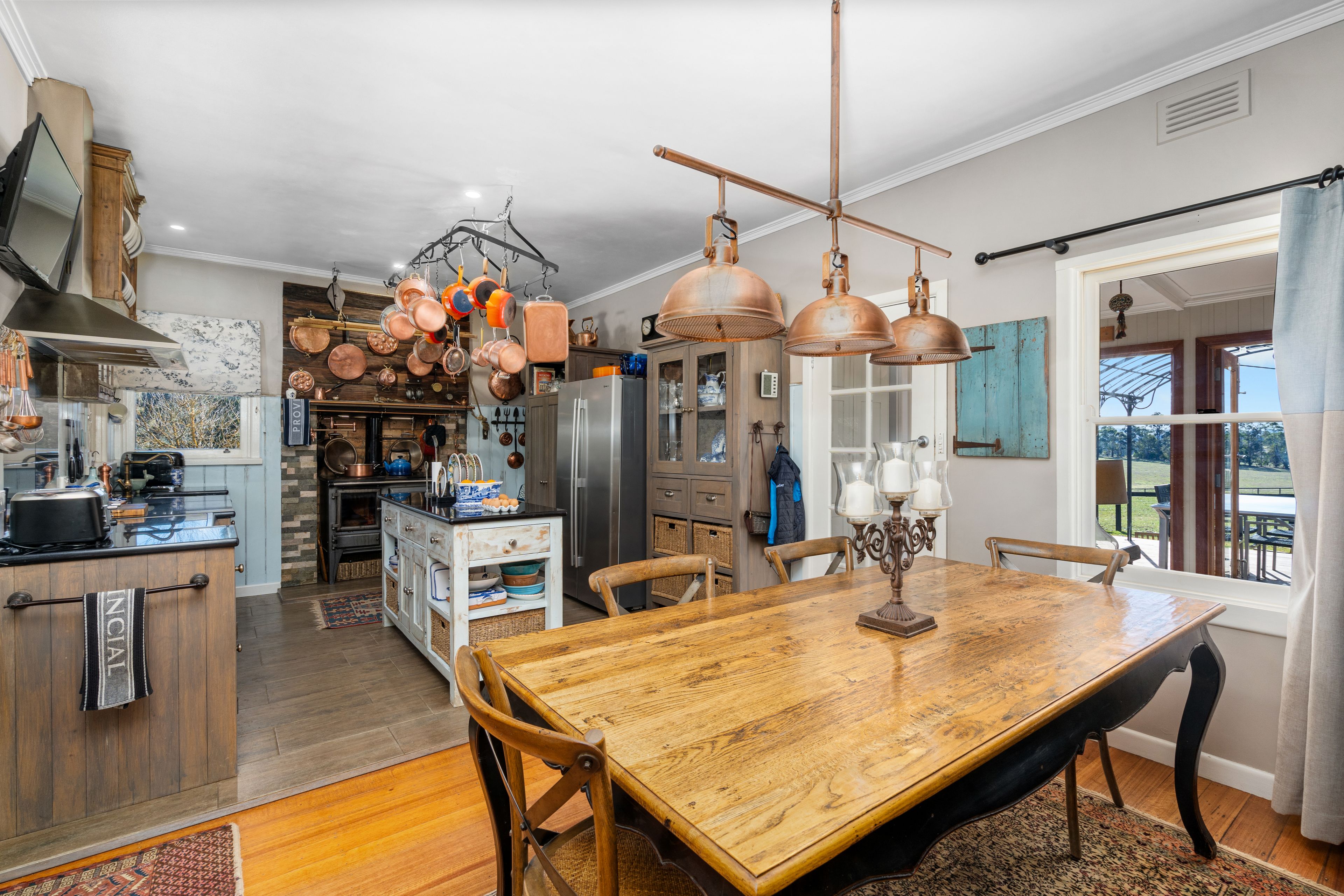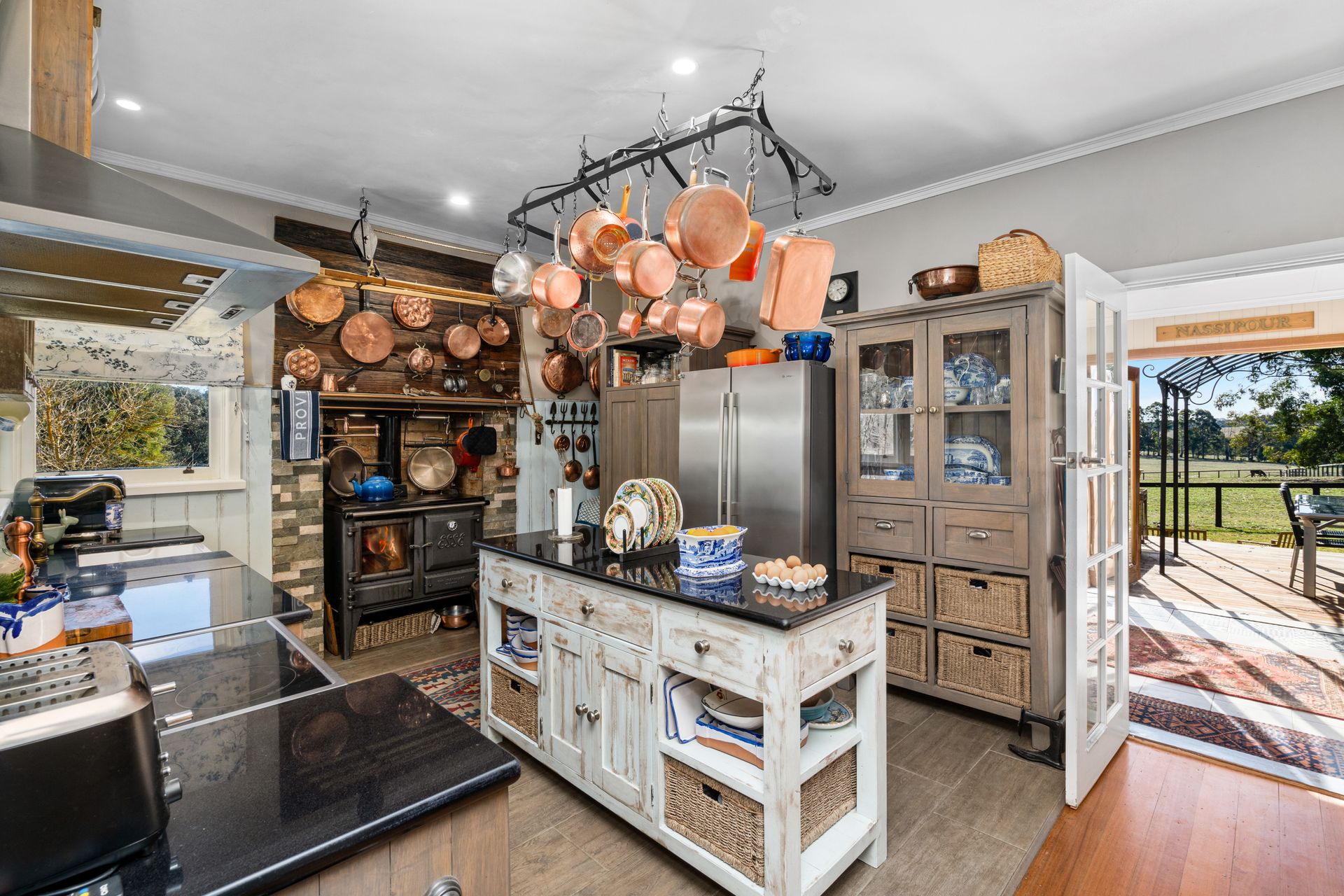 • The kitchen I just love with the magnificent wood /elec stove with its own water tap to fill your pots on the stove top