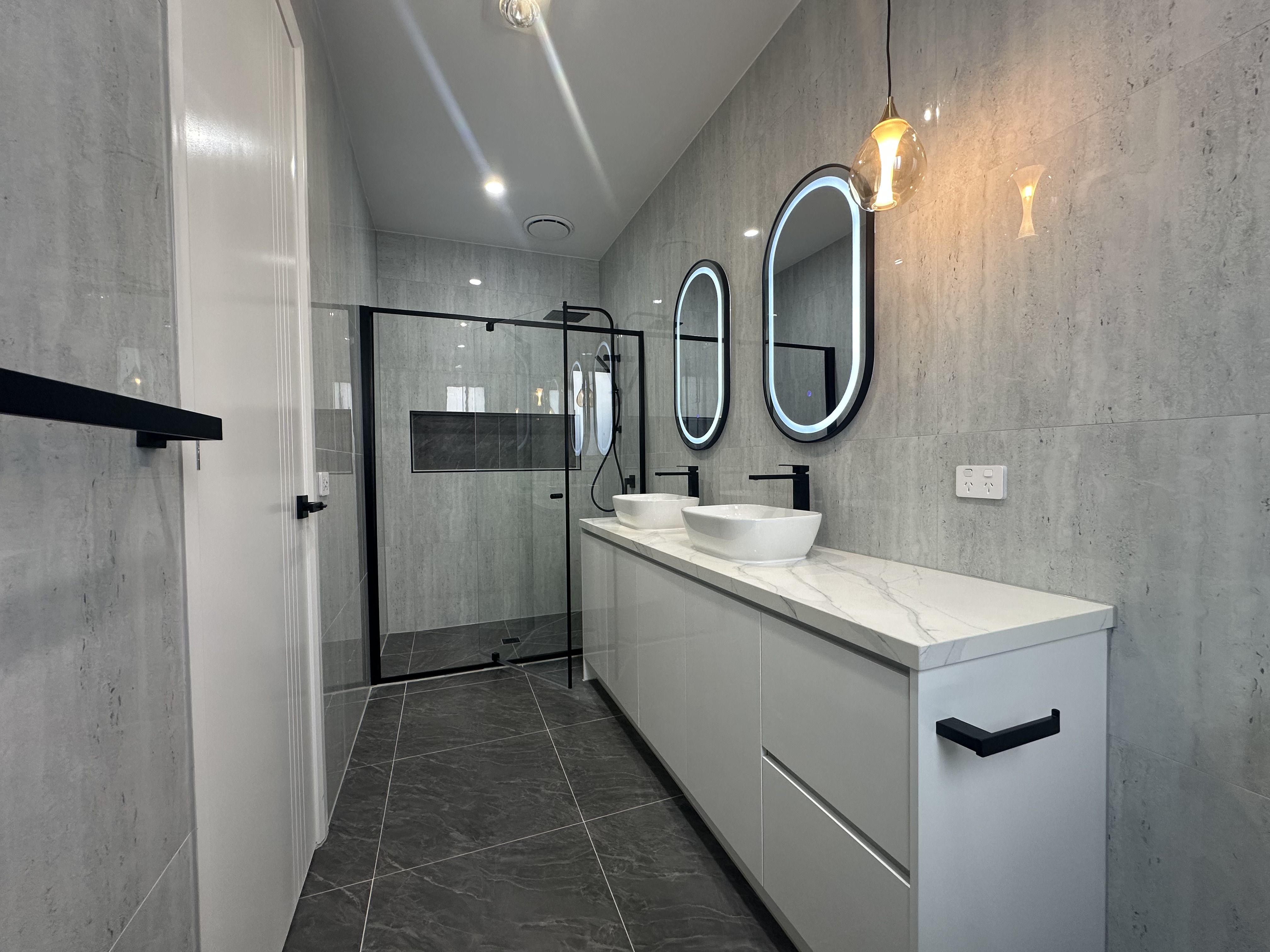 - Sleek stone benchtops