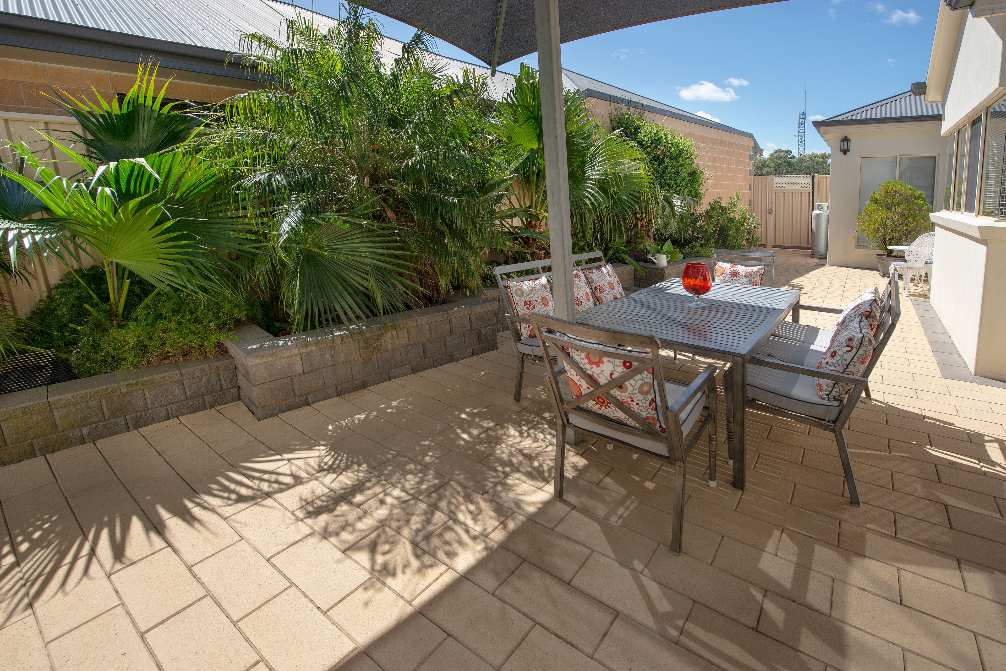 Enjoy a serene and relaxing evening in the secluded paved courtyard off the dining room, where you can unwind with a good book or a quiet drink with friends.