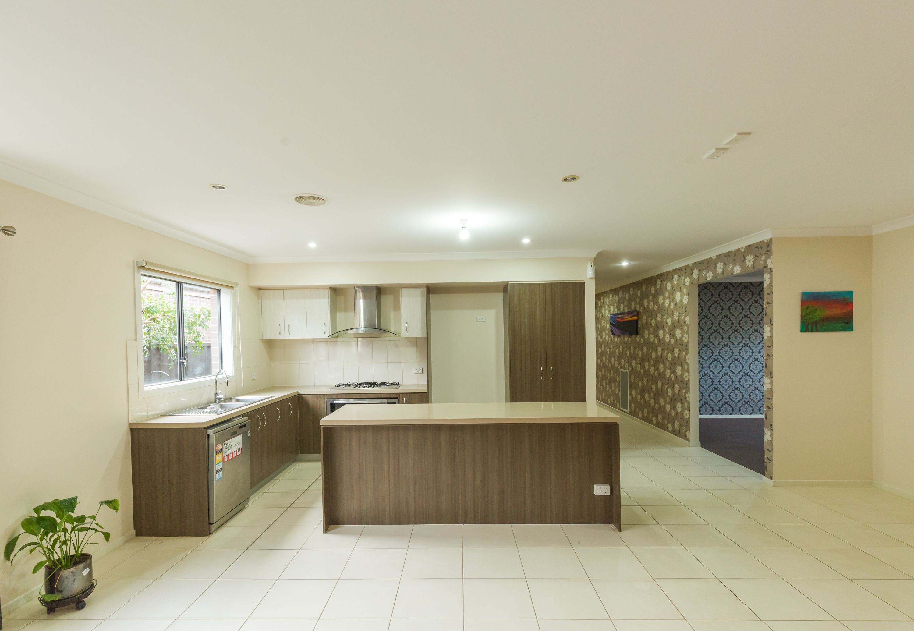 • Fantastic kitchen with island bench-top, plenty of cupboard space, 900 mm stainless steel appliances and dishwasher
