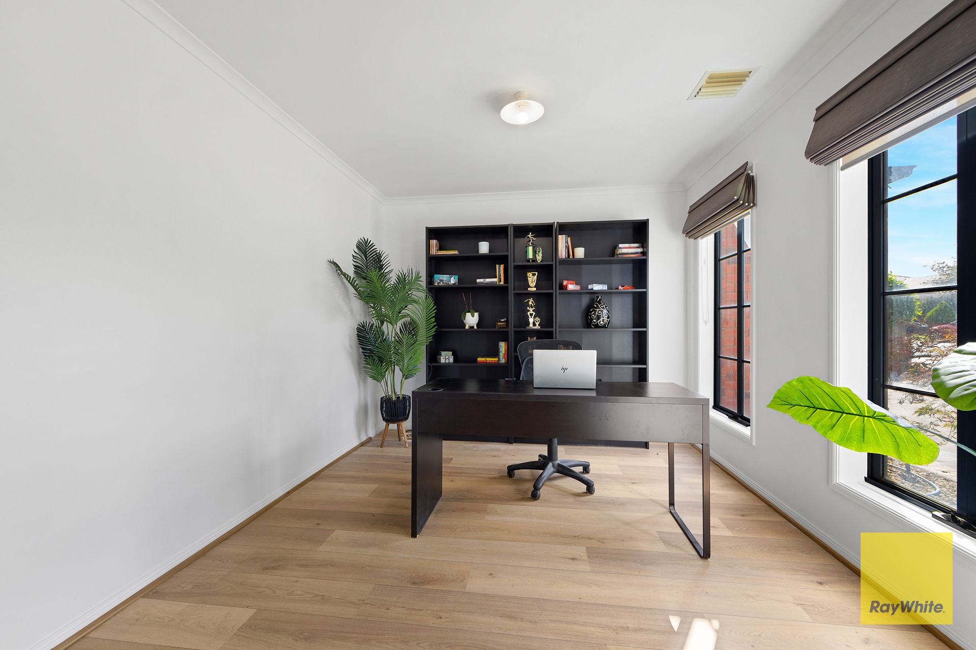 Upon entering, you are greeted by a spacious formal lounge. The well-designed floor plan includes a study and a powder room on the ground floor, ideal for guests or a private retreat. The upper level features four bedrooms, including a spectacular master suite complete with a walk-in robe and a full en-suite for ultimate luxury and privacy. The remaining bedrooms are equipped with built-in robes, providing ample storage throughout.