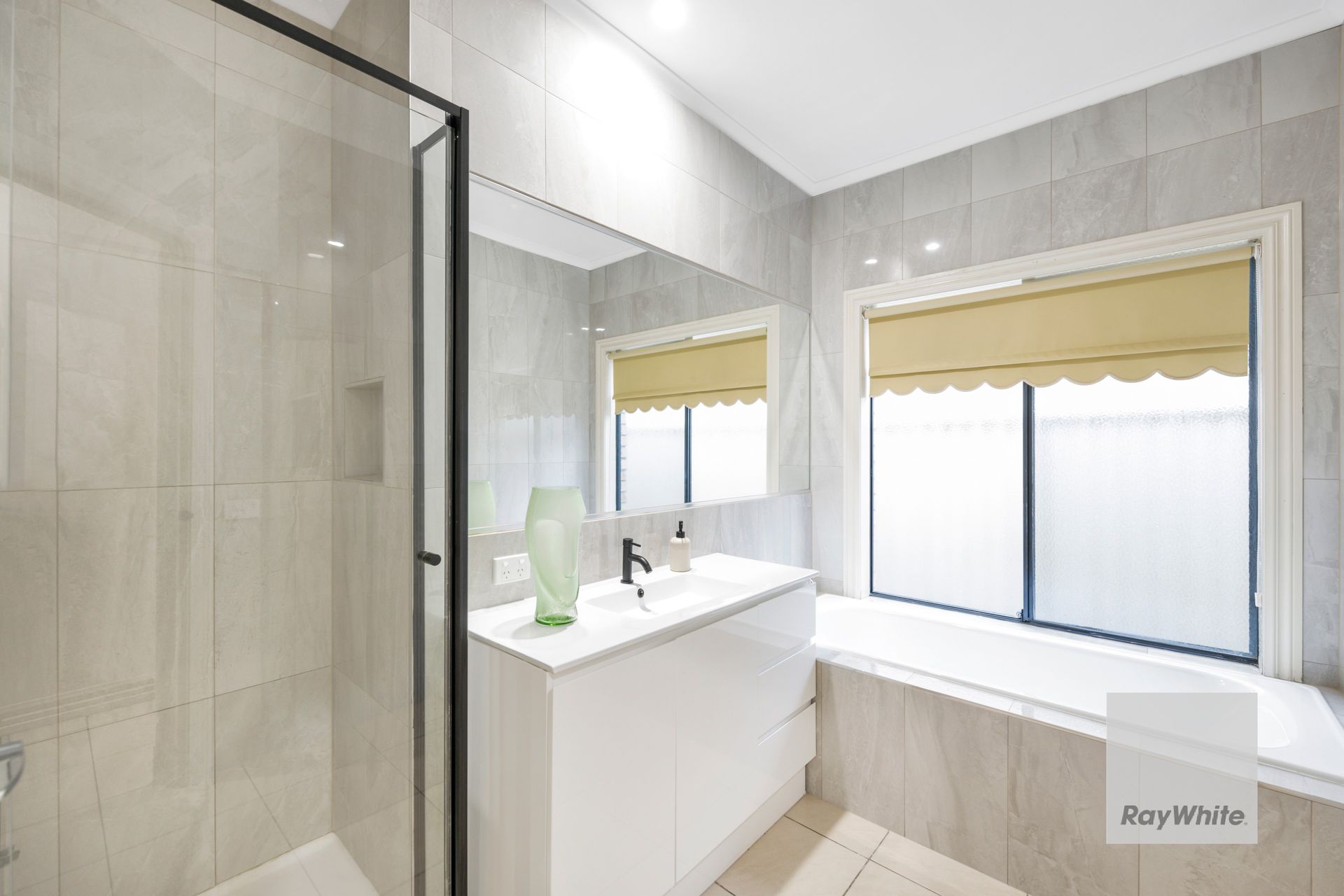 Designed with growing families in mind, the home offers four spacious bedrooms plus a dedicated study/home office. The master suite is privately positioned at the front of the home and features a walk-in robe and a well-appointed ensuite complete with a double vanity and spa bath. The remaining bedrooms feature built-in robes and share a bright central bathroom, a separate toilet, and a functional laundry.