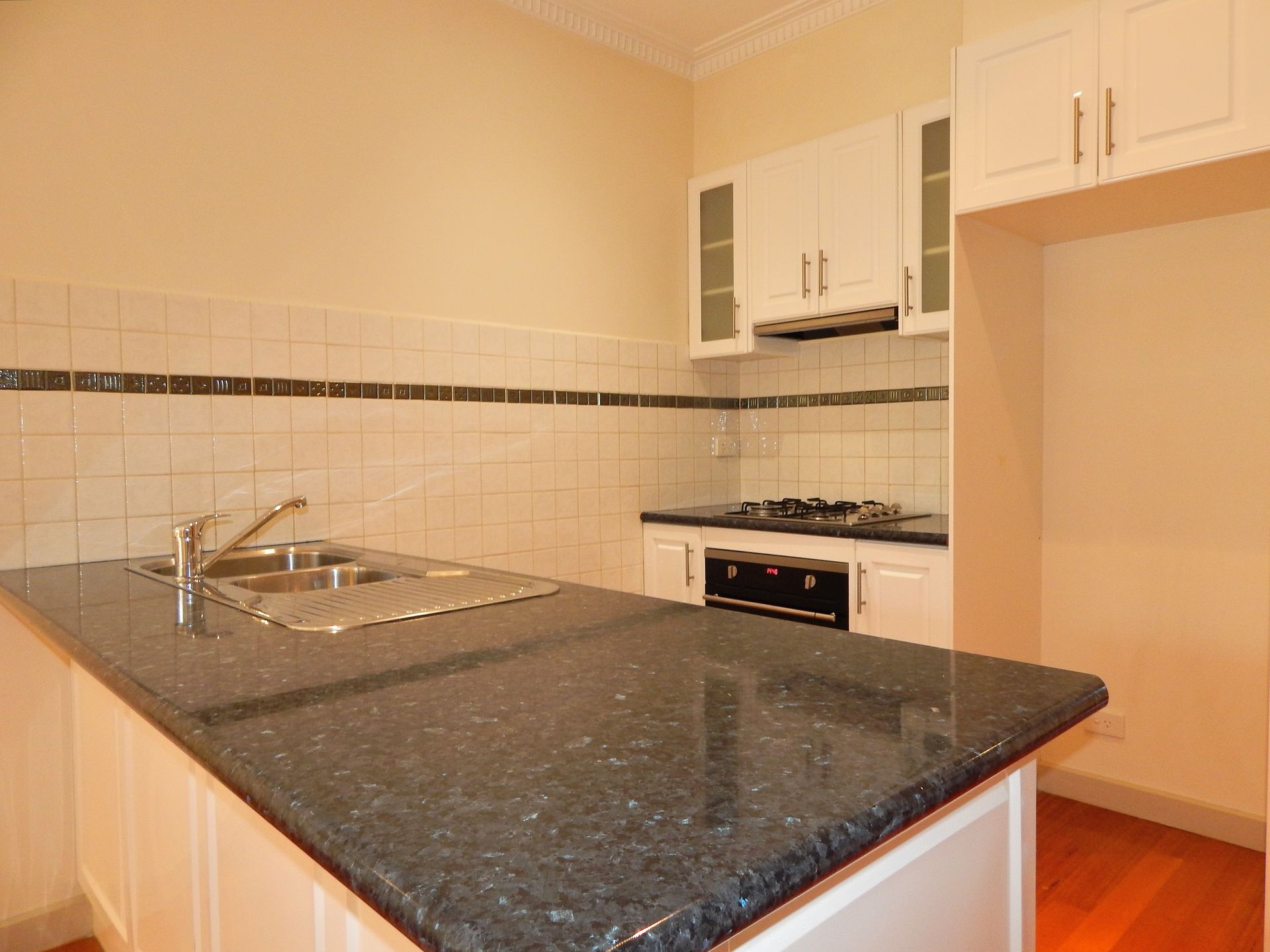 - Modern kitchen with stainless steel appliances and gas cooking