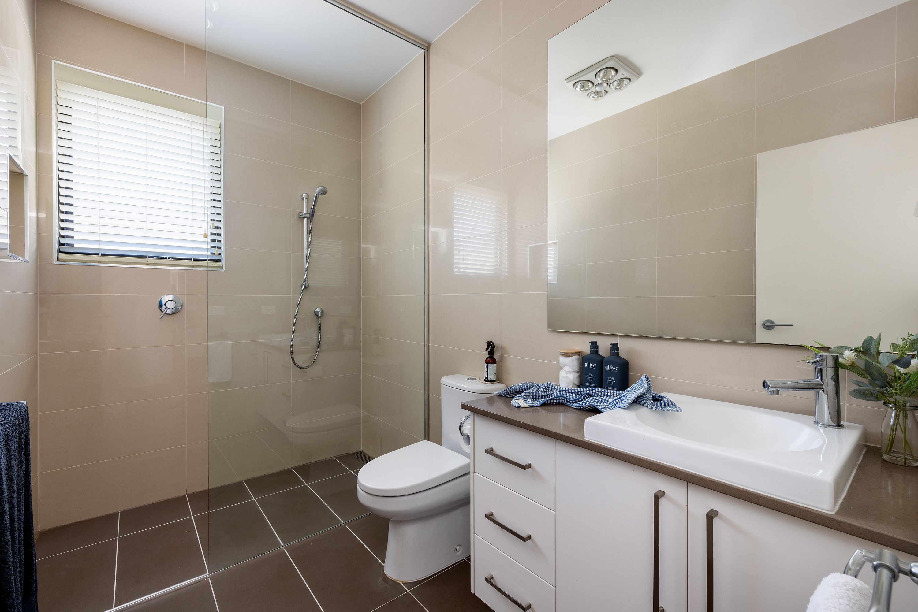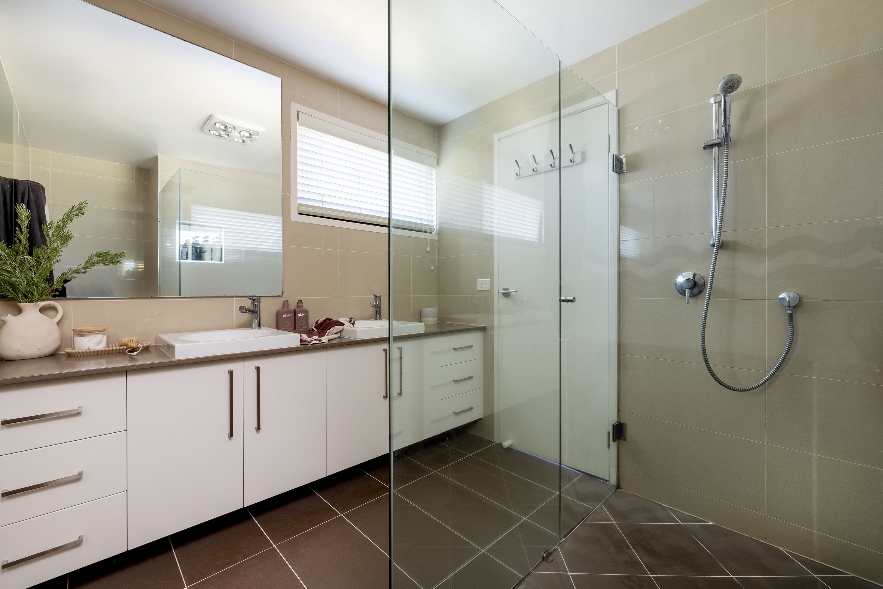 Consisting of a spacious master bedroom with walk in robe and ensuite along with two guest bedrooms each serviced with separate bathrooms and toilets.
