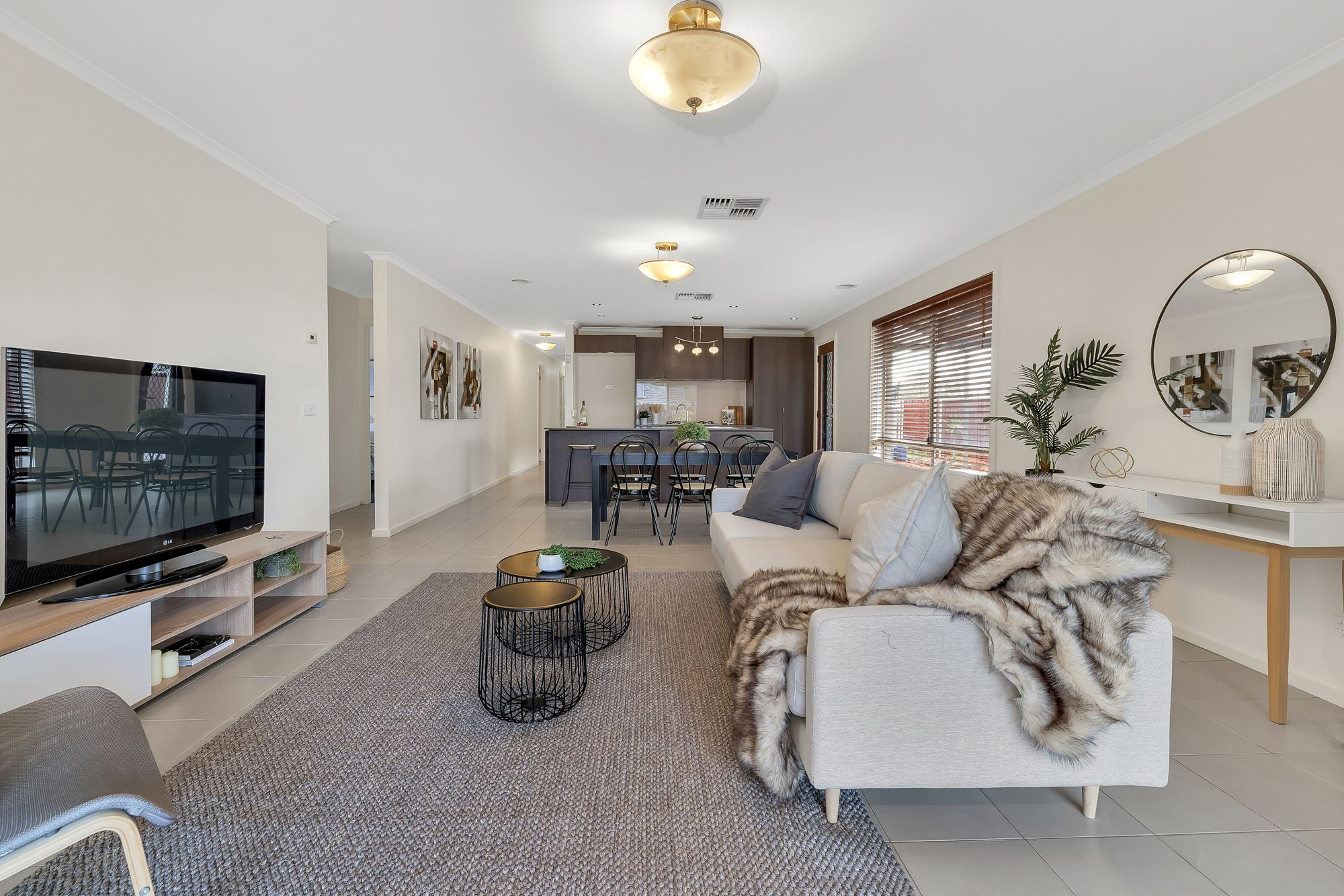 Inside the home you are immediately greeted by open space and a wide living area flooding the front of the home with natural light. Features include gas ducted heating, split system cooling, new curtains, dishwasher, stainless steel appliances, downlights, outdoor entertainment area, solar power, multiple living zones and double garage. In the hub of the home a modern contemporary kitchen designed for entertaining is on offer and features 20mm stone bench tops, stainless appliances, glass splashback and an abundance of bench / cupboard space for the fussiest of chefs all adjoining the light filled meals and family living room. Take a step outside and become the envy of your friends and family with an undercover entertaining area and spacious yard for the kids while overlooking them on a nice summer day.