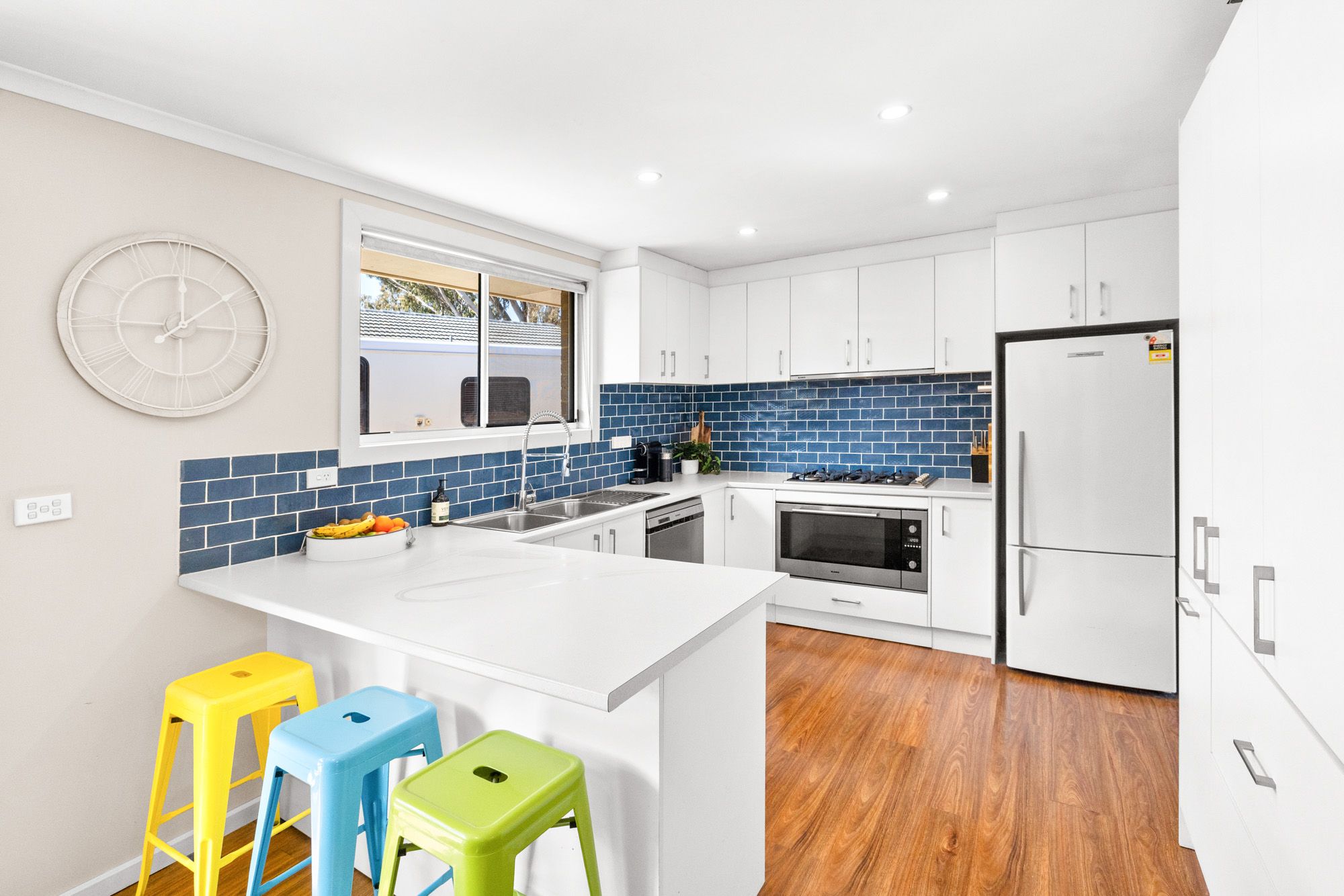 Step inside to a light-filled layout featuring three generous bedrooms, a renovated central bathroom and an open-plan living and dining area that flows effortlessly. The updated kitchen boasts stainless steel appliances, ample bench space and clean contemporary finishes, making it ideal for both daily use and entertaining. Timber-style floorboards carry throughout the home, adding warmth and low-maintenance appeal.