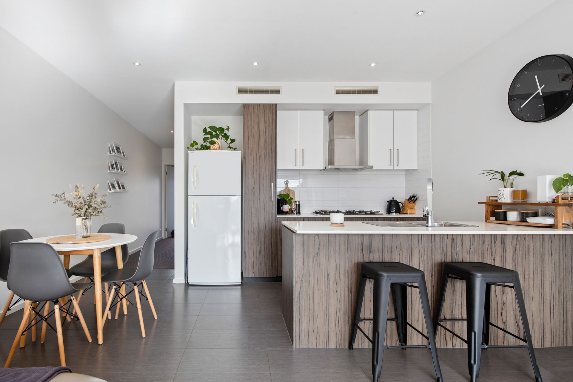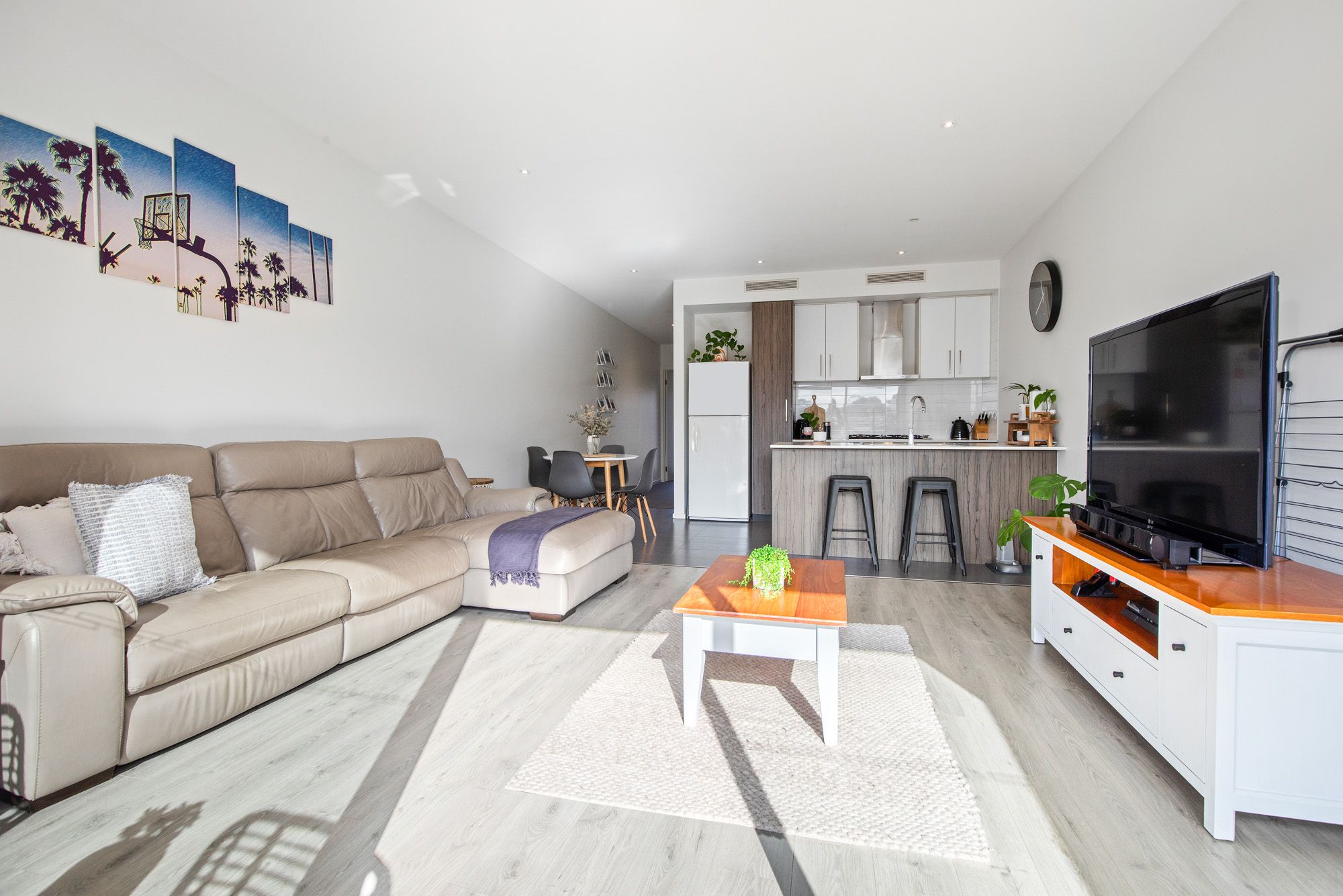 - Open-plan living and dining area