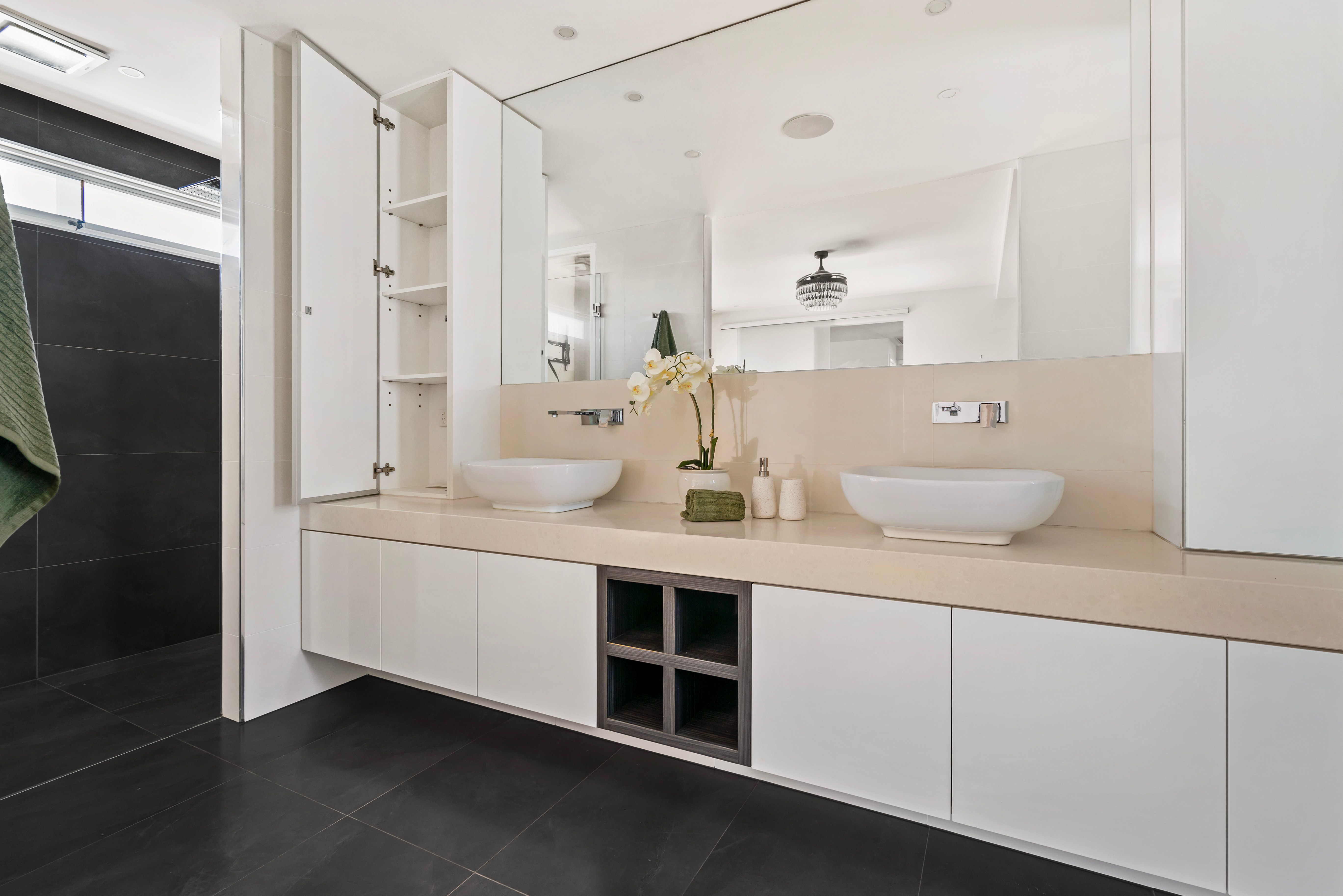 A central family bathroom and a fourth bathroom in the amazing zone that offers a gym space, theatre area and abundant storage above the four car garage further enhance this home's benchmark brilliance.