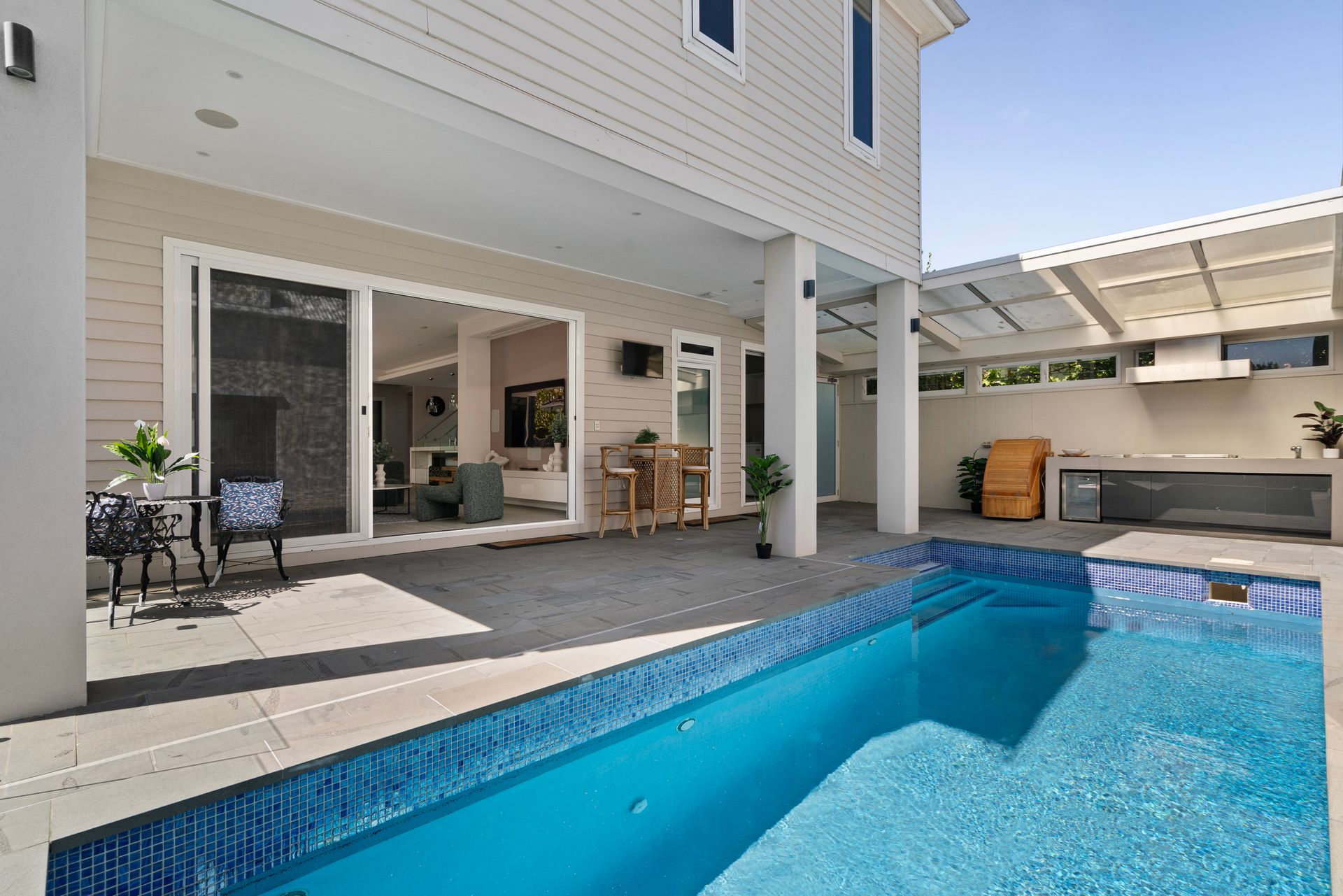 Alfresco enjoyment, complemented by a built-in barbeque and sublime swimming pool add to the profile of a property, with slab heating, home automation and comprehensive security. Superb!