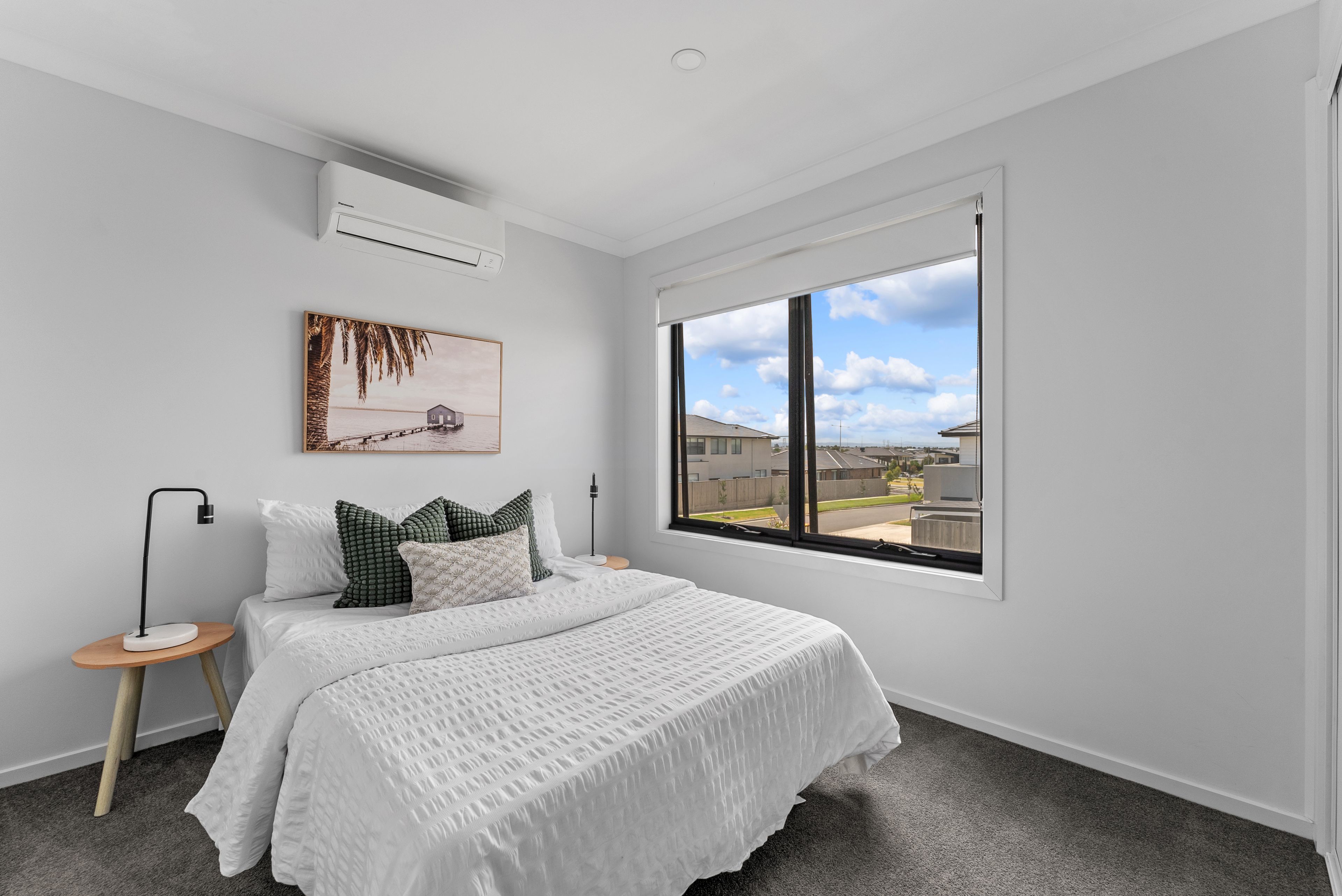 This elegant residence boasts four generously sized bedrooms, two of which feature walk-in robes and chic ensuite bathrooms, providing a perfect blend of privacy and convenience. Each bedroom is also fitted with split system heating and cooling, ensuring comfort no matter the season.