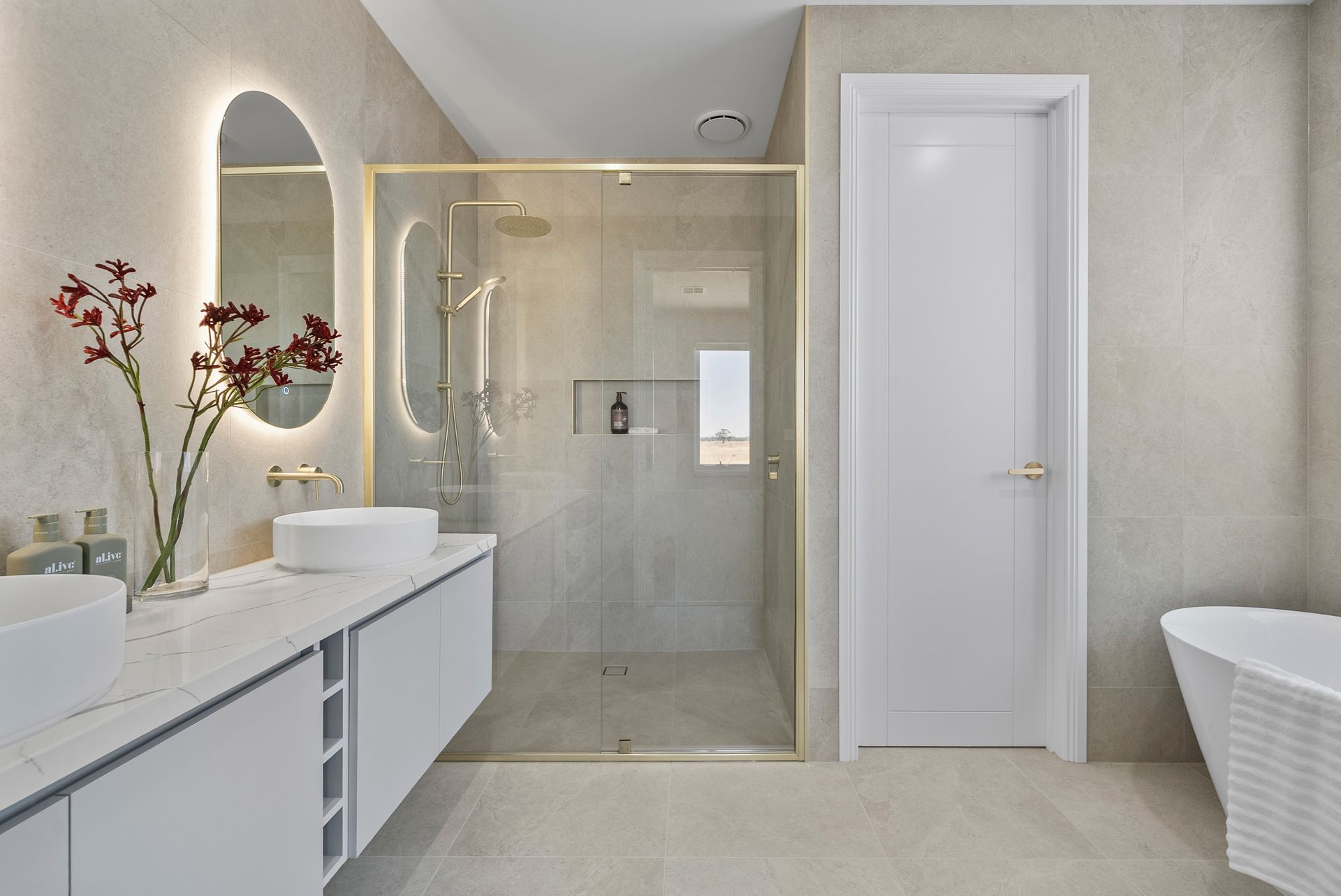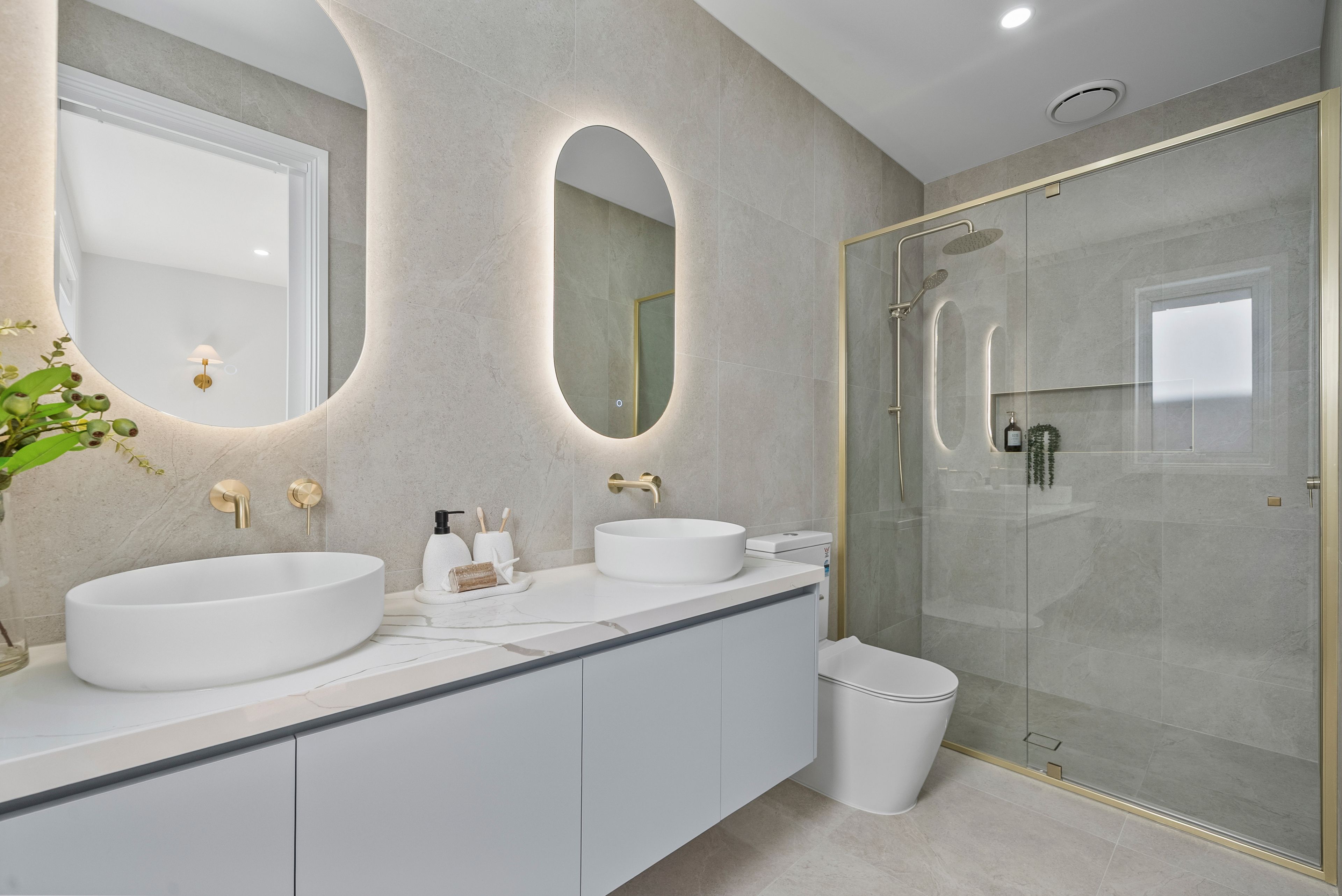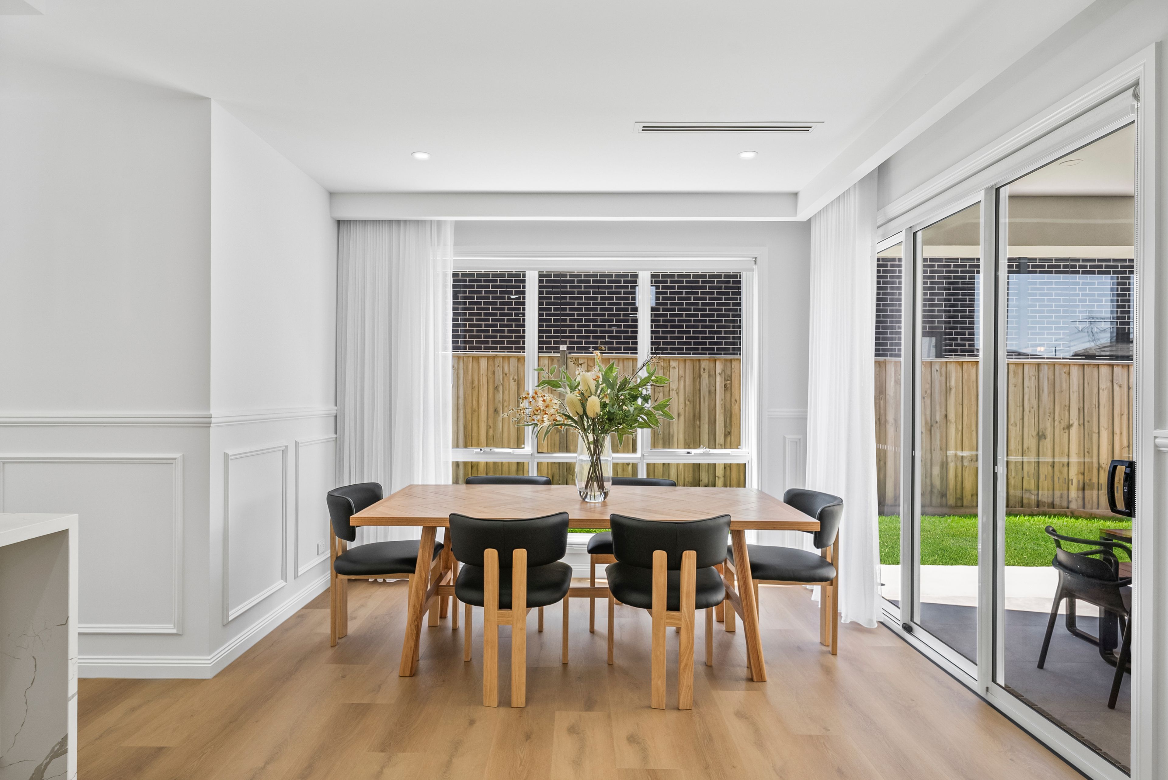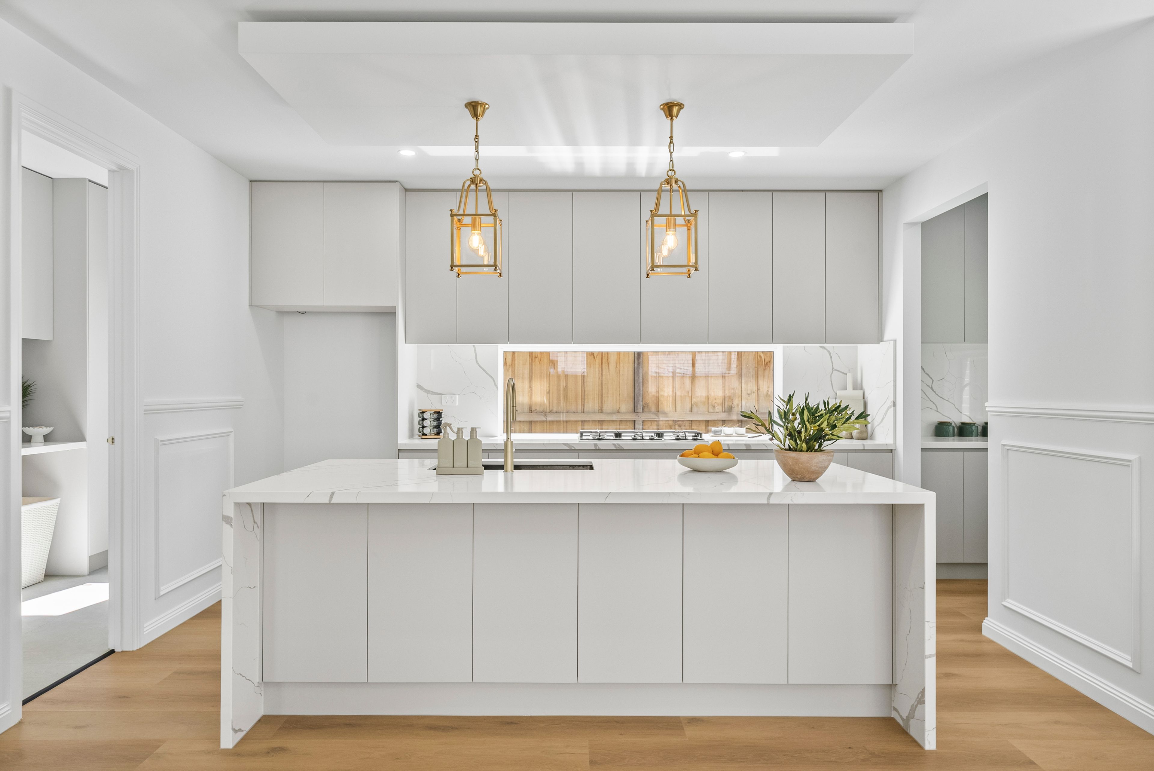 The kitchen is a showpiece of style and functionality, featuring a sleek 2Pac finish, premium appliances, generous bench space, and a butler's pantry, with clear sightlines across the main living zones, ideal for hosting or family life.