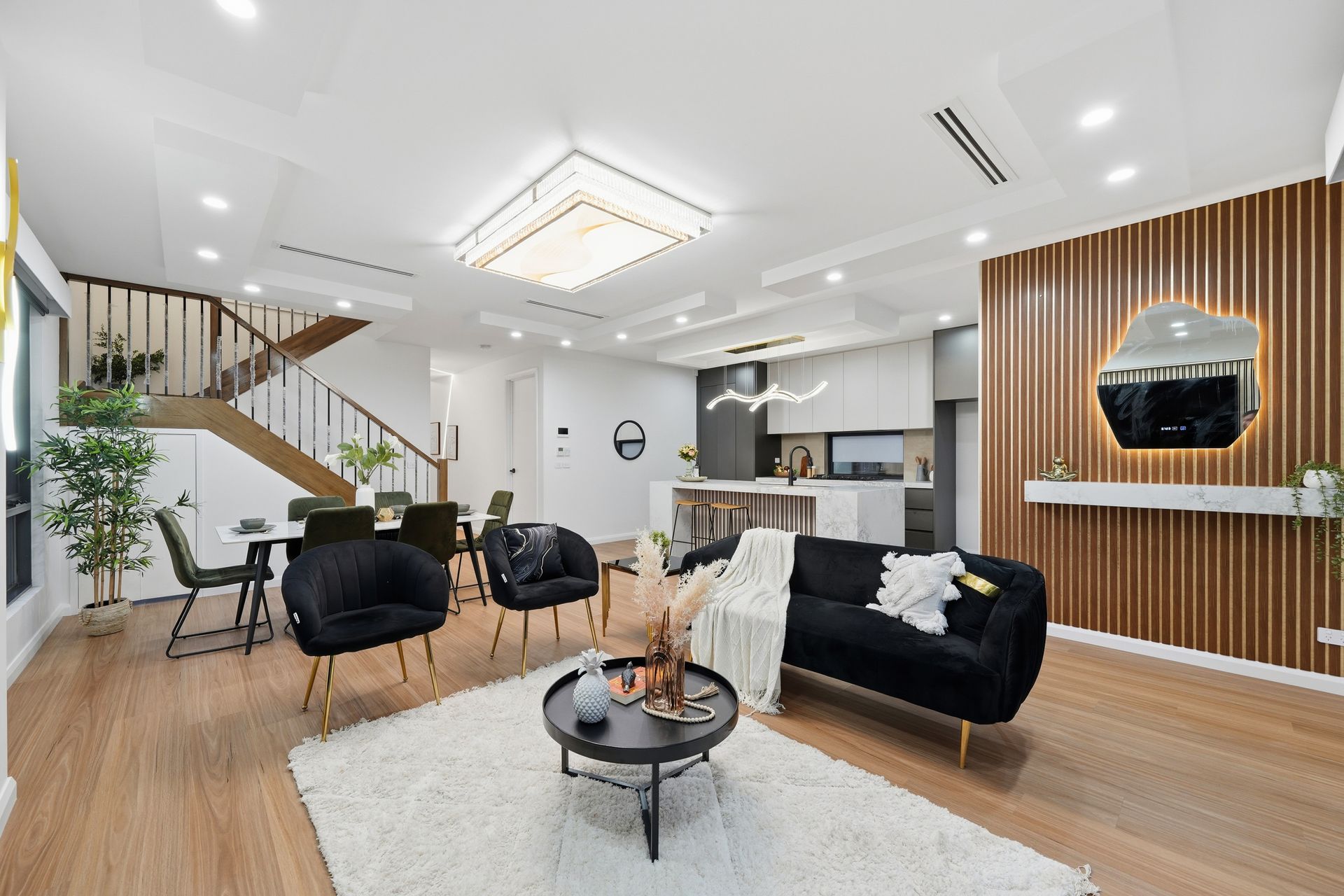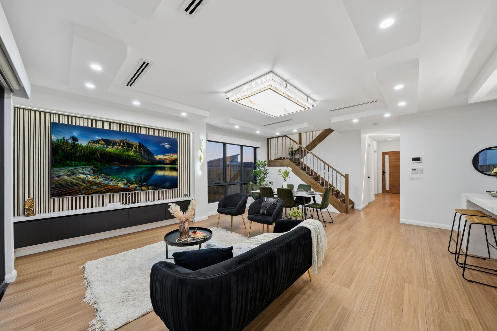 Multiple living zones, including separate living areas can use as home theatre/recreational room or family entertainment with City View