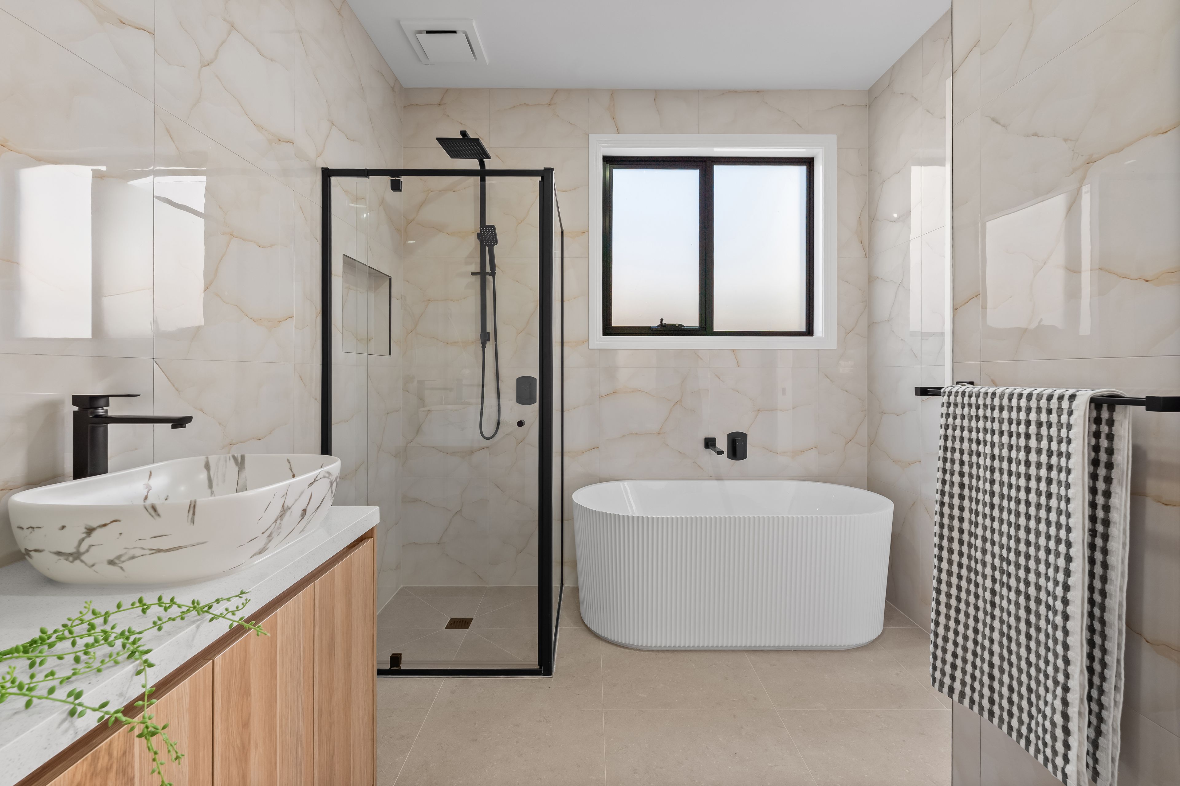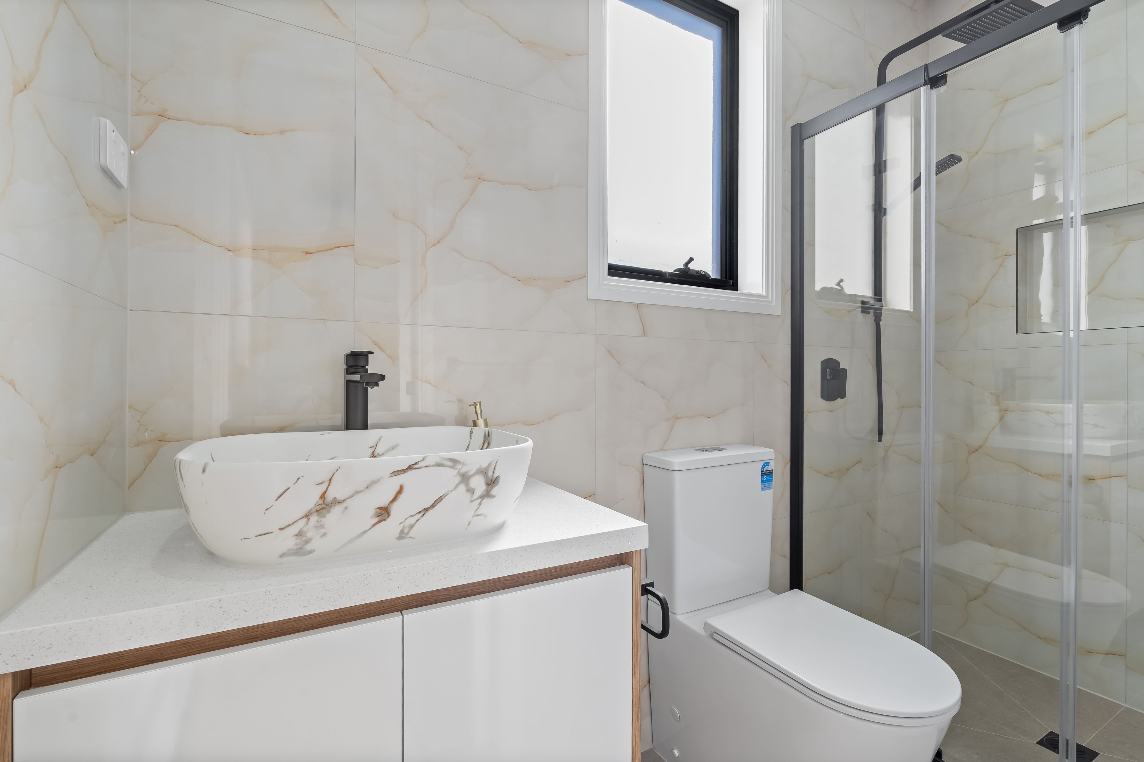 From the moment you step inside, the home reveals a generous and intelligently zoned floorplan tailored for modern family life. A luxurious main bedroom is privately positioned at the front, complete with a walk-in robe and sleek ensuite, creating a peaceful retreat. A second master suite, featuring its own ensuite and built-in robe, offers outstanding flexibility for multi-generational living or guest accommodation. Two additional well-proportioned bedrooms with built-in robes are serviced by a beautifully appointed central bathroom, separate WC and full laundry, ensuring everyday practicality is matched with refined comfort.