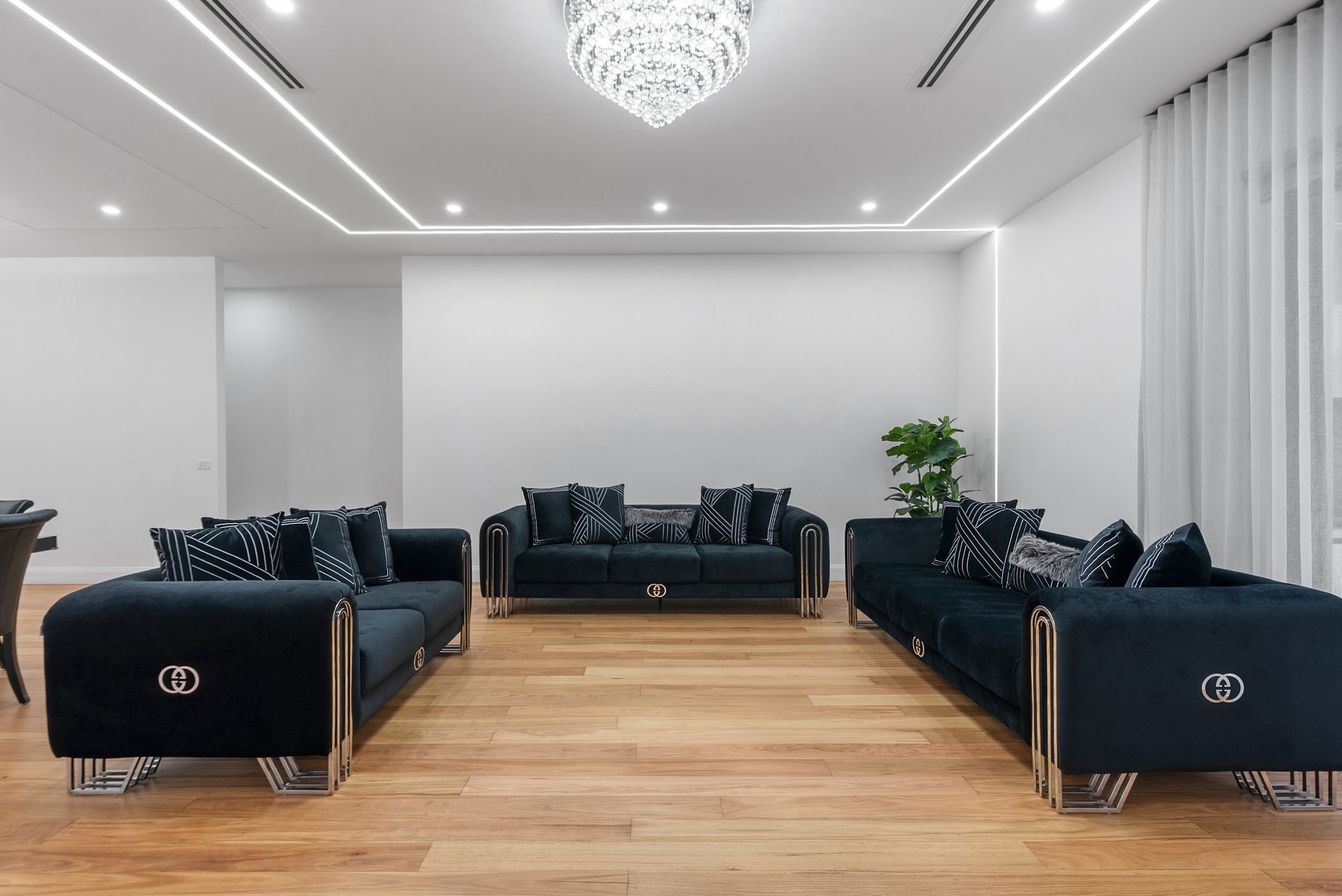 At the centre of the residence is a generous living and dining domain designed to bring the household together. The kitchen has been thoughtfully appointed with ample bench space, quality appliances and the added convenience of a well-equipped butler's pantry, allowing the main kitchen to remain sleek and organised whether preparing family meals or entertaining guests. The surrounding living areas create a comfortable environment for both daily life and hosting, enhanced by the home's modern finishes and spacious proportions.