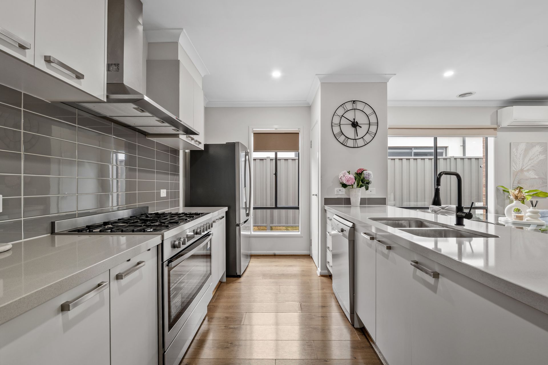At the heart of the home, the light-filled open-plan living and meals area connects seamlessly to a well-appointed kitchen featuring 900mm stainless steel appliances, generous bench space and a pantry. A front lounge adds further versatility, while split system air conditioning, LED downlights, a 6.6kW solar system and solar hot water enhance everyday comfort and efficiency.