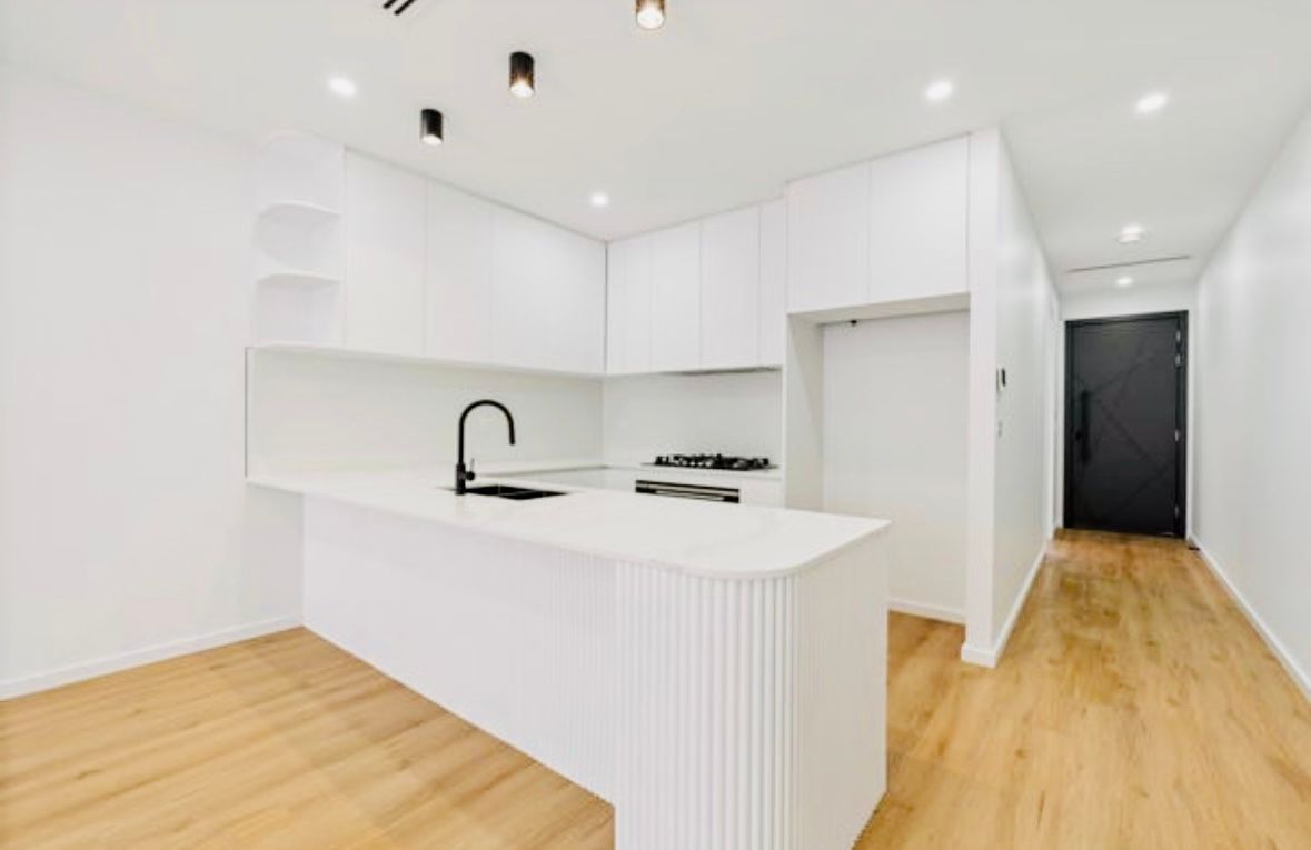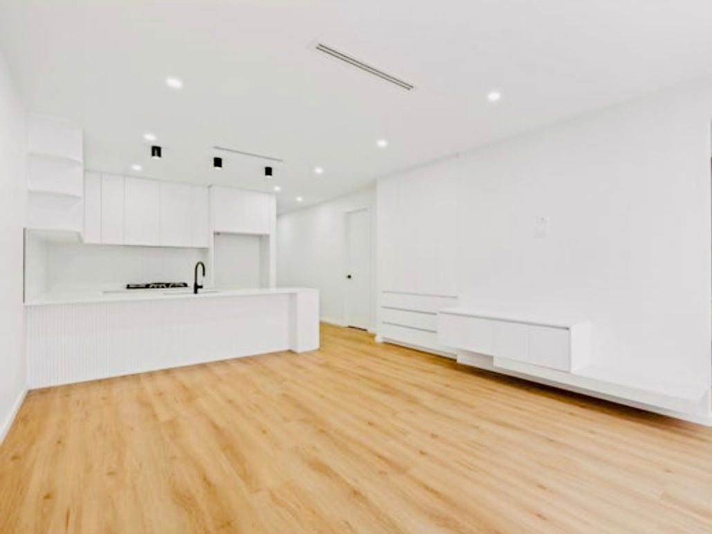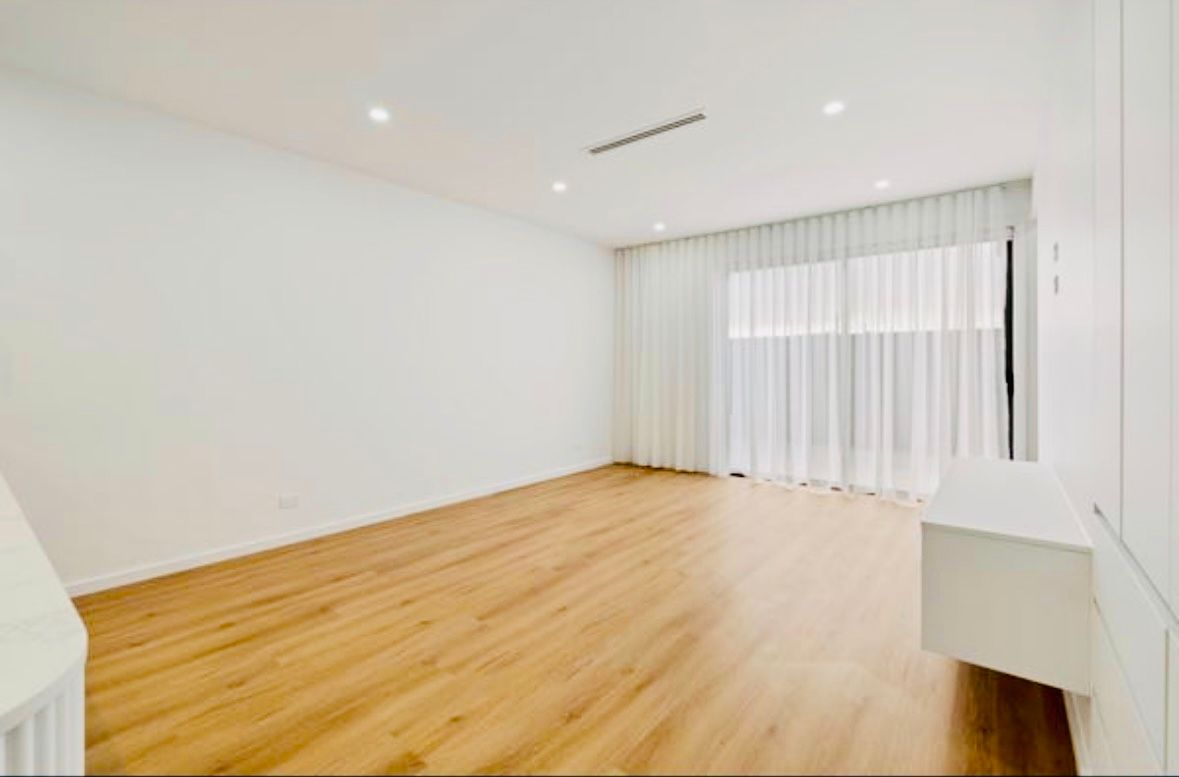 The open-plan living area is the heart of the home, bathed in natural light and featuring custom joinery and premium flooring. The gourmet kitchen is a chef's dream, boasting top-tier appliances, bespoke cabinetry, stone countertops, and an integrated breakfast bar, making it perfect for both everyday meals and entertaining.